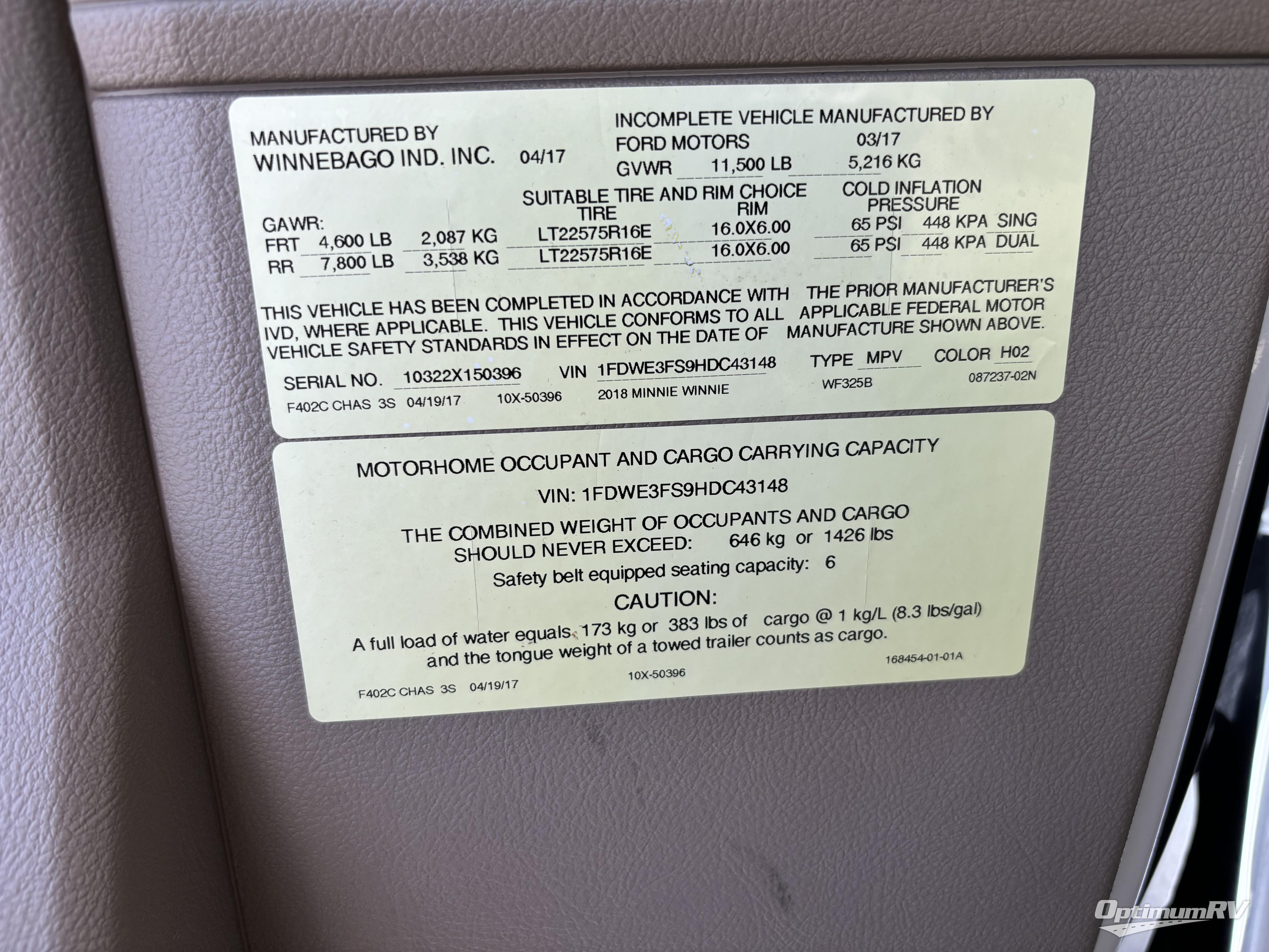Whether your adventures take you near or far you will want a Winnebago Minnie Winnie class C motor home. With each model you can enjoy the time that it takes to get to your destination as well as the fun that awaits you. Each unit is available with a Ford E350 or a Ford E450 chassis. Inside you will find easy to clean vinyl flooring throughout, tinted windows, a USB charger near the dinette and in the bedroom, as well as a 32" HDTV with DVD player. All of your gear can easily be stowed in the large lighted trunk storage compartment. There are several optional package upgrades available to help you customize the perfect family-friendly model for you. What are you waiting for? Now is the time to choose your Minnie Winnie and let the fun begin!
