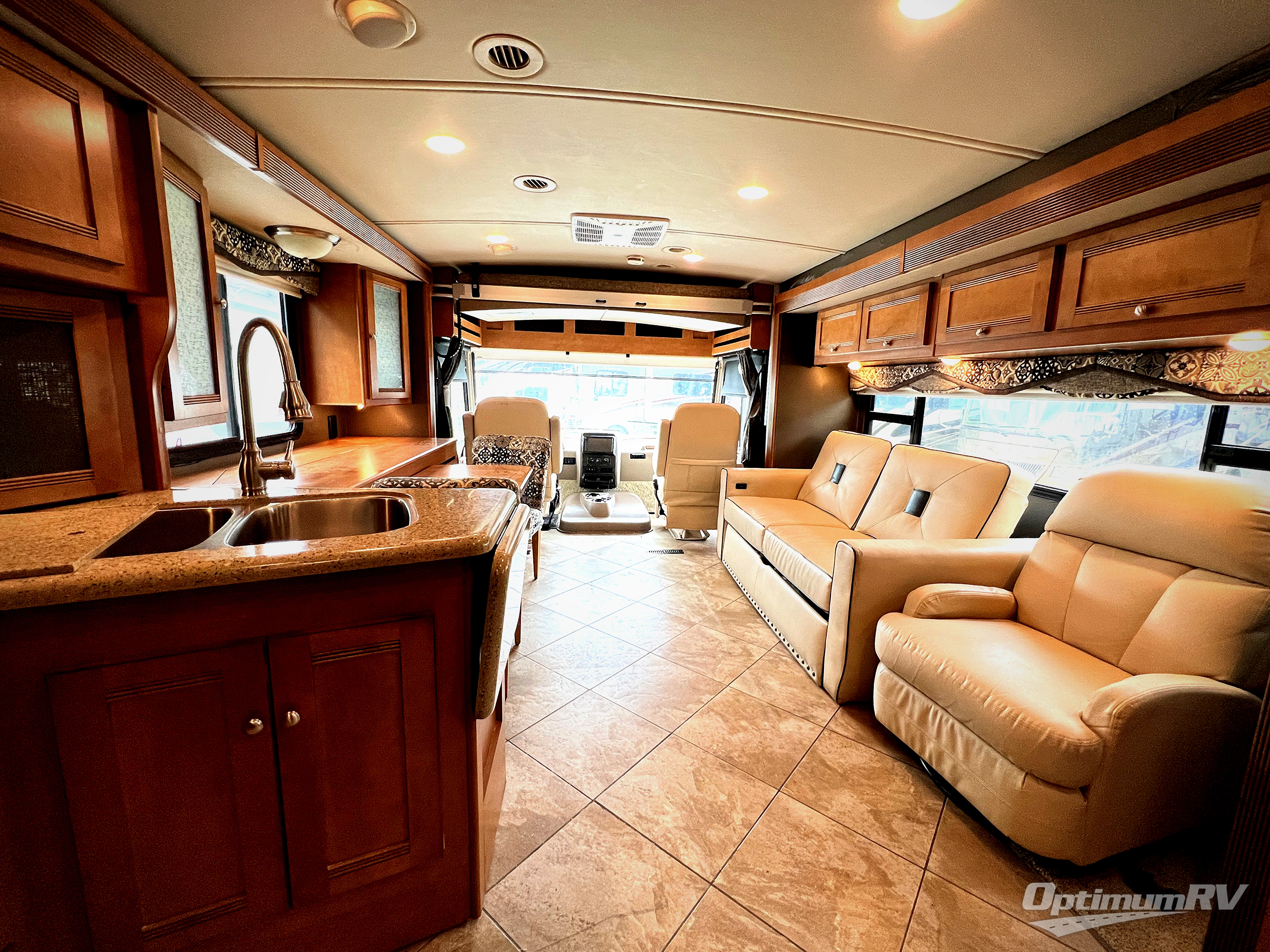 With a Sightseer Class A gas motorhome, you get the ultimate traveling experience. The fully-loaded cab area will make it fun for you to get to each vacation destination with its multi-adjustable cab seats that slide, recline, and swivel and its multimedia color touch screen. The OnePlace systems center that has been included in the Sightseer is a very handy feature that allows you to monitor and control key systems from one convenient location, instead of having to walk back and forth between the thermostat and the generator, and the 50 AMP power cord will ensure that you will always be able to enjoy the many modern conveniences that the Sightseer has to offer.