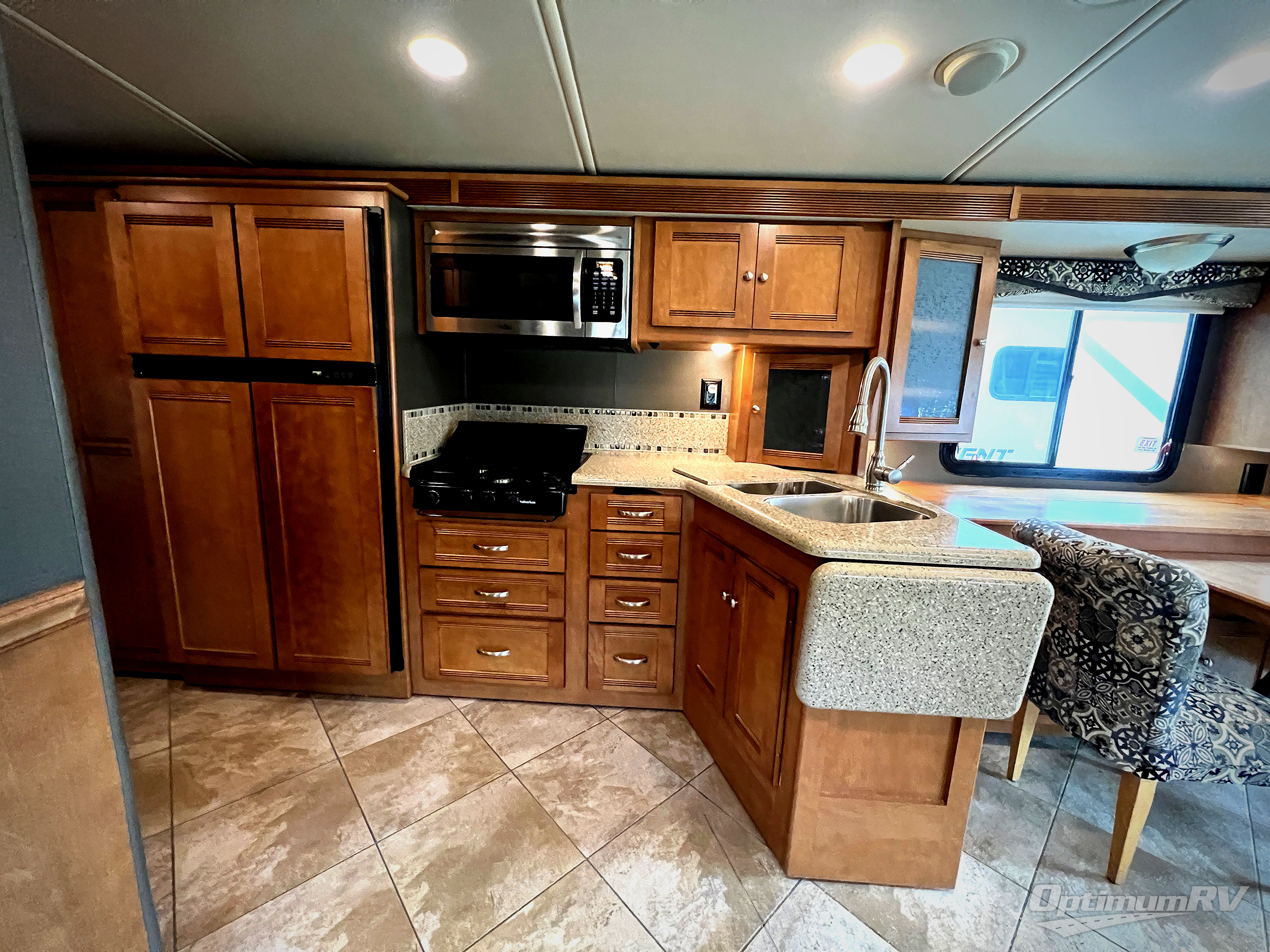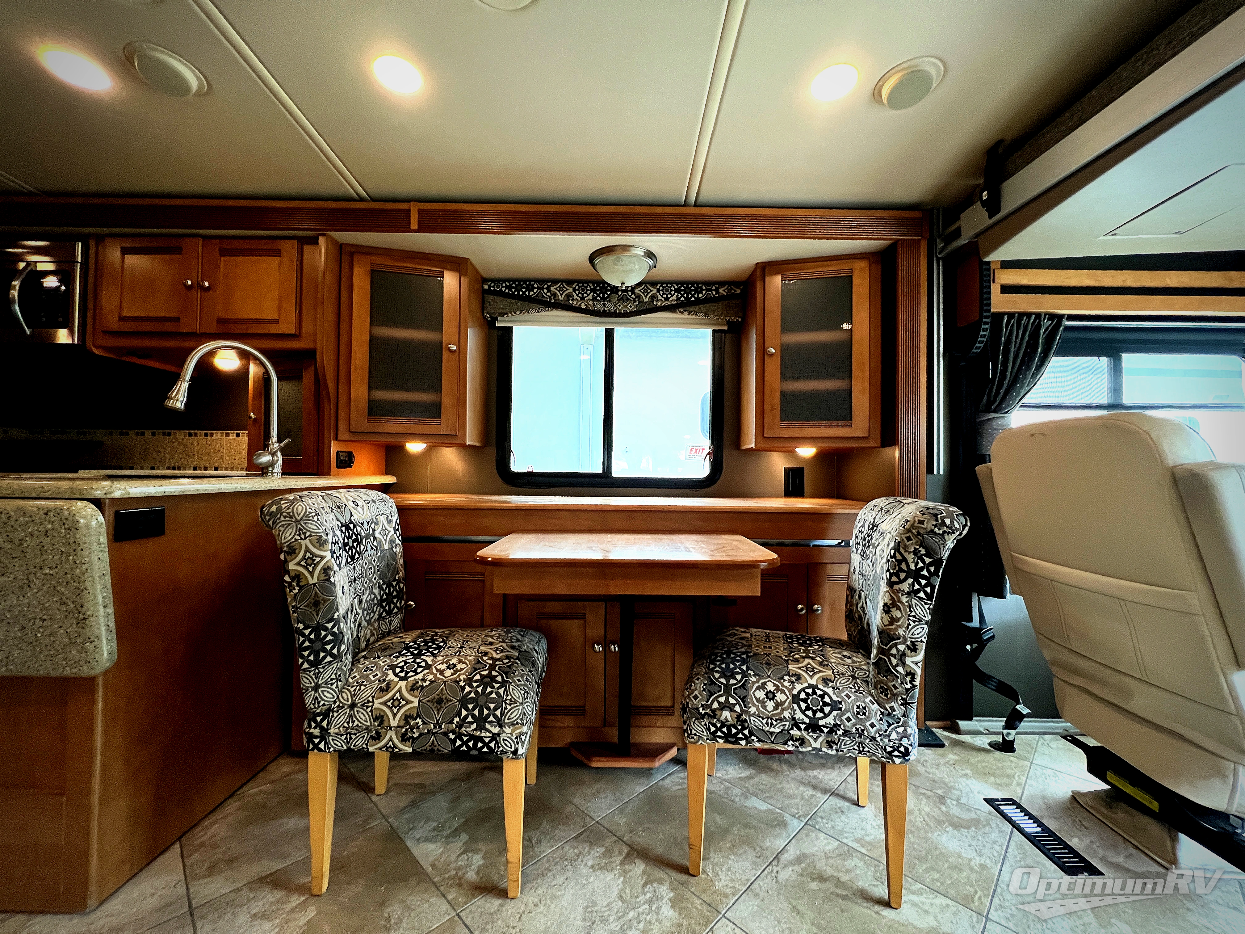 When you take this Sightseer Class A gas motorhome with you on your next weekend getaway, you will forget about the way that life used to be when traveling in an RV. From its elegant private bedroom with a queen-size bed, large wardrobe, two nightstands, and a 28" HDTV, to its comfortable central living area with a Glide & Dine table and chairs, comfort sofa sleeper, and recliner, you will wish you had chosen to travel in this coach sooner.
