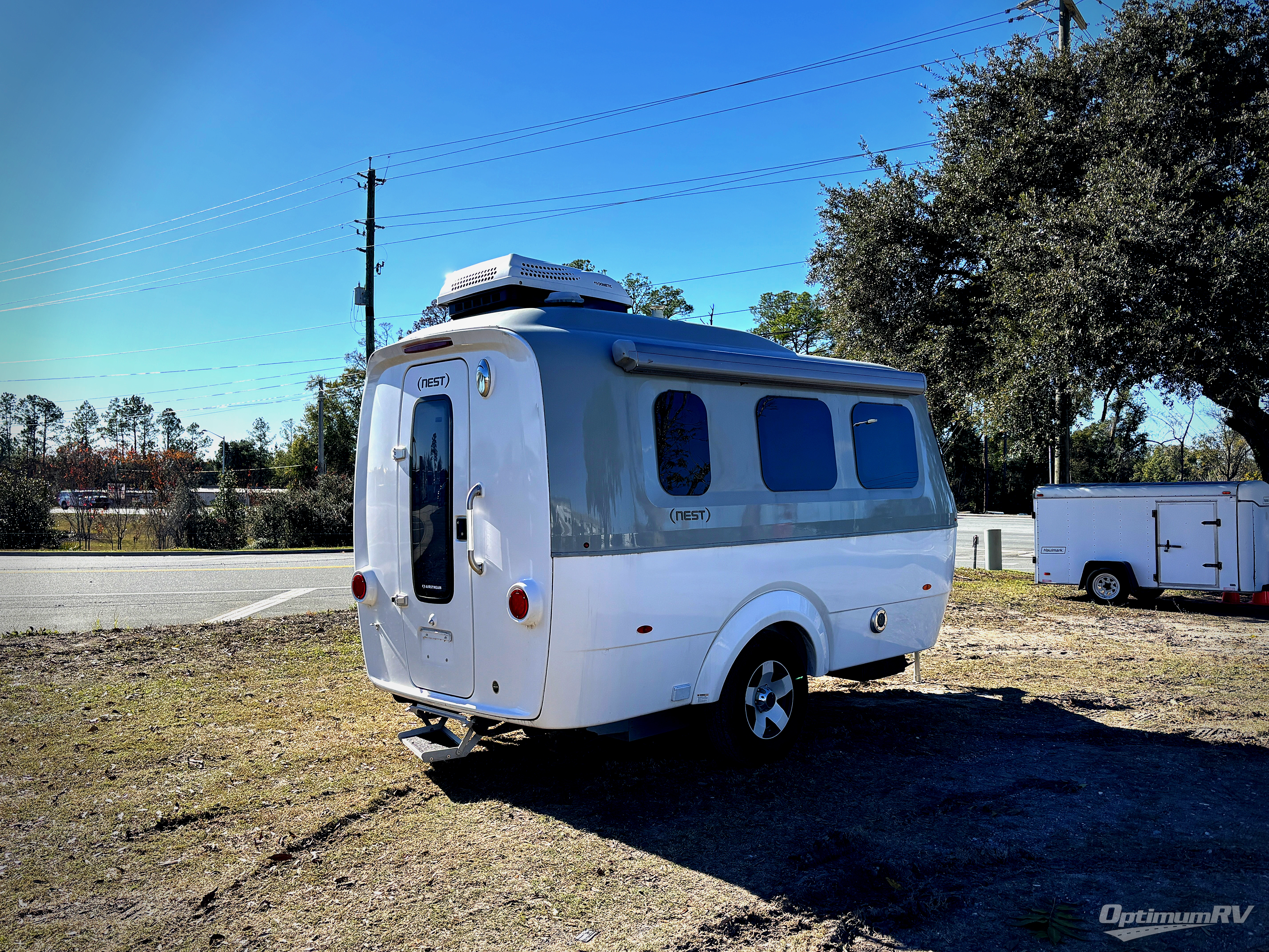 With any Airstream Nest travel trailer you are getting an easy to manage modern designed unit with all the comforts of home. You will find maximum storage throughout each model including overhead cabinetry and under bed storage for larger items, as well as two lockable storage compartments on the exterior. Inside each Nest travel trailer, you will enjoy LED lighting. There is also an abundance of natural light that streams inside through eight windows, including one skylight. Seamless vinyl flooring, along with fingerprint and stain resistant soft white laminate, means easy care maintenance during and after each trip. And, easily accessible pop-up USB ports are located in the galley/dinette area, as well as near the bed so you can keep all of your electronics charged and ready to use. For your outside enjoyment, there is a powered patio awning with LED lights which makes it easy to enjoy time outside even after dark. There is also an exterior shower with hot and cold faucets so you can rinse off any evidence of outdoor fun before heading inside. Let a new Airstream Nest be your new cozy retreat for two!