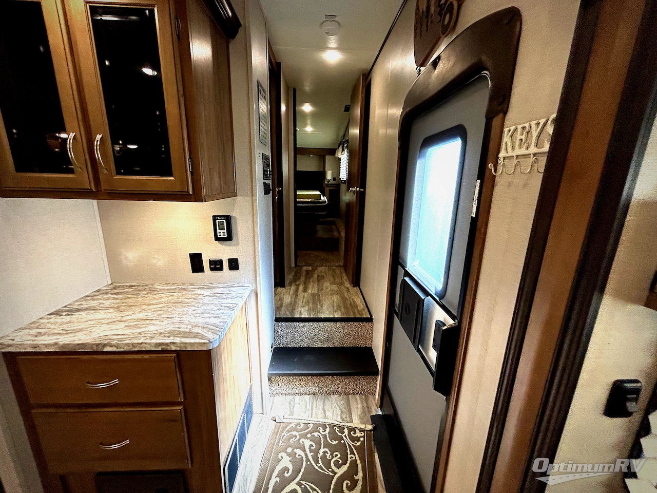 This Coachmen Chaparral Lite fifth wheel features triple slides and a rear living layout where you can easily entertain a guest or two. Relax on the theater seats while watching a movie at the entertainment center. The island in the kitchen features extra counter space, as well as the double sink. Along the interior wall in the kitchen you will find a residential pantry where you can stock up on your dry/canned goods. The bathroom has two entry doors, one from the hallway and one from the private master suite. For a truly enjoyable and relaxing camping trip, you will want this model!