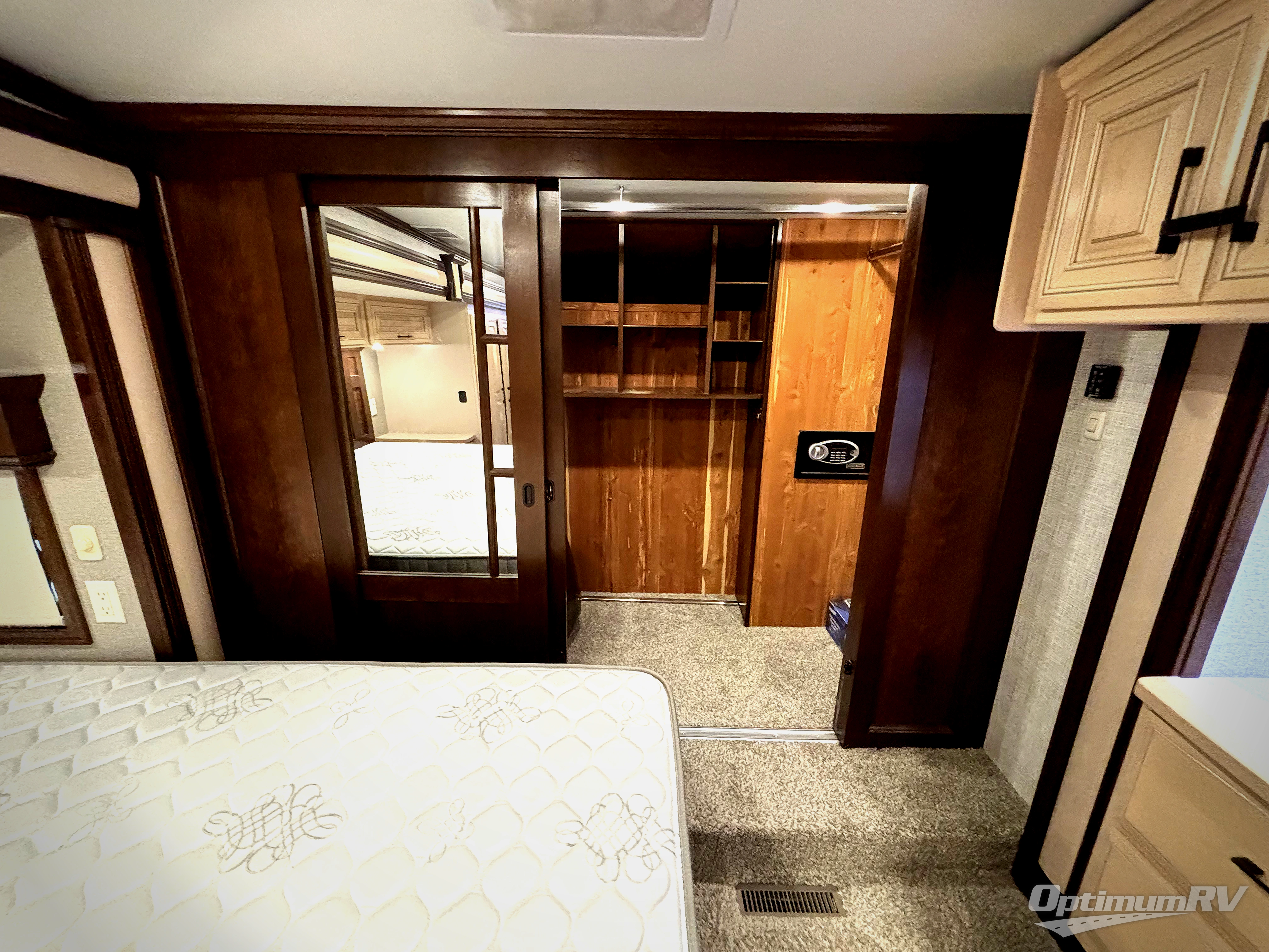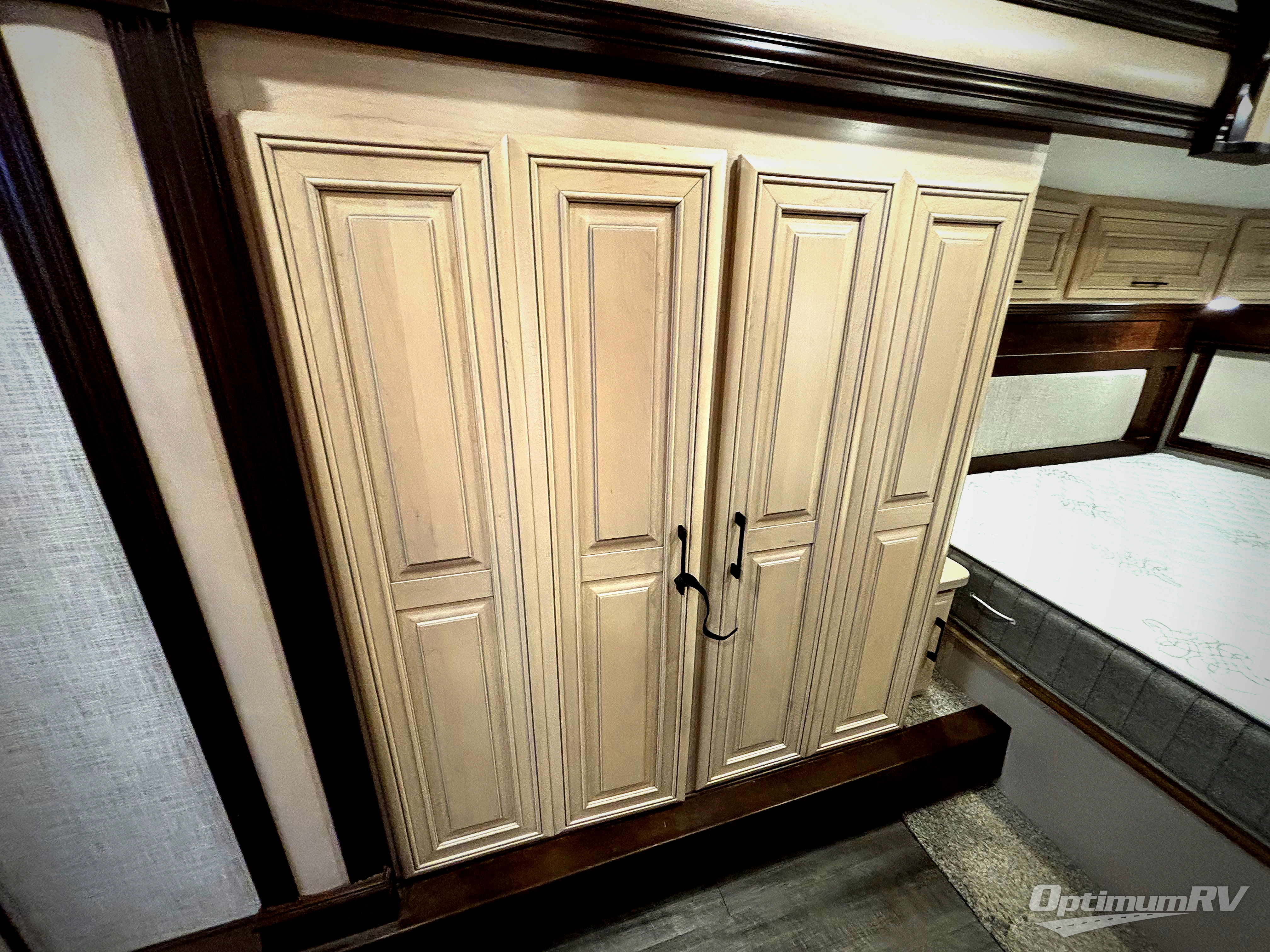 No matter where you travel or how you vacation, you won't be able to escape the luxury and elegance that you will find in one of these Mobile Suites fifth wheels. From its very foundation, the Mobile Suites has been crafted with DRV's custom-engineered 101" wide frame, which is the largest, most rigid fifth wheel frame in the industry. As for the interior, you won't be able to find a more extravagant unit than the Mobile Suites because each kitchen contains an impressive 20 cubic foot stainless steel French door refrigerator, and each private bedroom contains a king-size bed with an innerspring mattress. The beautiful crown molding that has been included throughout the interior will continue to impress you time after time, and the 8' tall slides will not only add elegance to the entire unit, but will also provide exceptional functionality as you go about your daily routines.