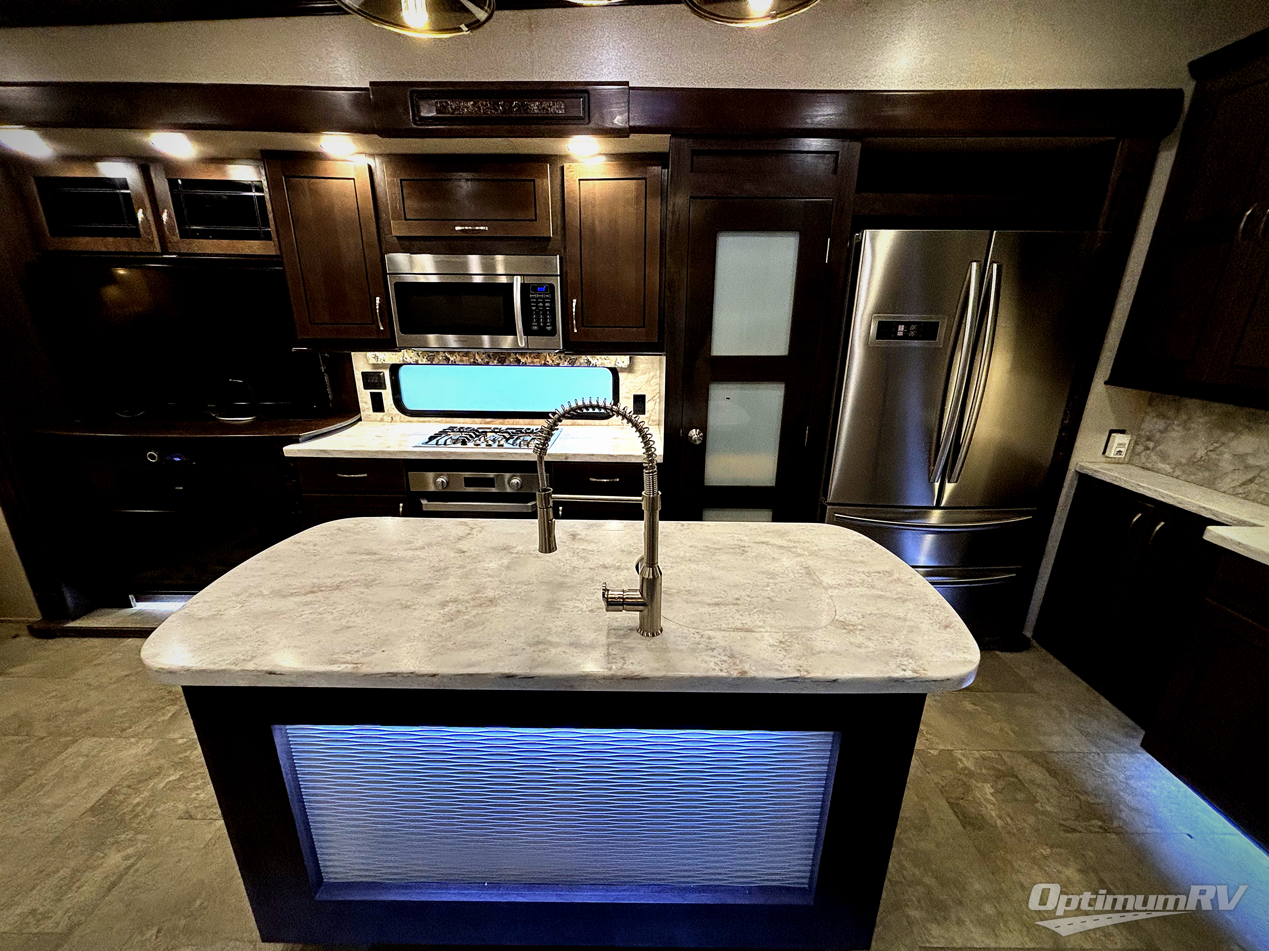 Imagine traveling with your spouse to meet friends at various campgrounds all while telecommuting from your own desk with a panoramic view. You can even turn around on occasion to watch the 50” LED TV included with the Jensen home theater system while staying warm from the fireplace with remote. Your spouse can make any meal in the rear kitchen layout offering lots of counter space and storage. The spacious front full bathroom includes Jack and Jill sinks with a full wall, back-lit mirror, a shower with a seat, and a walk-in closet with shelving. There is even a half bath for your guests which has been prepped for a washer and dryer if you choose that option. Come see what else makes this fifth wheel special!