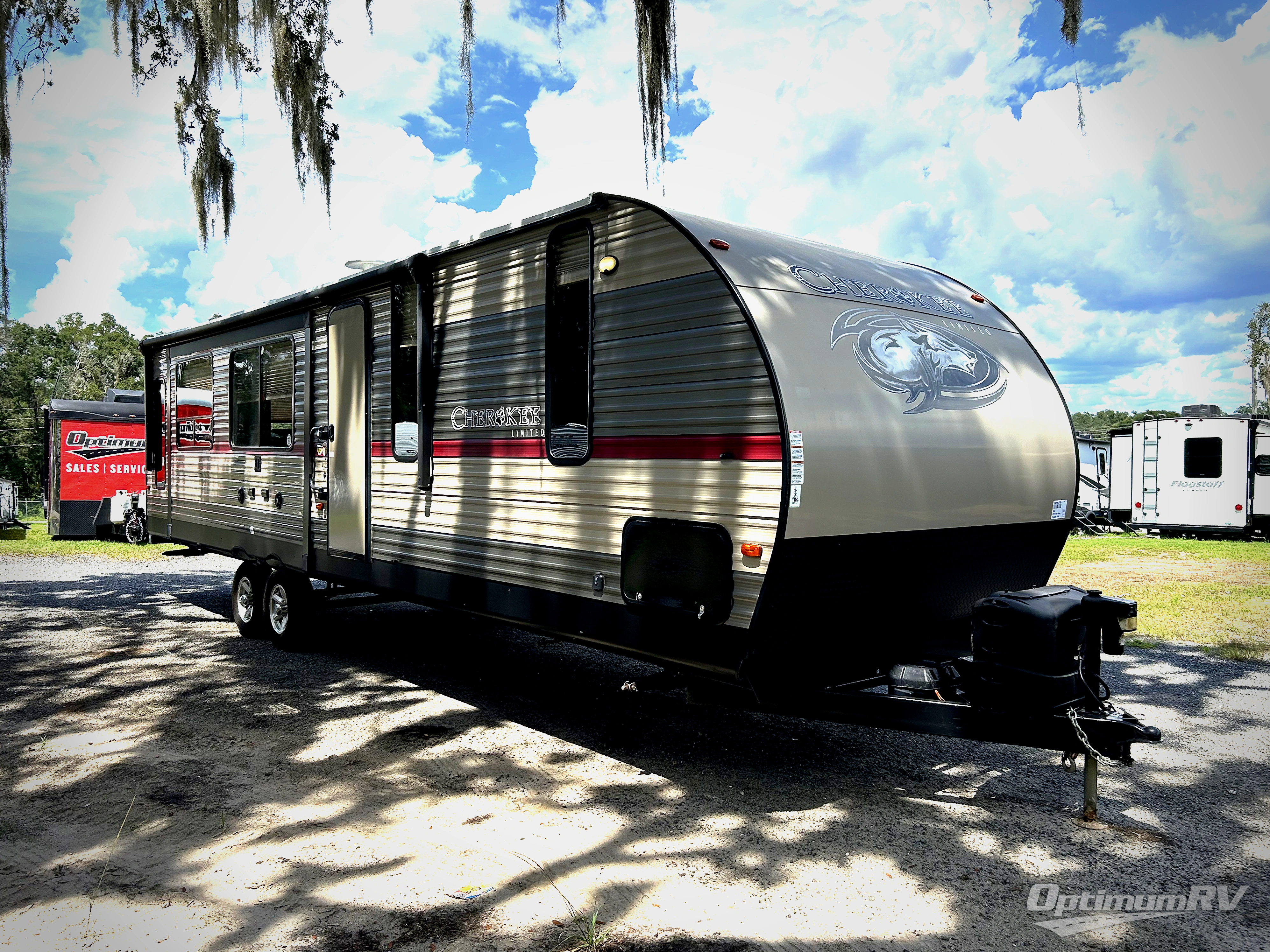 No matter which Cherokee model by Forest River you choose, you can rest assured knowing that each unit is built to provide you with great value, comfort, and style making it easy to get up and go as soon as the urge strikes. Each model features two-toned exterior metal and upgraded graphics, a one-piece rubber roof with 3/8" walkable roof decking, and a front stone guard for protection. Inside of each unit, you will enjoy comfortable seating and mocha-stained shaker-style cabinets. There are also a variety of optional packages available that will provide additional features, like the Base Camp Package, the Campfire Package, and the Limited Package. So when the open road calls, answer with your very own Cherokee travel trailer or toy hauler in tow!