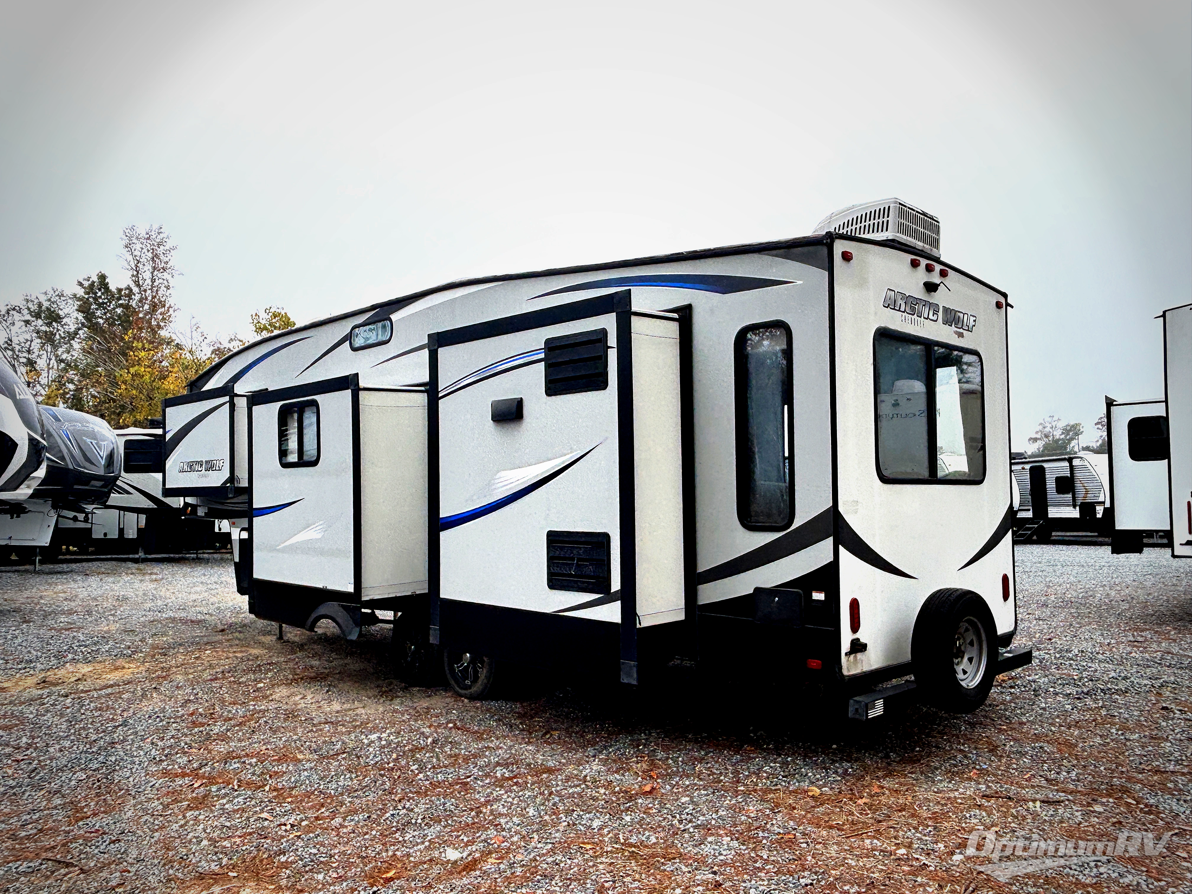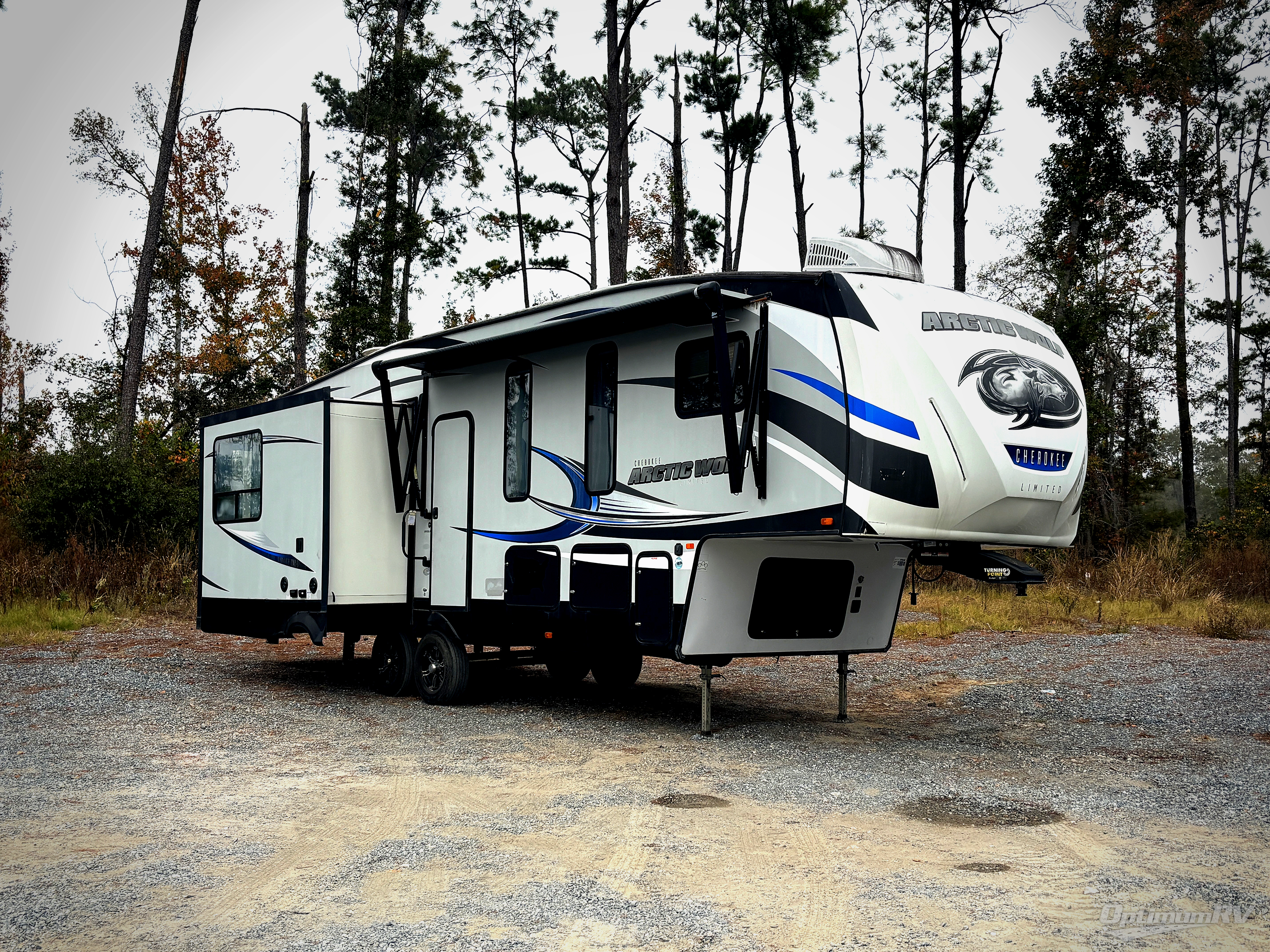 From its automatic leveling system to its 6' 4" slides with oversized panoramic windows, the Cherokee Arctic Wolf fifth wheel by Forest River provides luxurious conveniences at an entry level price point. The Arctic Wolf has been designed so that even light-duty trucks can tow it, yet the interior portion is still packed full with high-class amenities that will enhance your traveling experience, like the high circulation ceiling fan that adds to the character and functionality of the living area. Not only will you be thoroughly impressed with the Arctic Wolf, but so will everyone else that sees it because RV Pro has awarded the Arctic Wolf their "Best of Show" title.