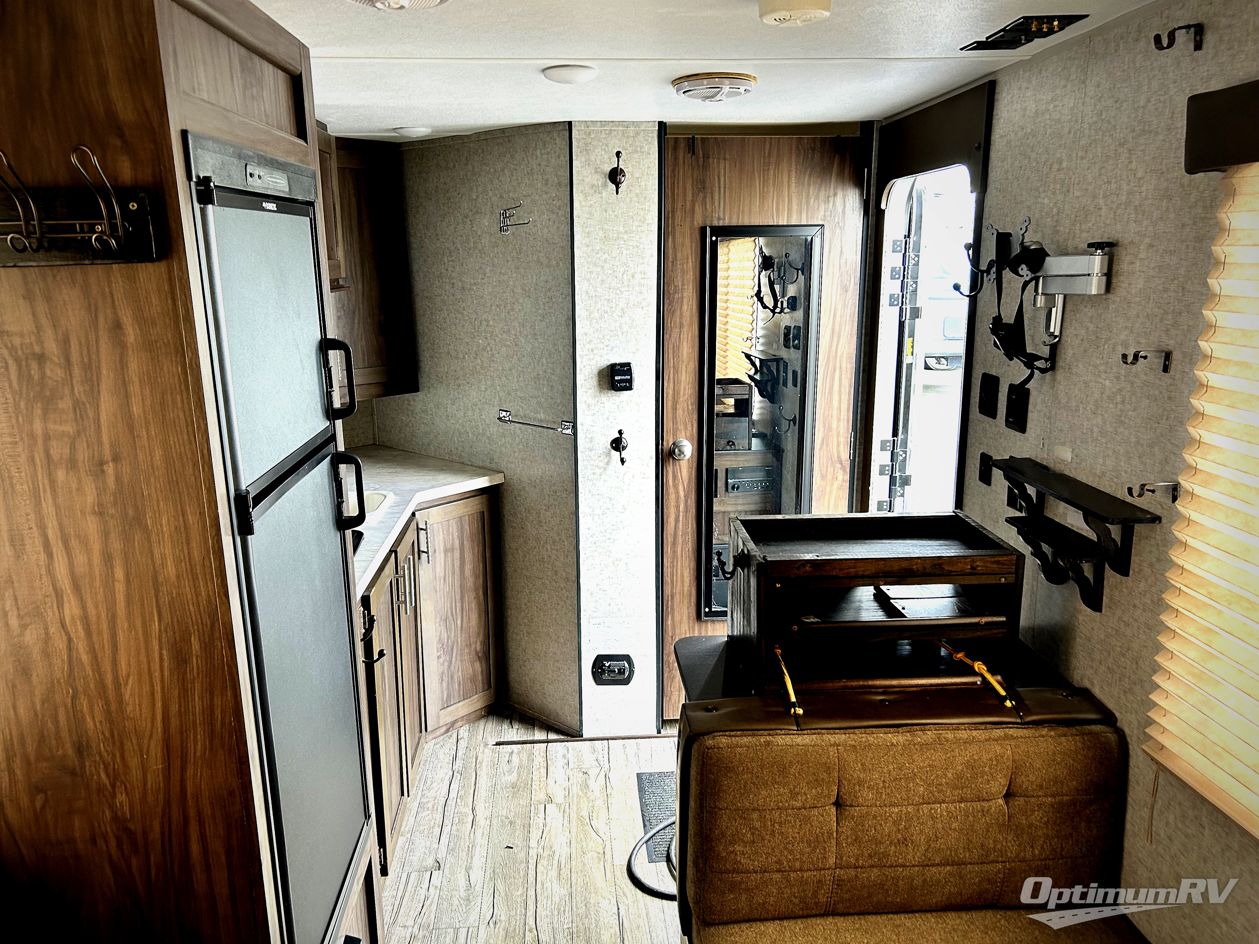 The next time you are in the market for a travel trailer, choose this Cherokee Wolf Pup. The v-nose design allows for better aerodynamics as well as gives you more floor space. This unit features a rear slide out with a queen bed to stretch out on after a long day of exploring. You'll love being able to visit with family on the sofa or share a meal at the dinette. With an overhead compartment and a pantry in the kitchen, you'll have plenty of room for all your dry goods and don't forget the outside storage for larger items! This model also includes a bath with a tub and a shower for easy clean-up. Make your next camping trip great with this Cherokee Wolf Pup travel trailer!