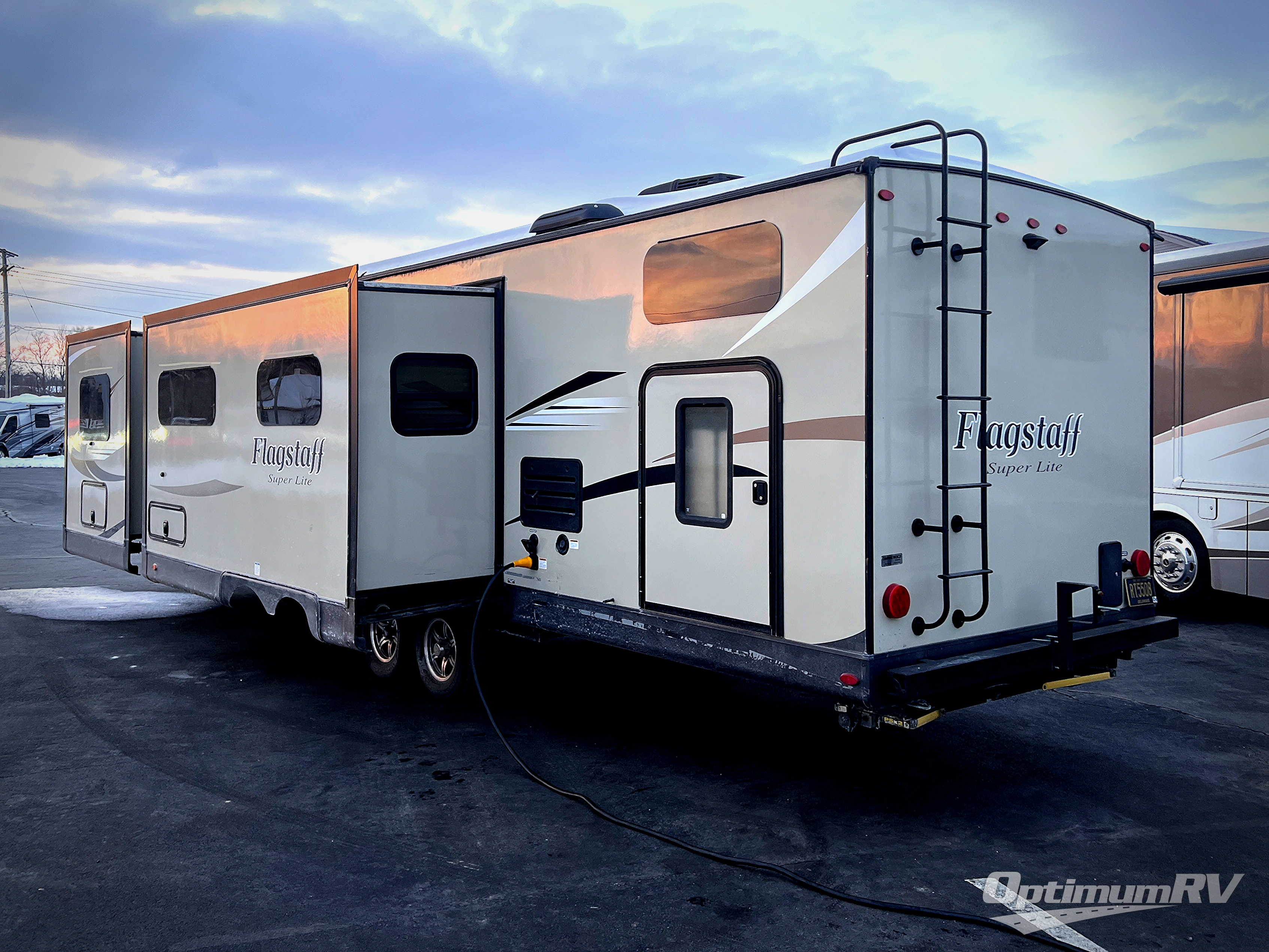 It will be easy to make plenty of memories with your family when you choose to camp with a Flagstaff Super Lite travel trailer by Forest River. These models have beautiful slatewood cabinetry with hardwood cabinet doors and drawer fronts, solid surface kitchen countertops, and ceiling LED 12 volt interior lighting. The 6 sided aluminum cage construction offers lightweight towing, the radius roof with interior vaulted ceilings give you more headroom, the WiFi ranger Wifi booster Sky 4, the enclosed underbelly, and the power awning with adjustable rain dump and LED light strip, will give you years of enjoyment!