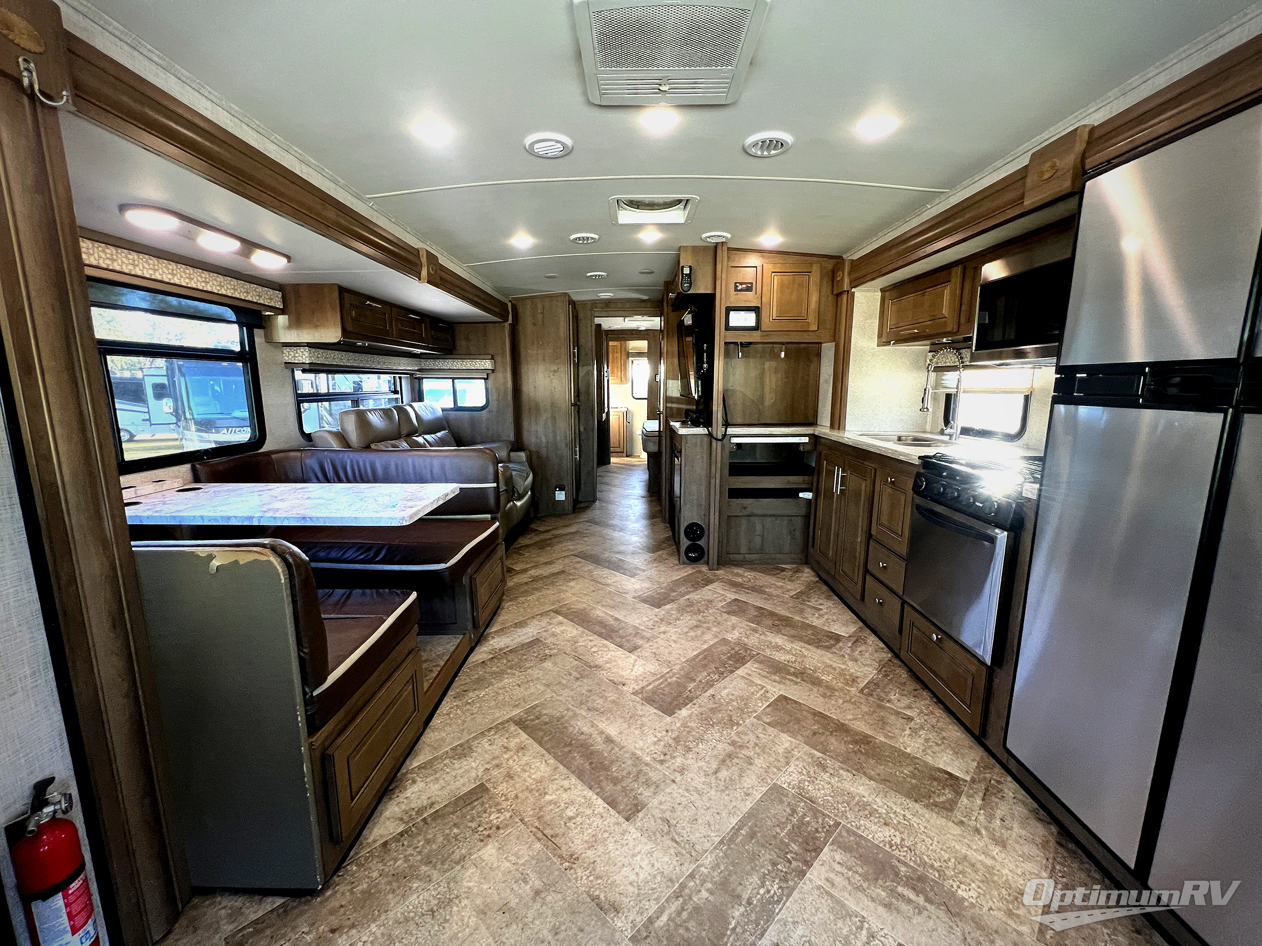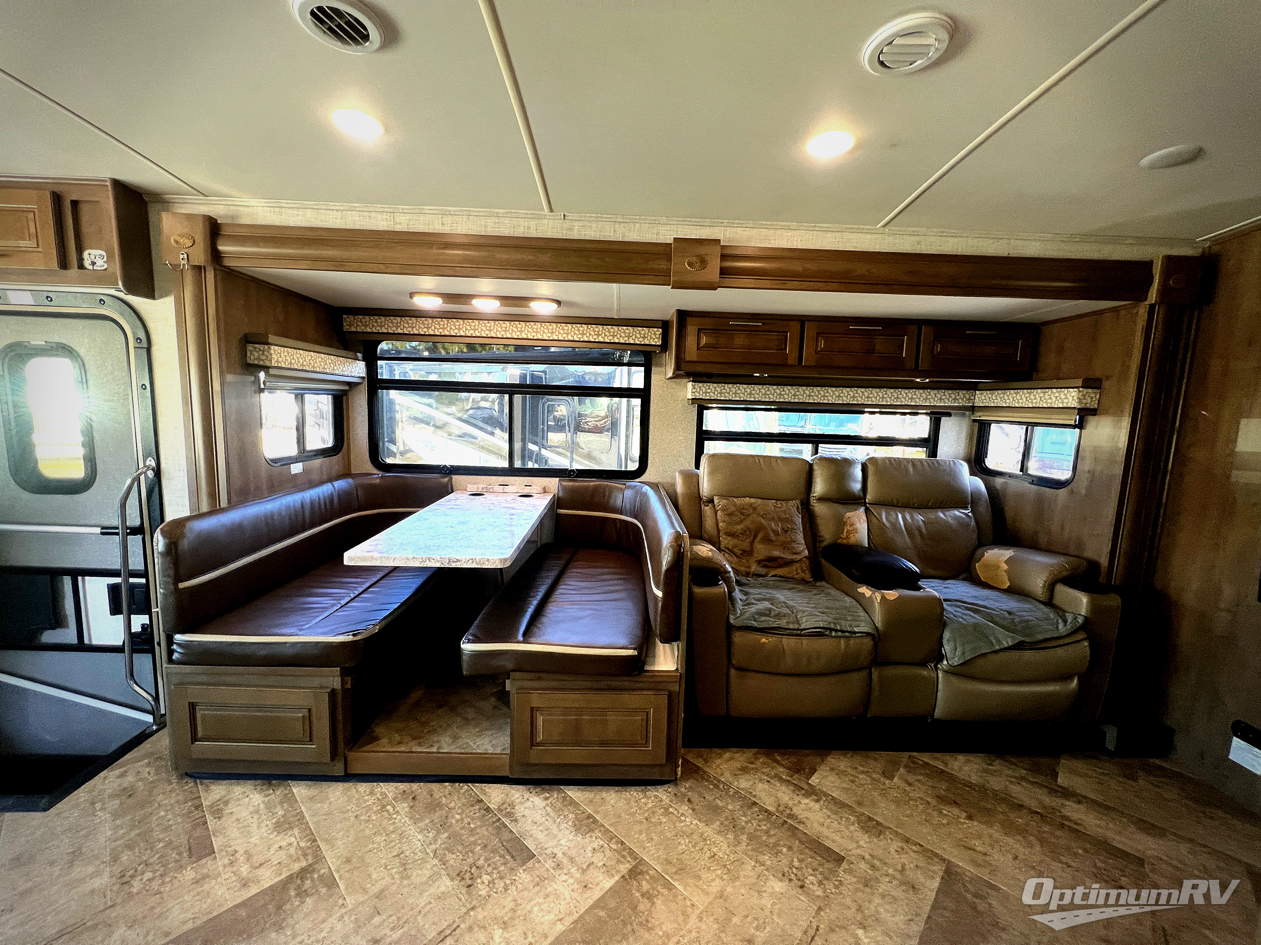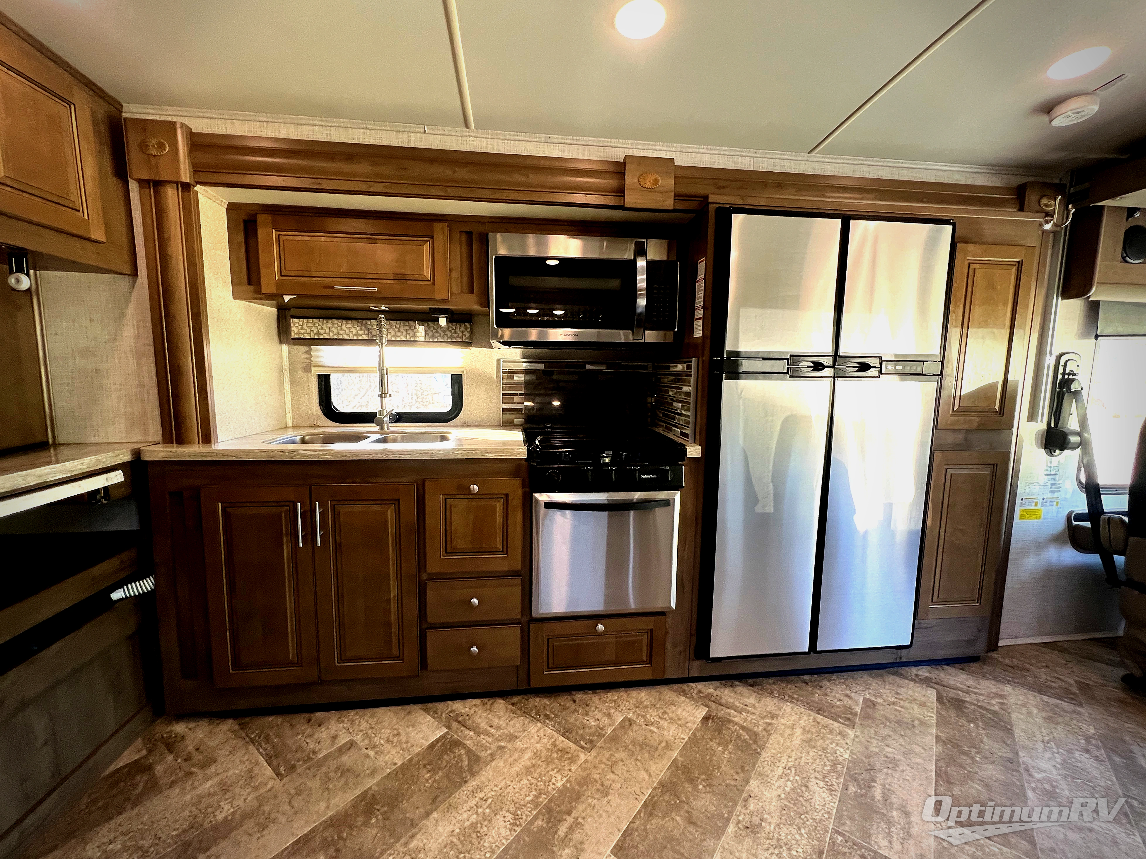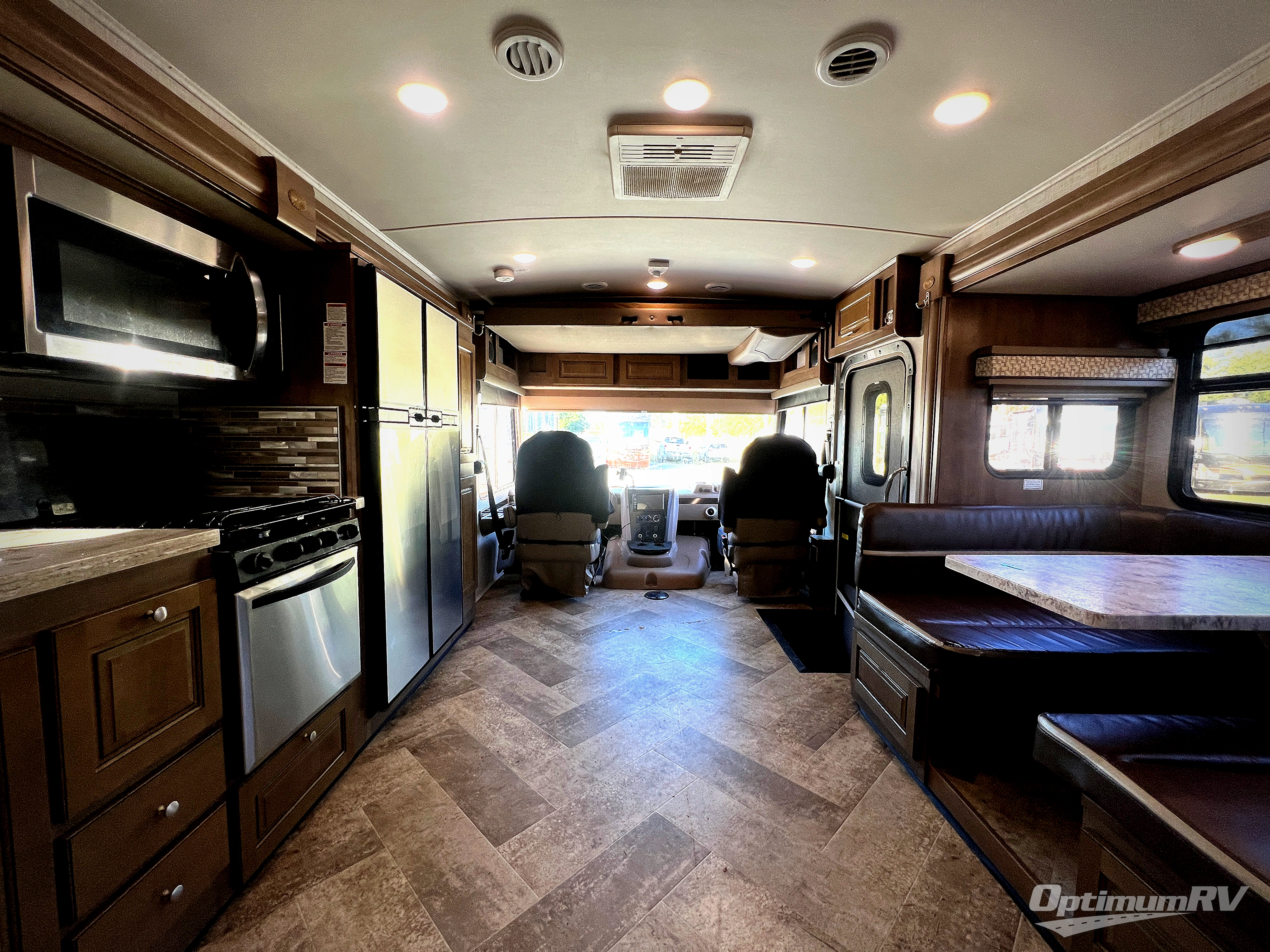 It's time for you to enjoy your road trips in true comfort! Check out this Forest River Georgetown 5 Series 34H5 class A motorhome. You won't be disappointed with all of the features it has to offer like the full and half baths, the passenger work station, the 32" LED bedroom TV, and the 40" LED main TV. Another feature you are sure to love is the rear private bedroom. Here you will find access to your own private bathroom, a king bed with nightstands on either side, and even a wardrobe that is prepped for the optional washer/dryer. The luxurious features don't stop there! There is also a fireplace with theater seating directly across from it, and the seating even has cup holders so that you don't spill your drinks.