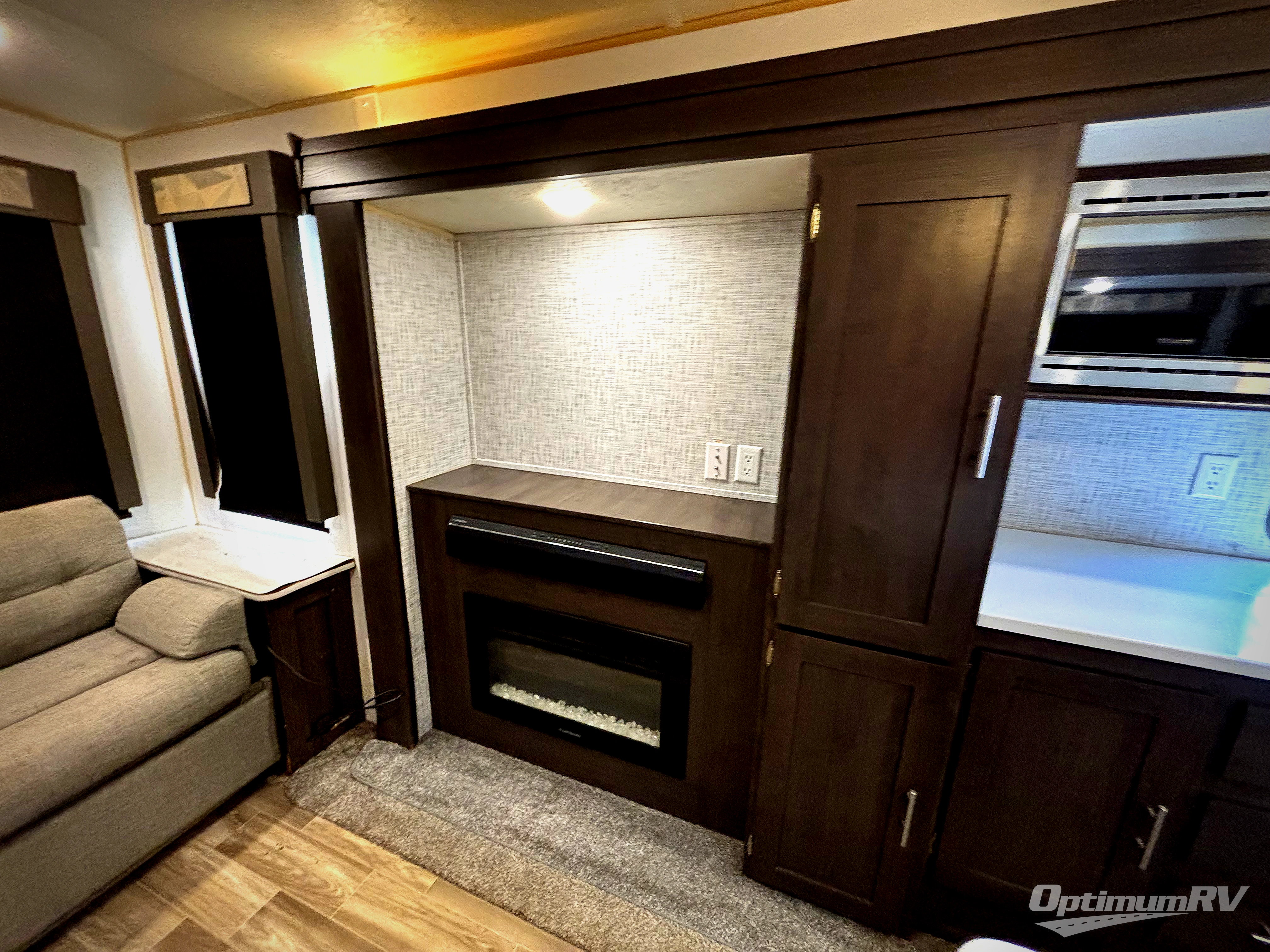 Come start your next camping trip with comfort and ease when you have this Salem travel trailer by Forest River. This model features dual opposing slides which help to open up the floor space. Along the rear wall is a Jiffy sofa, and more seating can be found on the two recliners and booth dinette within the curbside slide out. In the evening you can have a fire in the fireplace while you read a book or plan out tomorrow's adventures. Everything that you need to create your meals can be found in the kitchen, like the three-burner range and residential sink on the island. Outside you will find two awnings that will provide as much shade as possible for you!