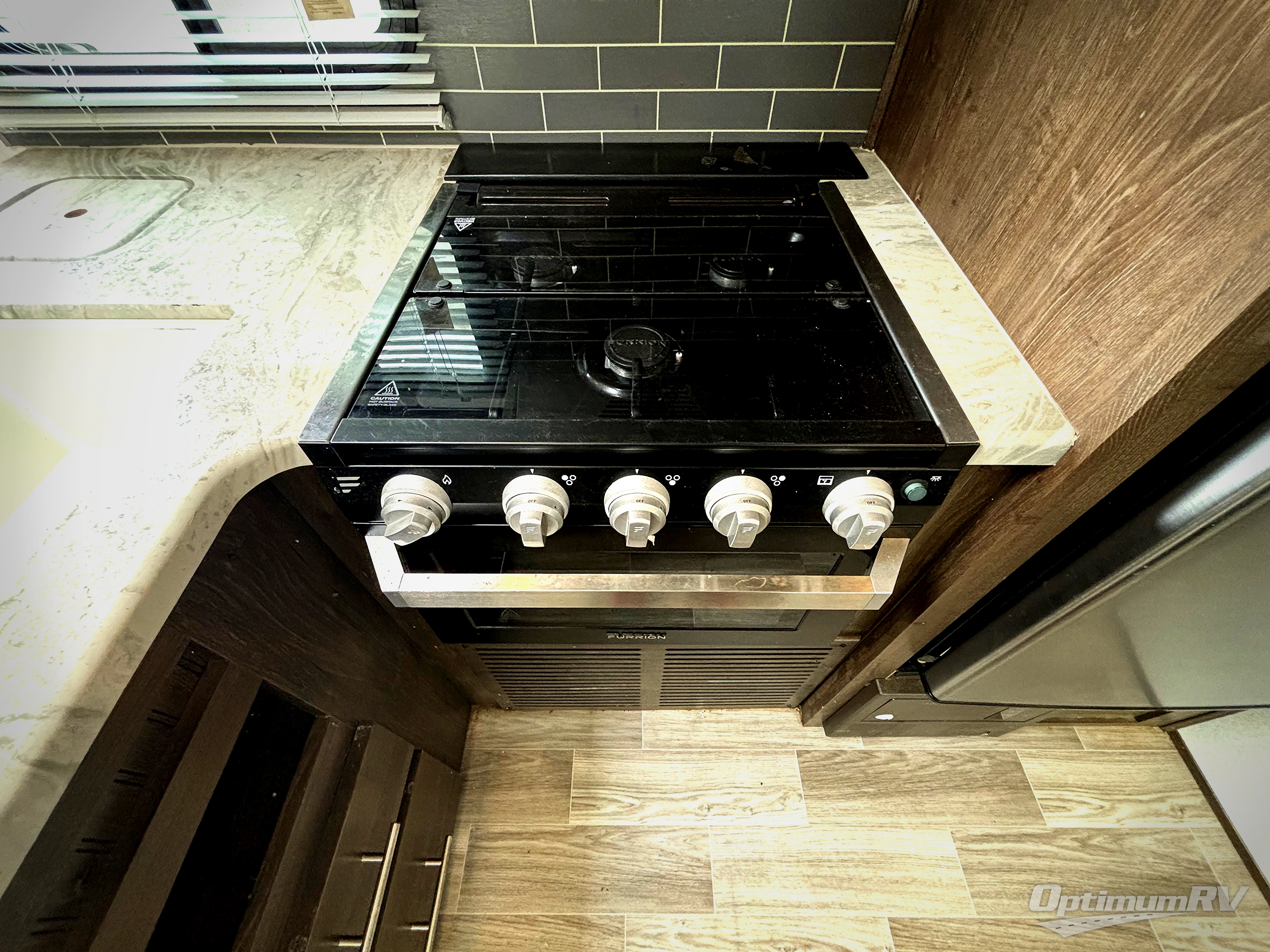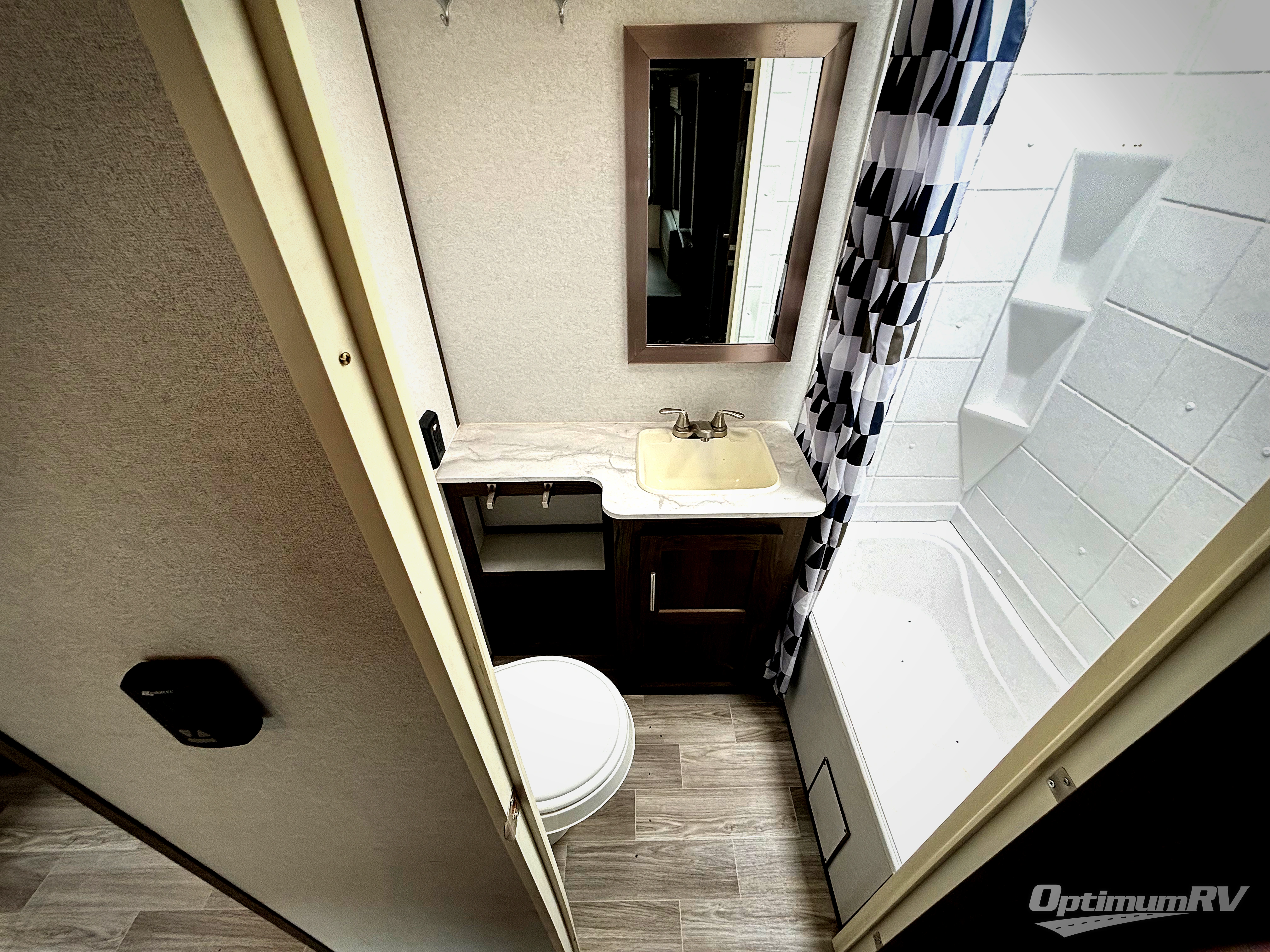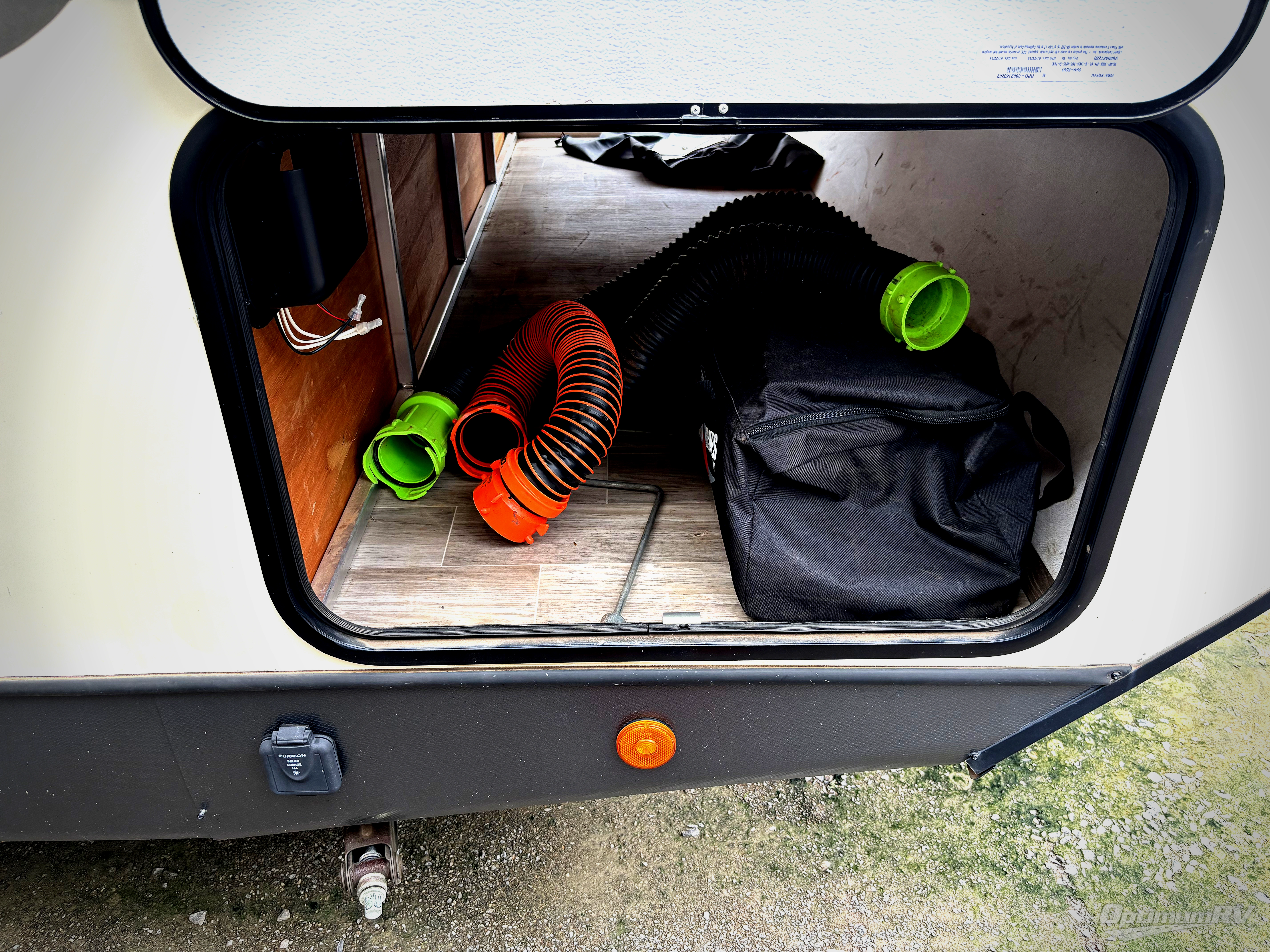 For true comfort and luxury you will want to camp in this single slide out travel trailer. This model features two entry doors for easy access. In the rear living area there is plenty of room for your family to sit and relax at the lounge chairs along the rear wall or the tri-fold sofa and dinette within the slide out. The private front bedroom features a queen bed, an overhead cabinet, and nightstands. Outside you can enjoy spending more time with your family under the 20' awning, plus there is an convenient exterior refrigerator where you can store drinks, snacks, and more!