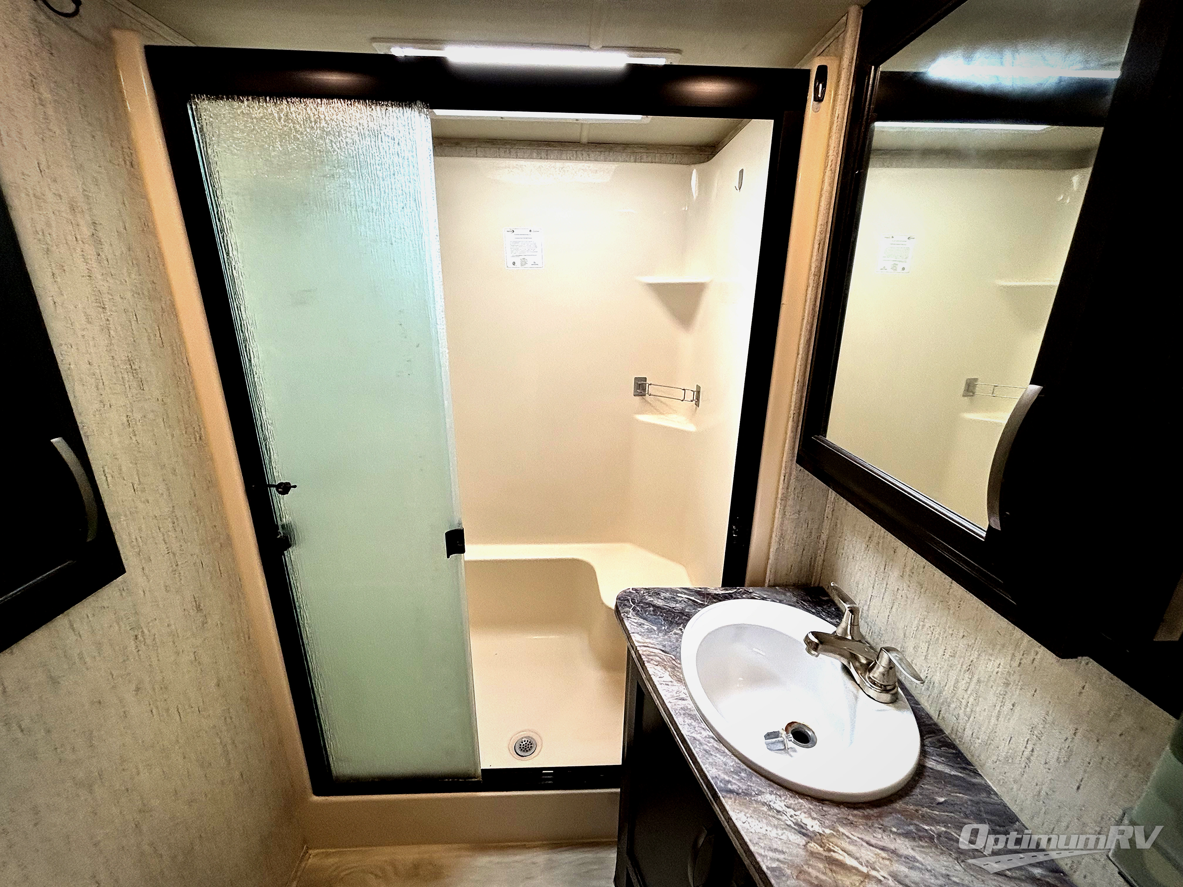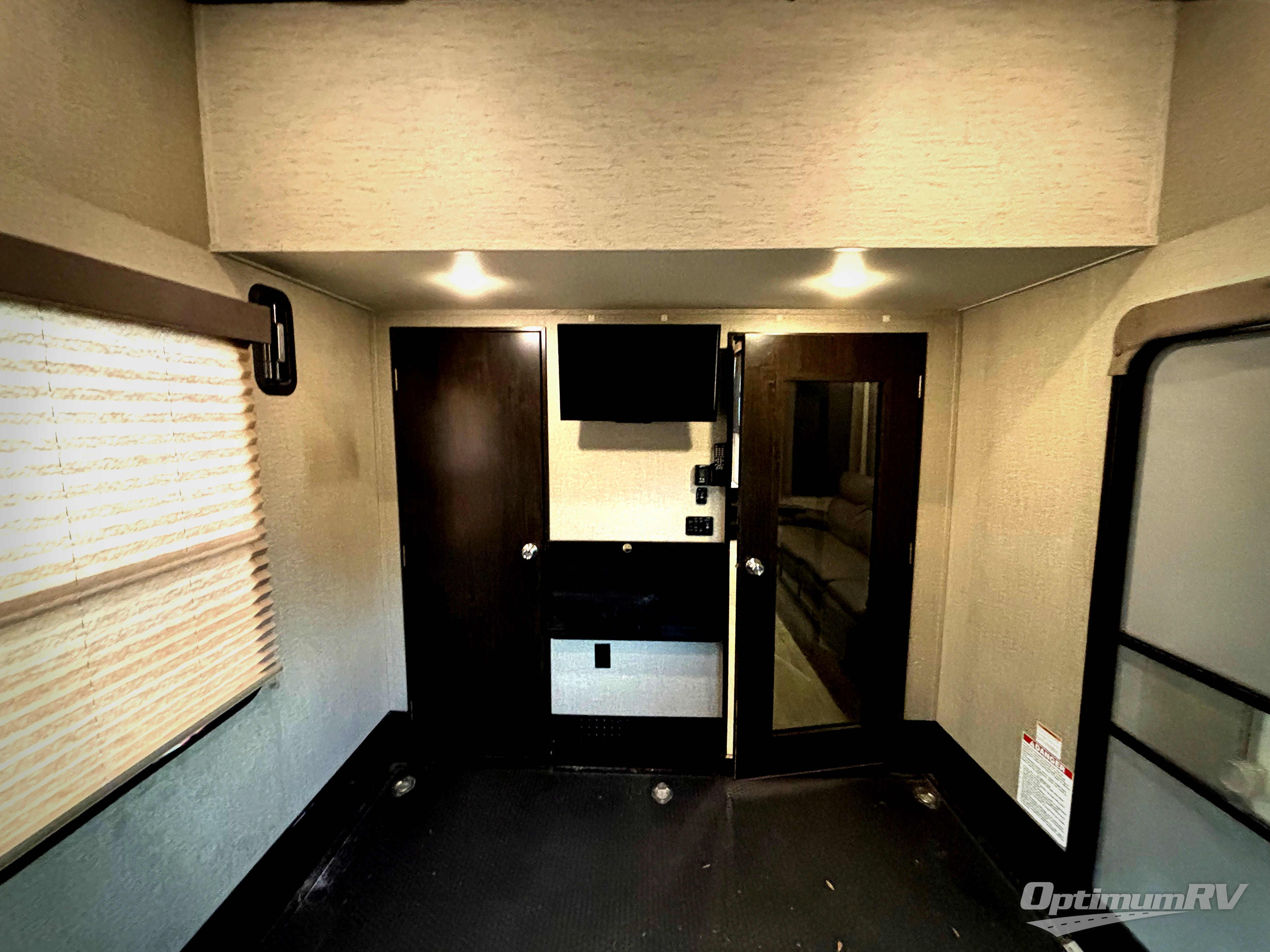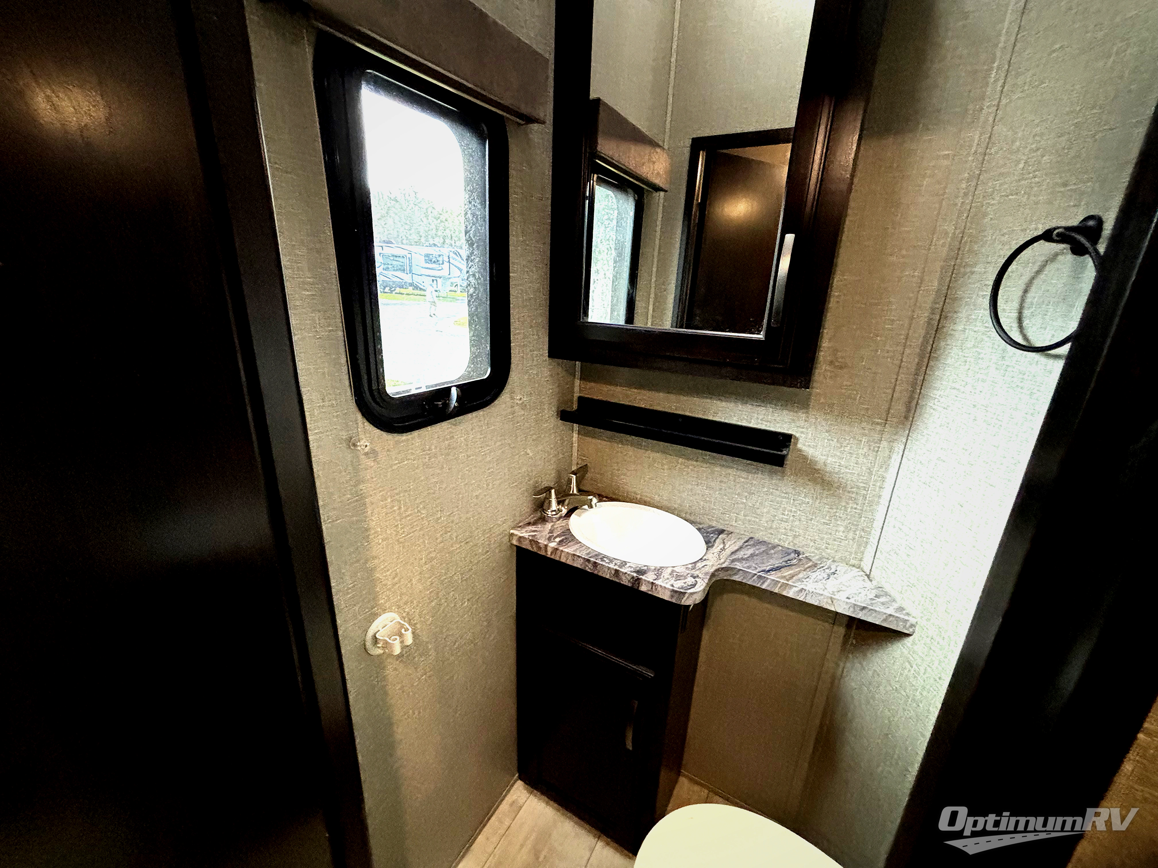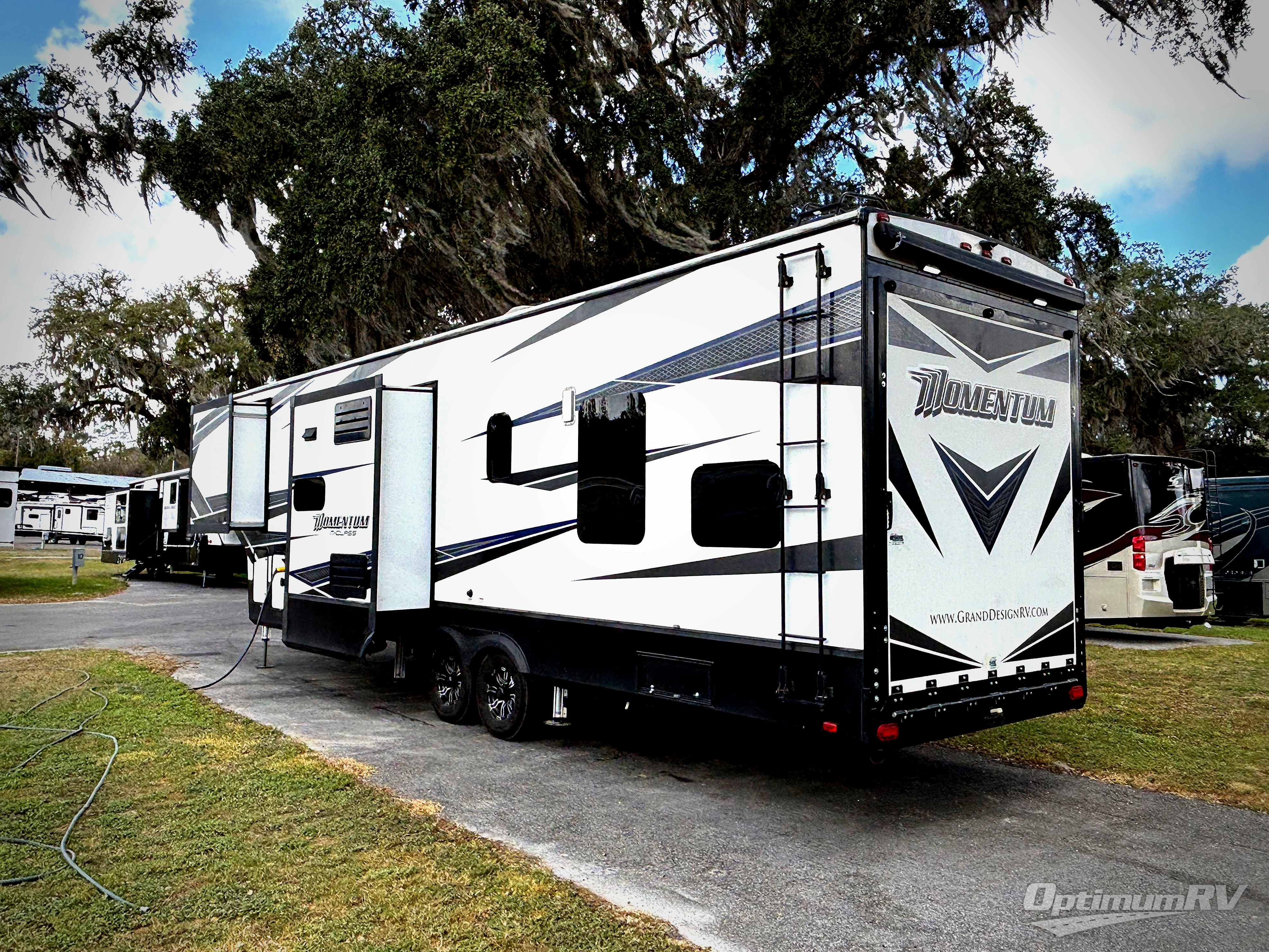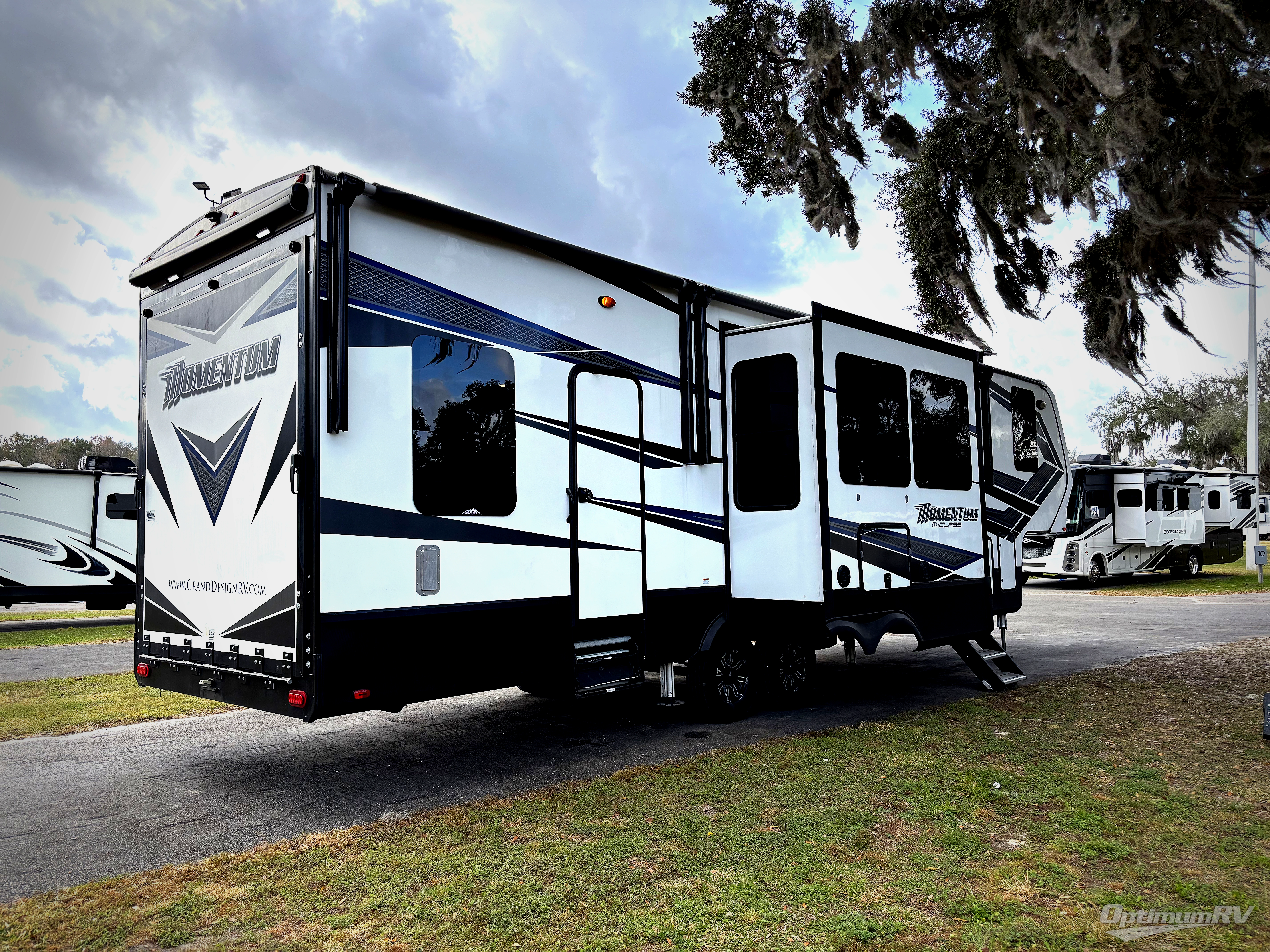 When the outdoors is all you think about, and you are looking for a weekend thrill, choose this Momentum M-Class 351M toy hauler fifth wheel by Grand Design. You will find plenty of space for a few off-road toys as well as there is plenty of comfortable living space throughout. The garage features 11' of space for an ATV or dirt bikes, plus includes a half bath. There are also plenty of windows providing natural lighting in each area. The kids are sure to enjoy eating at the kitchen island on the bar stools, or watching the 49" LED TV above the fireplace. There are many more standard features to see!