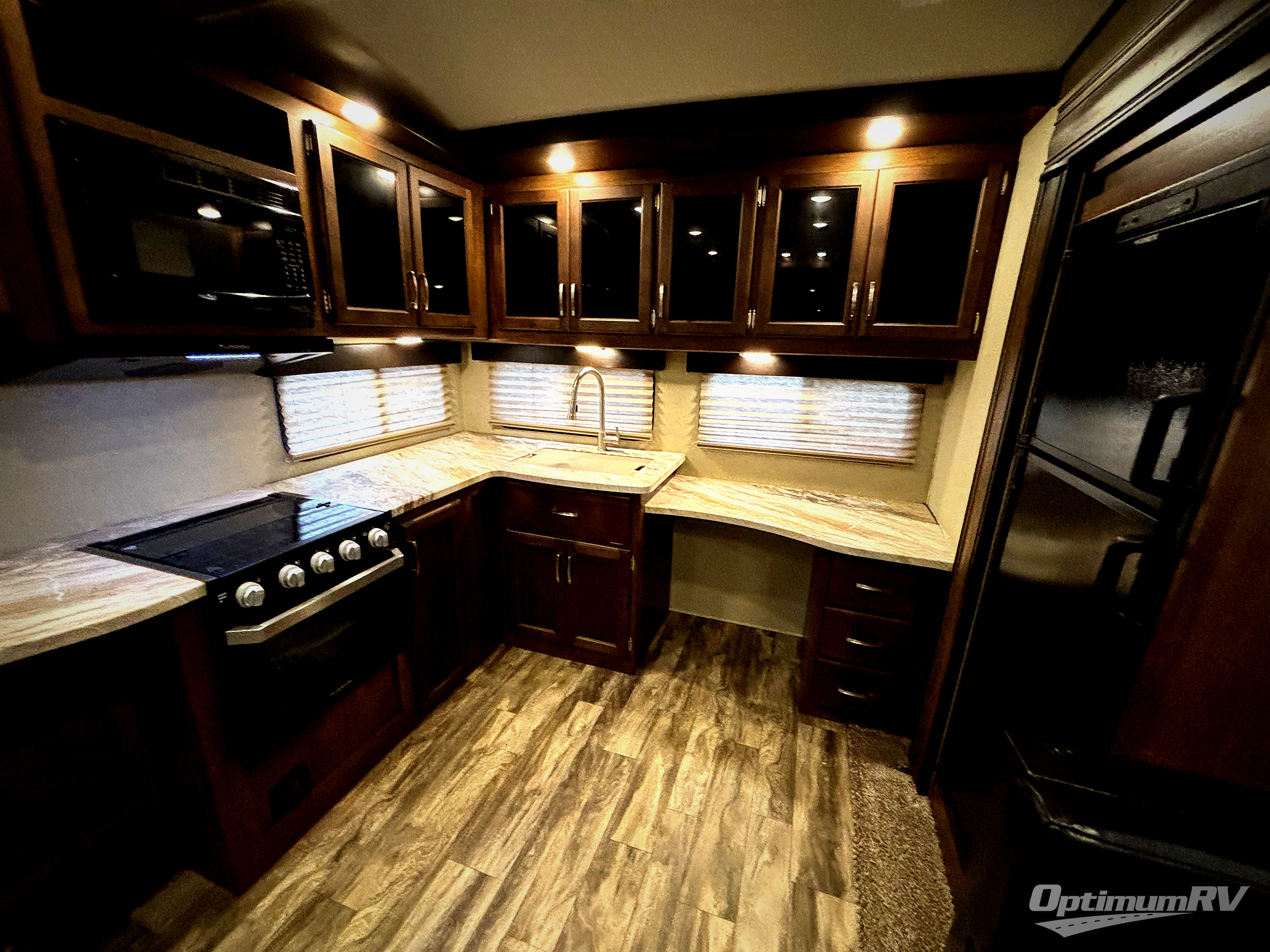 With any Reflection 150 Series fifth wheel by Grand Design, you will enjoy the ease of using your short-bed half-ton truck to tow thanks to the 90 degree turning radius swivel pin box. The Universal All-In-One docking station, LP Quick Connect, and One-Touch electric awning with LED light make setting up and packing up easy for those weekenders or full-timers that like to move around to see the countryside. Inside you will find that the bedroom is complete with a king-size wardrobe, a queen bed, and an oversized under-bed storage area. The large panoramic windows on the slide allow you to view the beautiful scenery that you've chosen to camp next to, and the Arctic 4-Seasons Protection package allows you to camp anywhere and anytime of the year.
