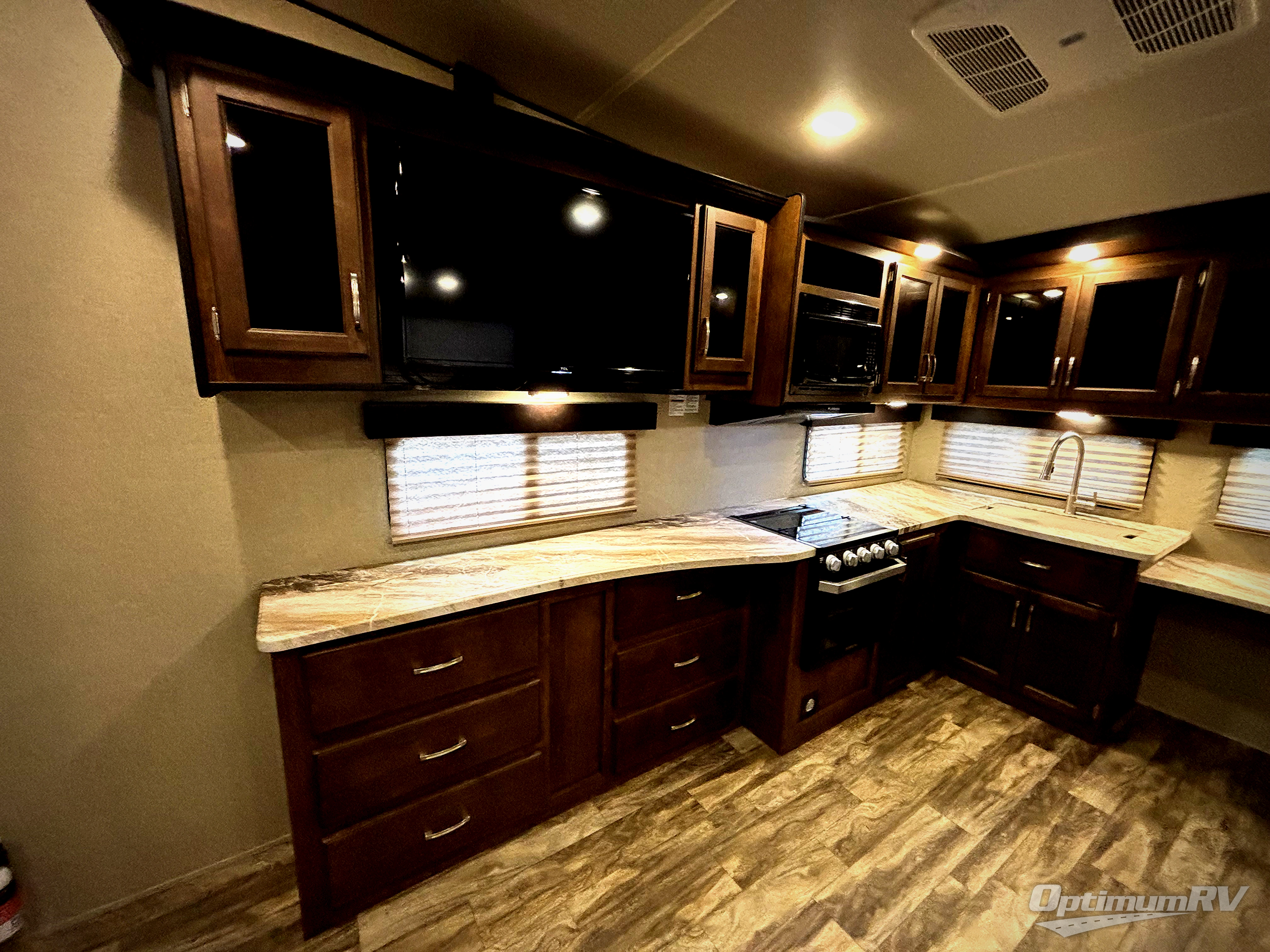 Looking to camp in luxury with your significant other with extra sleeping space for guests on occasion? This Reflection 150 Series fifth wheel has additional space for overnight guests on the tri-fold sofa and 80" U-shaped dinette while you enjoy your own queen bed in the master bedroom. This fifth wheel also provides a desk in case you have to check into work while away, a 40" LED TV to watch when relaxing inside, plus a full interior kitchen. You might even enjoy cooking outside on the outdoor kitchen when the weather is nice. You will also find plenty of storage throughout the inside, as well as in the exterior unobstructed pass-through compartment.
