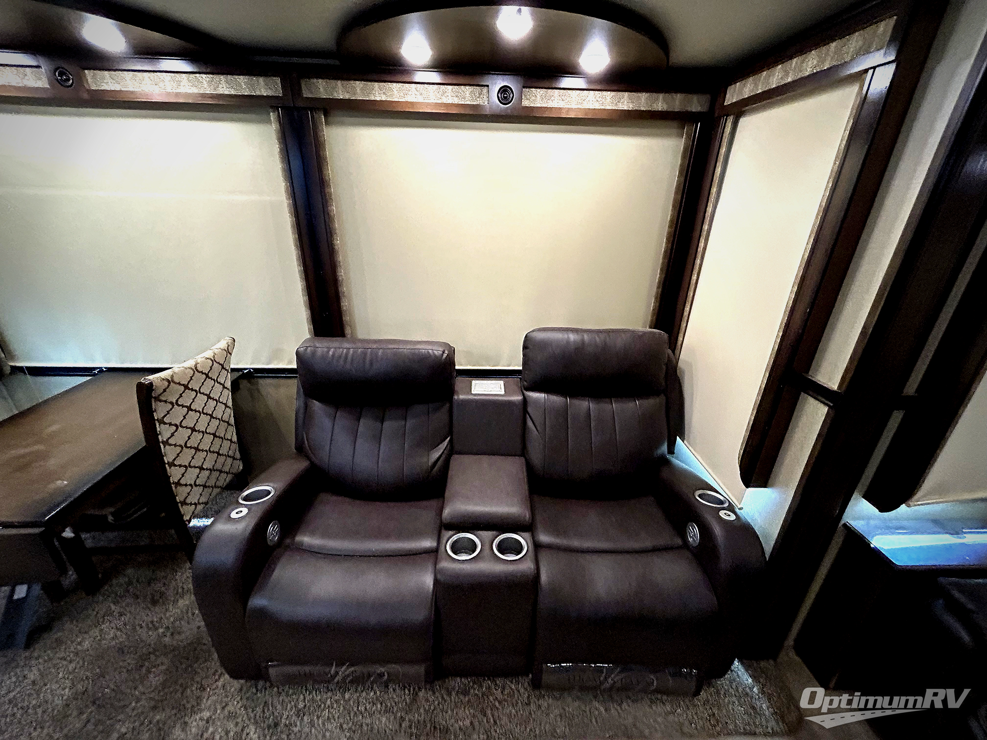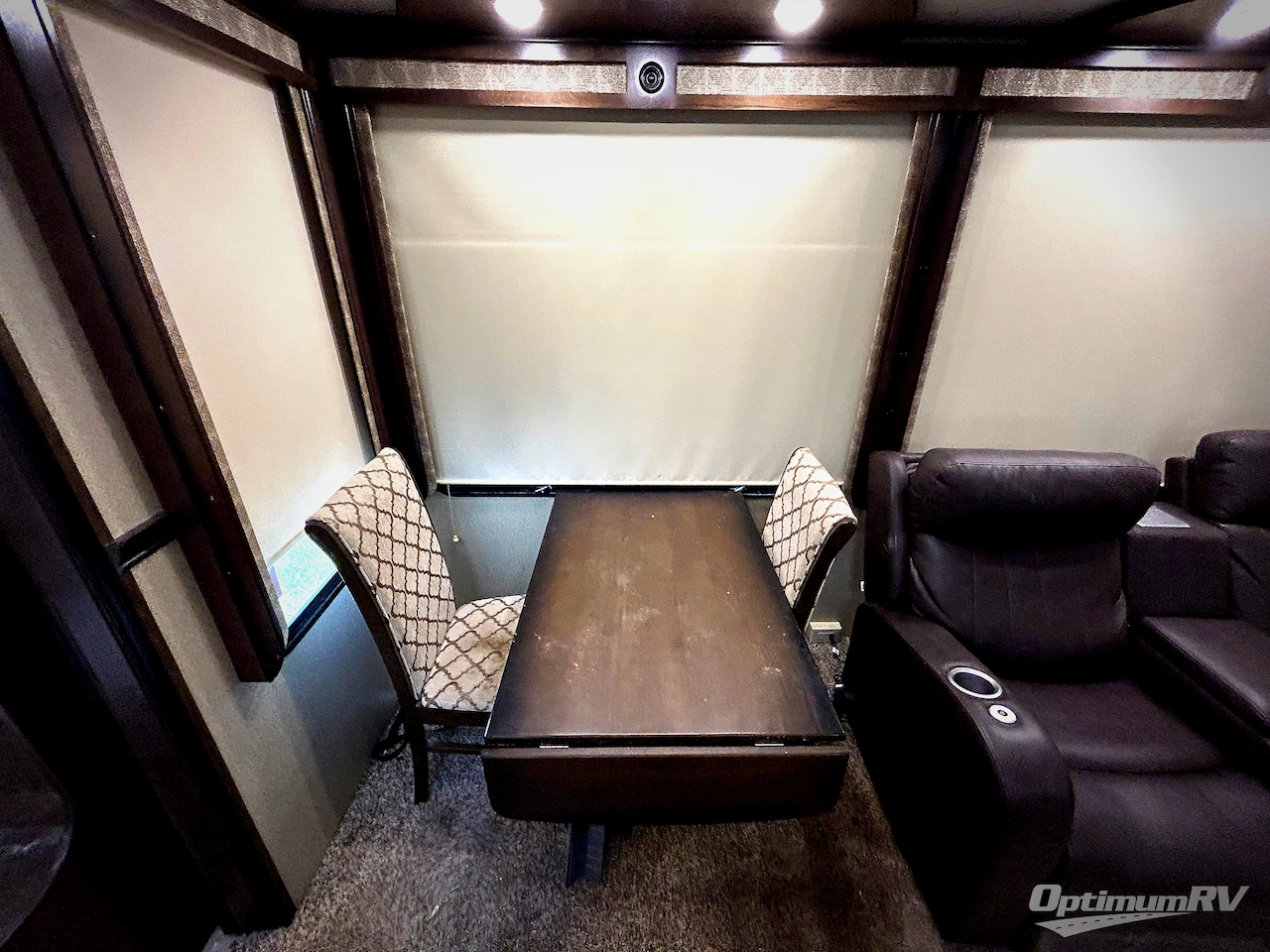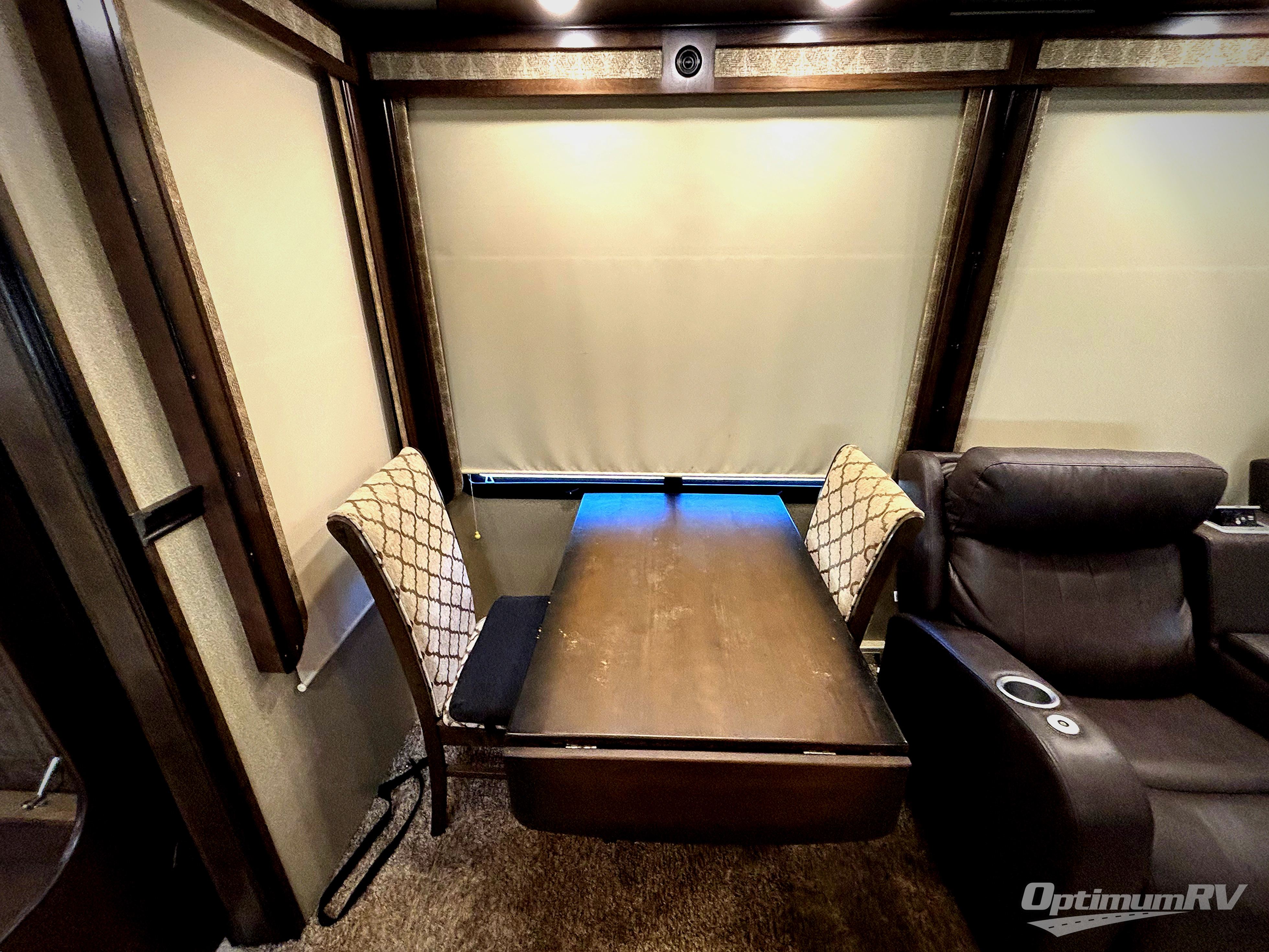 If you are looking for a full-time RV with luxury and comforts like home, this fifth wheel might just be the one. Imagine having a full master bathroom with dual sinks and plenty of storage, plus a washer/dryer if you decided to add those optional appliances to the prepped space. Now start thinking about how you will enjoy the walk-through master bedroom with a flip-top dresser, dual seats, and an LED TV. The cook will have a professional grade stainless steel cooktop, built-in oven and convection microwave to make meals. This model even includes a beverage cooler in the wine bar, dishwasher prep in the kitchen island, a stainless steel 18 cu. ft. four door refrigerator, and a large pantry. You will find plenty of seating to entertain your friends, plus a fireplace to keep everyone cozy on those chilly nights. Come see how this Solitude offers conveniences and comfort throughout, plus plenty of storage for all your things.