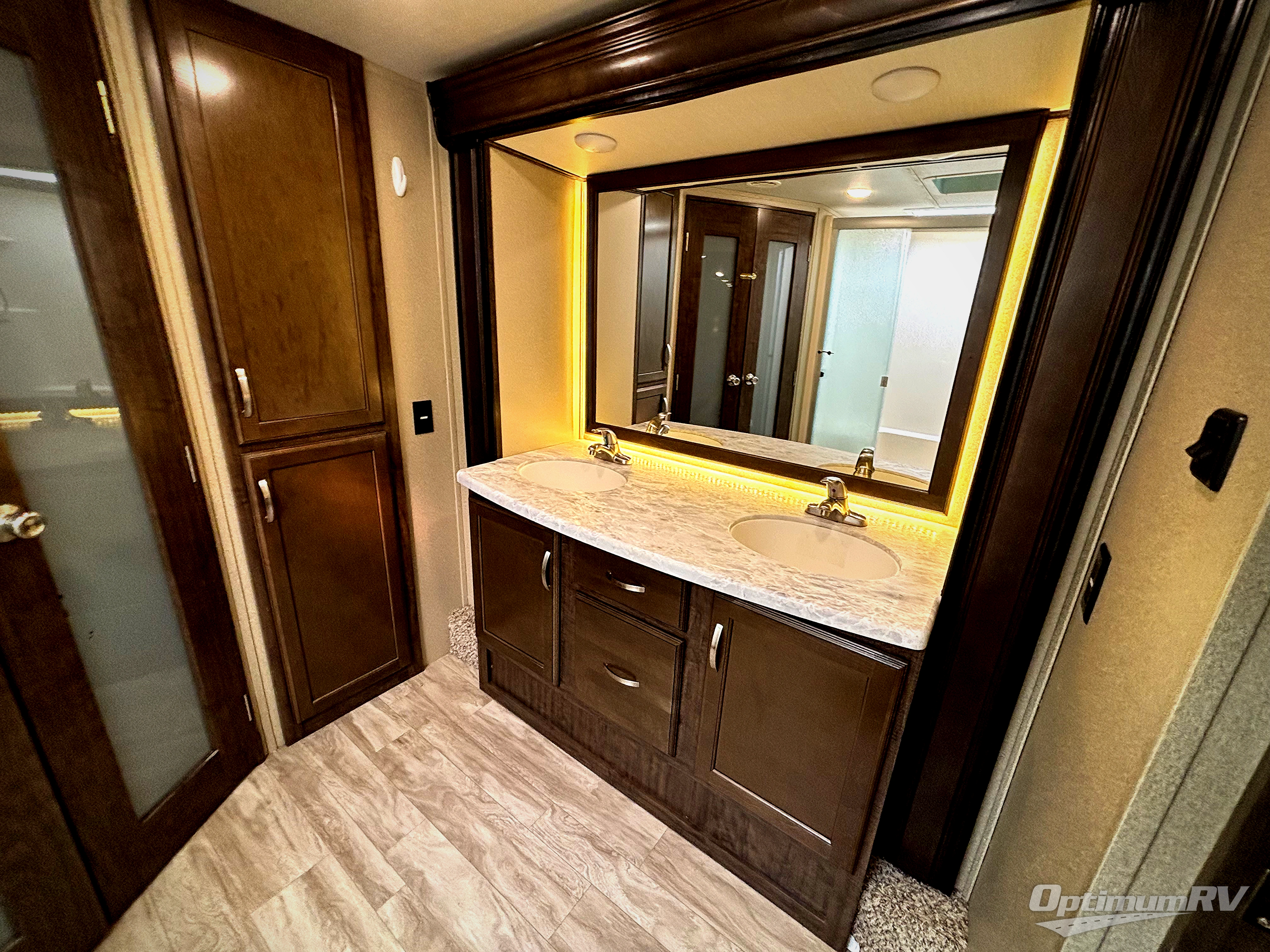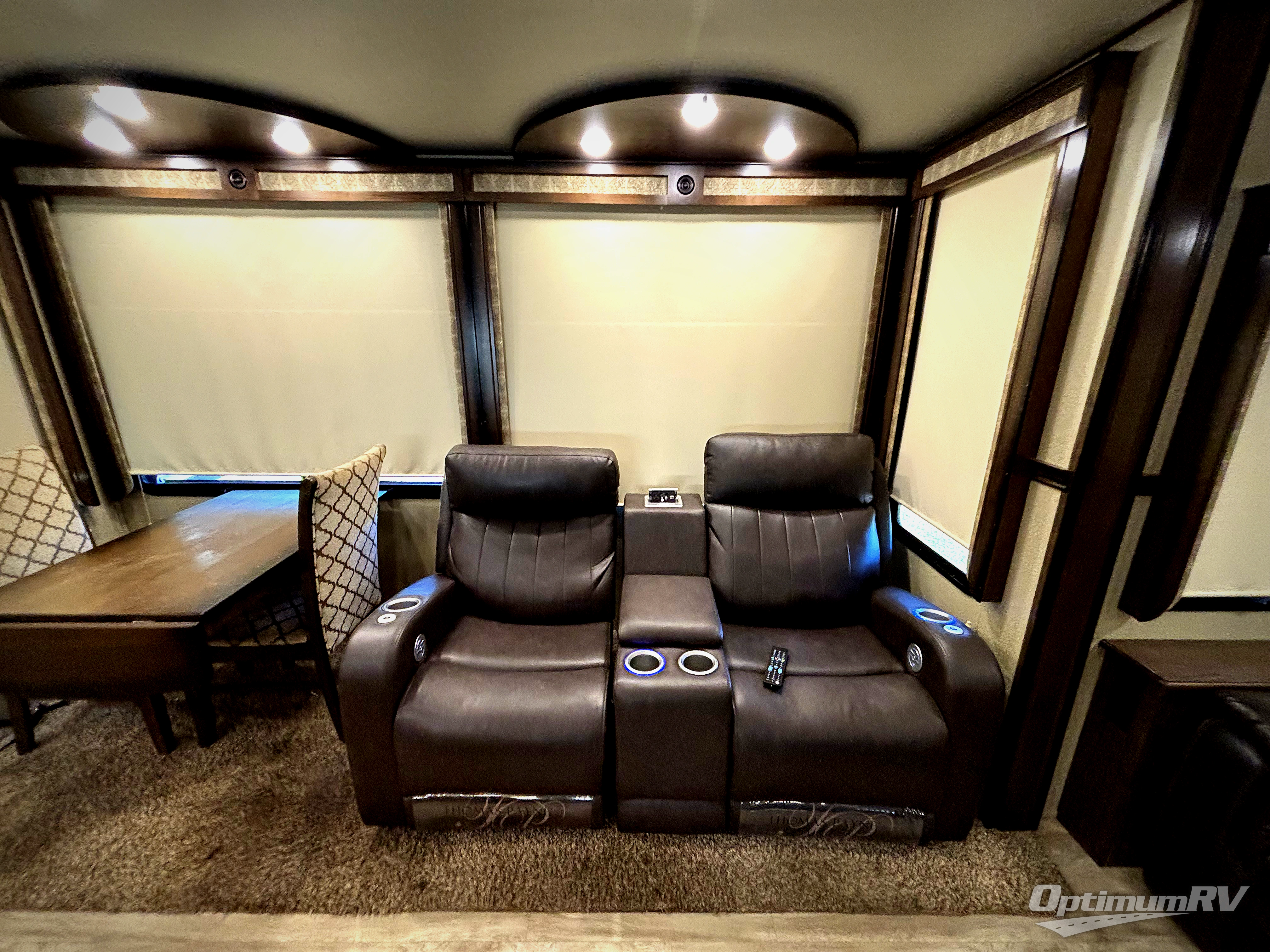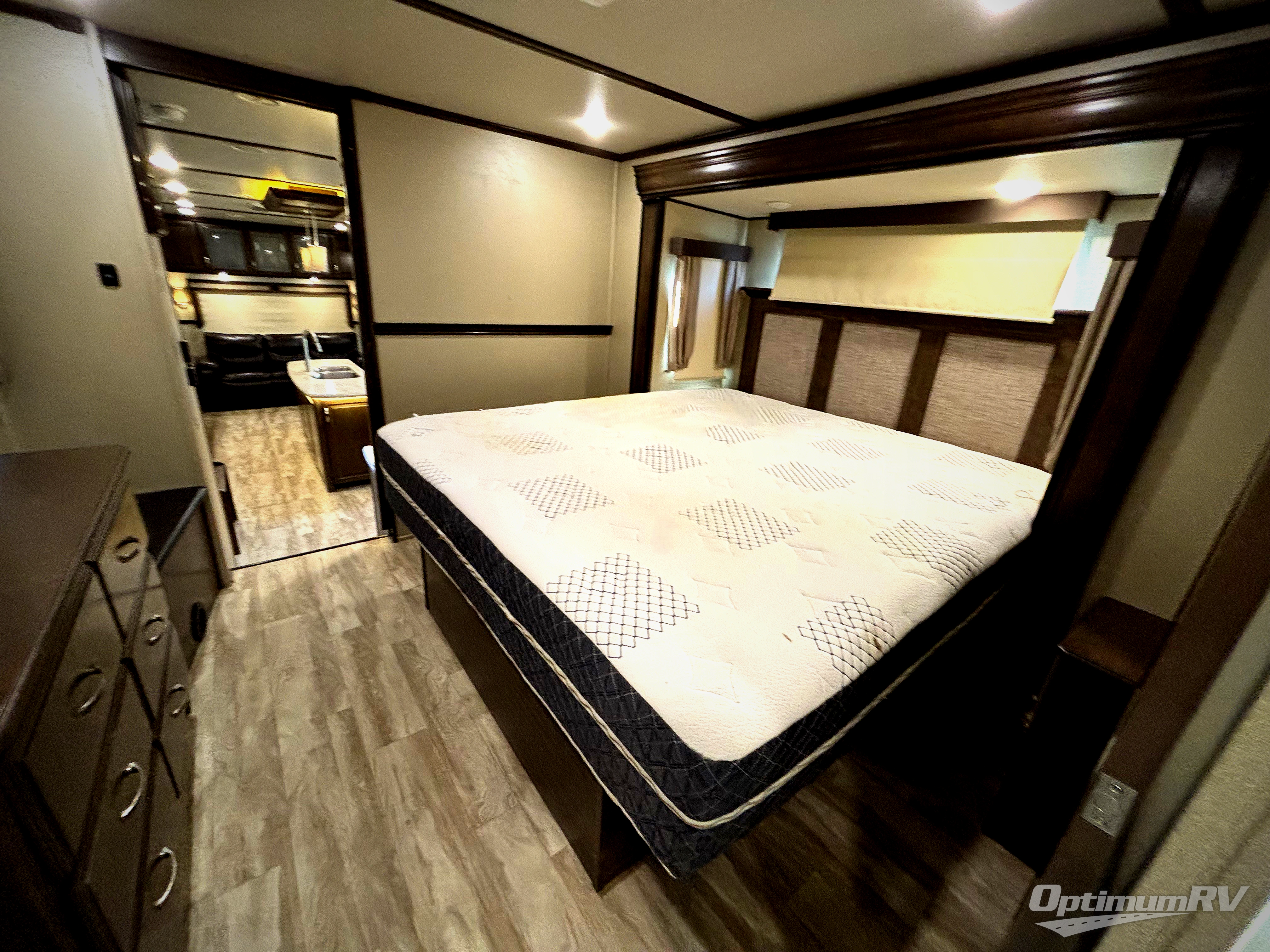 If you are looking for a full-time RV with luxury and comforts like home, this fifth wheel might just be the one. Imagine having a full master bathroom with dual sinks and plenty of storage, plus a washer/dryer if you decided to add those optional appliances to the prepped space. Now start thinking about how you will enjoy the walk-through master bedroom with a flip-top dresser, dual seats, and an LED TV. The cook will have a professional grade stainless steel cooktop, built-in oven and convection microwave to make meals. This model even includes a beverage cooler in the wine bar, dishwasher prep in the kitchen island, a stainless steel 18 cu. ft. four door refrigerator, and a large pantry. You will find plenty of seating to entertain your friends, plus a fireplace to keep everyone cozy on those chilly nights. Come see how this Solitude offers conveniences and comfort throughout, plus plenty of storage for all your things.