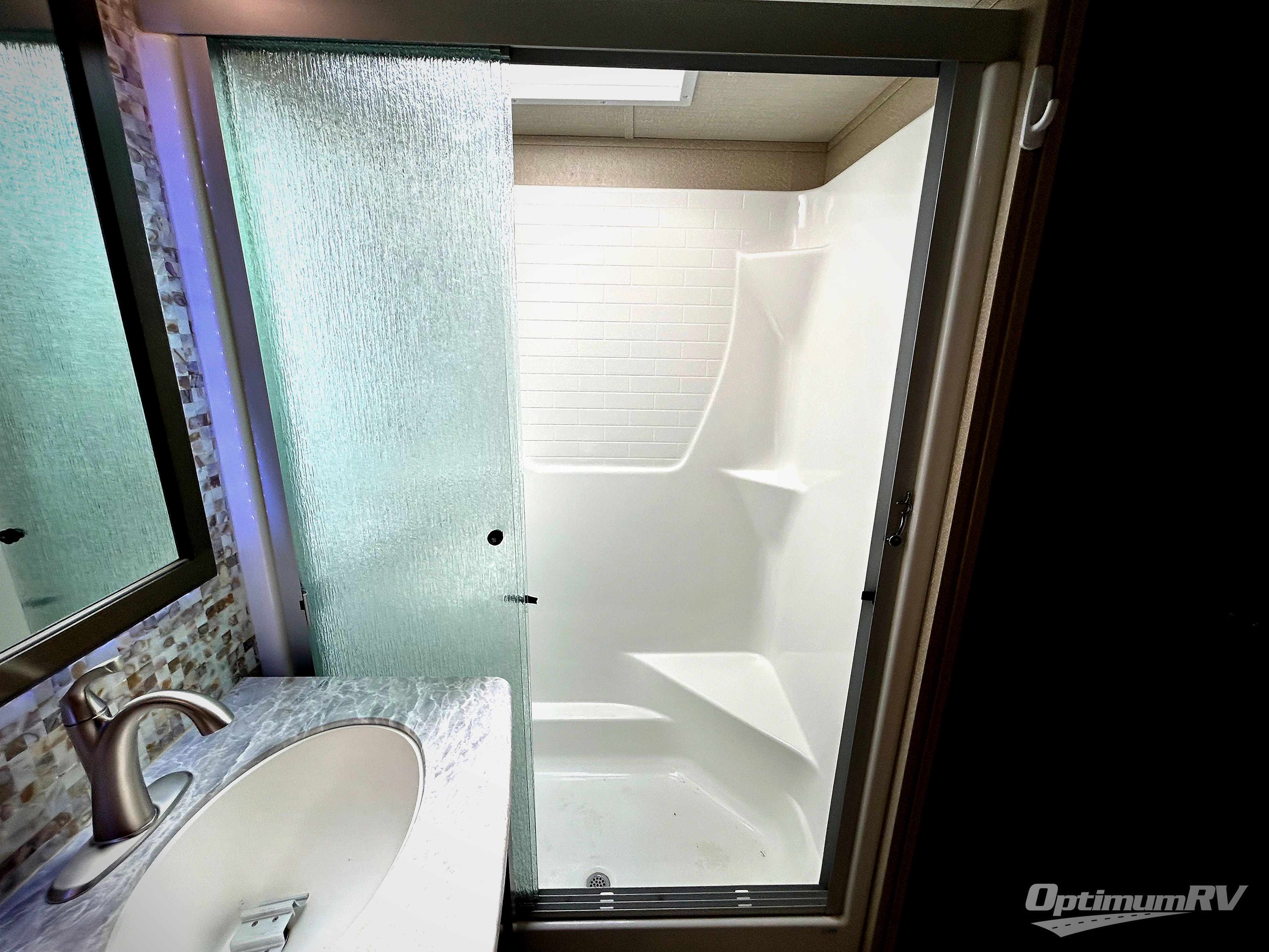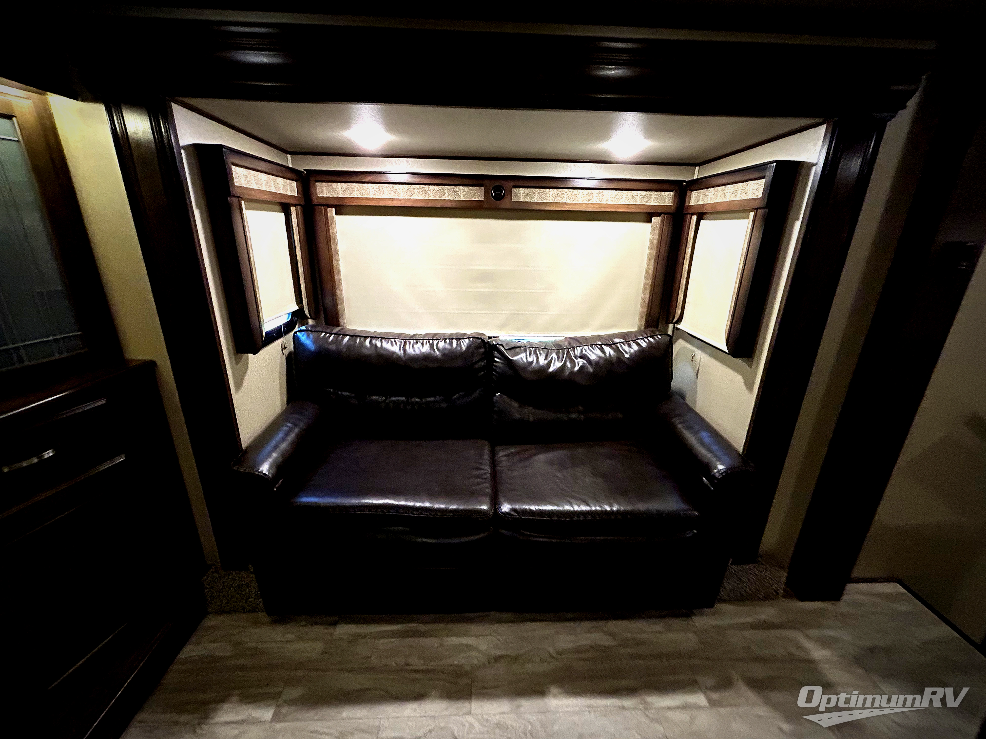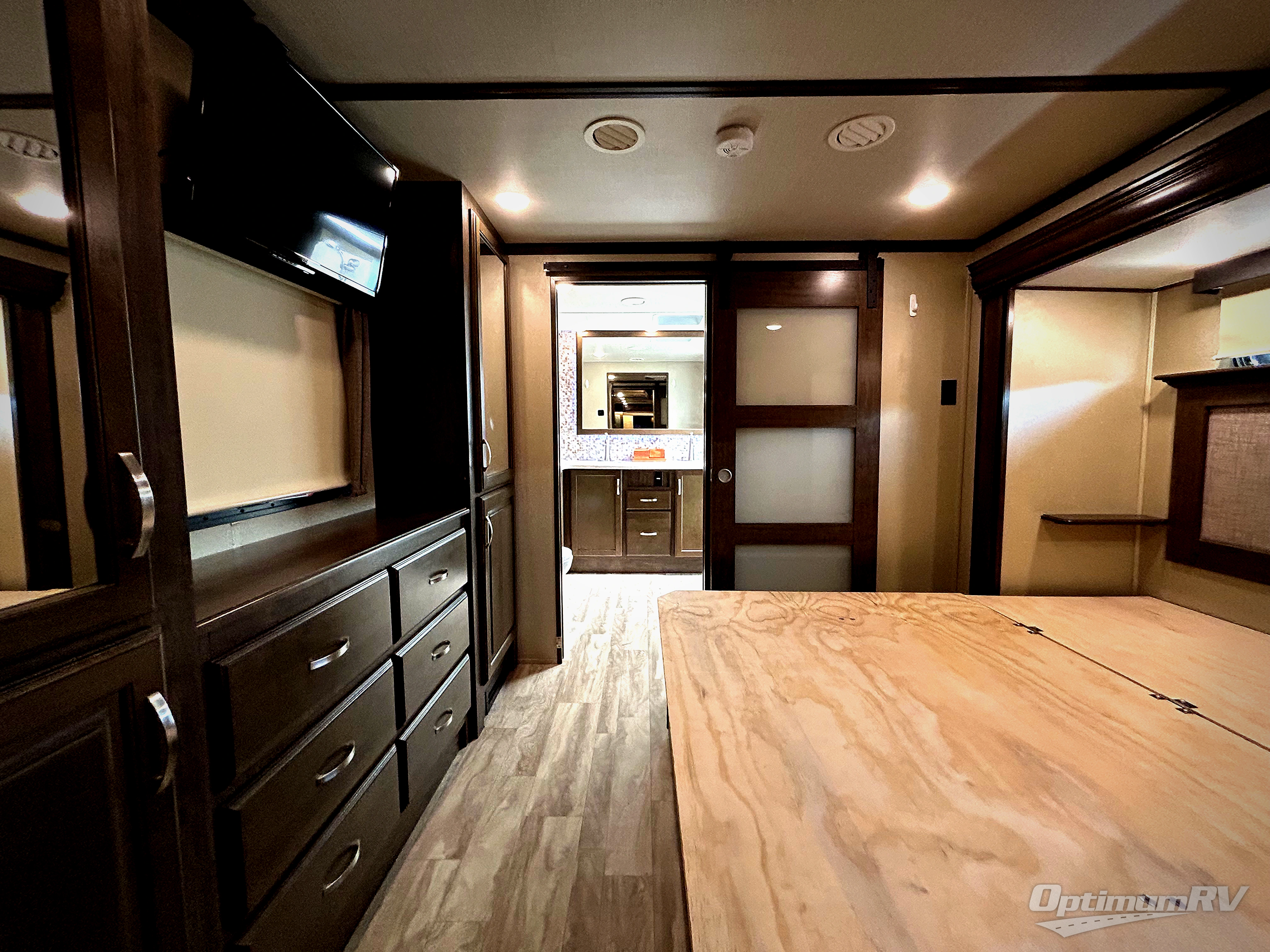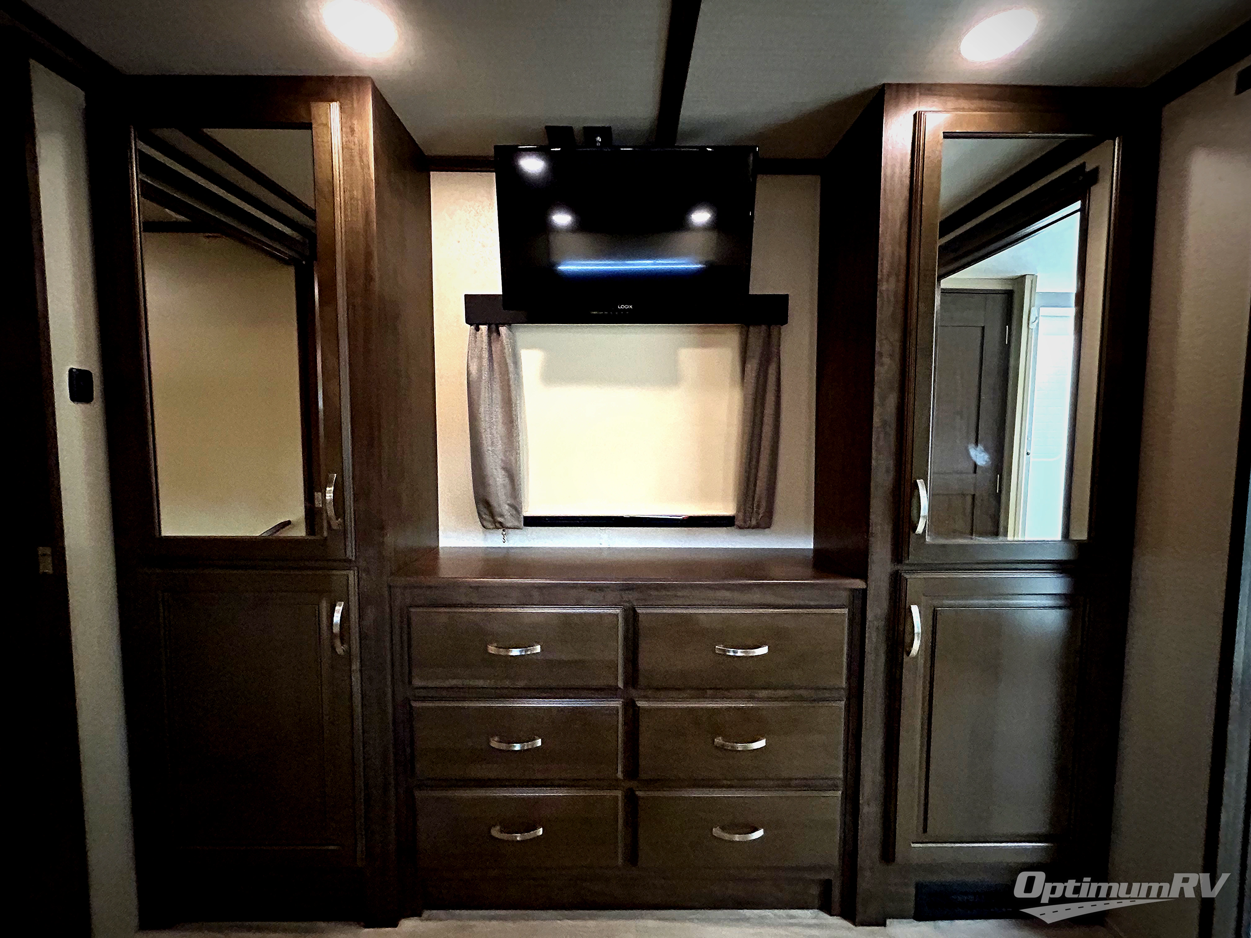 If you have been wanting to make the move to full-time RVing, imagine enough walking around space with five slide outs, extra sleeping accommodations for the grandkids in the front separate living area, and plenty of storage for all your things. You will find a dream kitchen for the cook in the family, plus the free standing dinette offers a cozy place to eat meals. The walk-through bedroom features two space savings sliding doors, and the rear master bathroom offers dual sinks, one for you and one for your spouse. You might even decide to add a few options such as a washer and dryer and/or a king size bed. Outside, there is a pass-through compartment, and rear storage with a sliding tray making getting to your gear easy. Take a look, you will be happy you did!