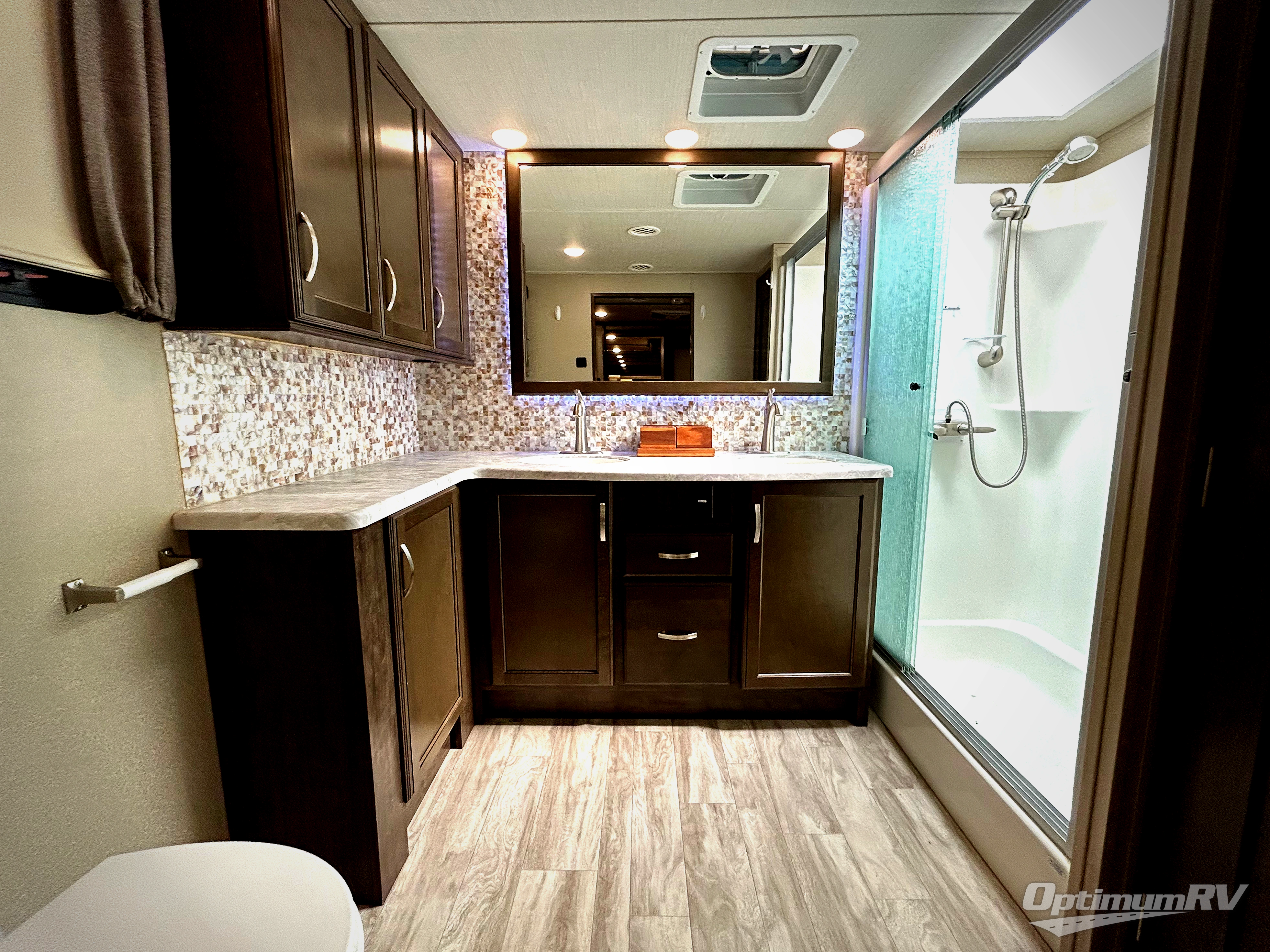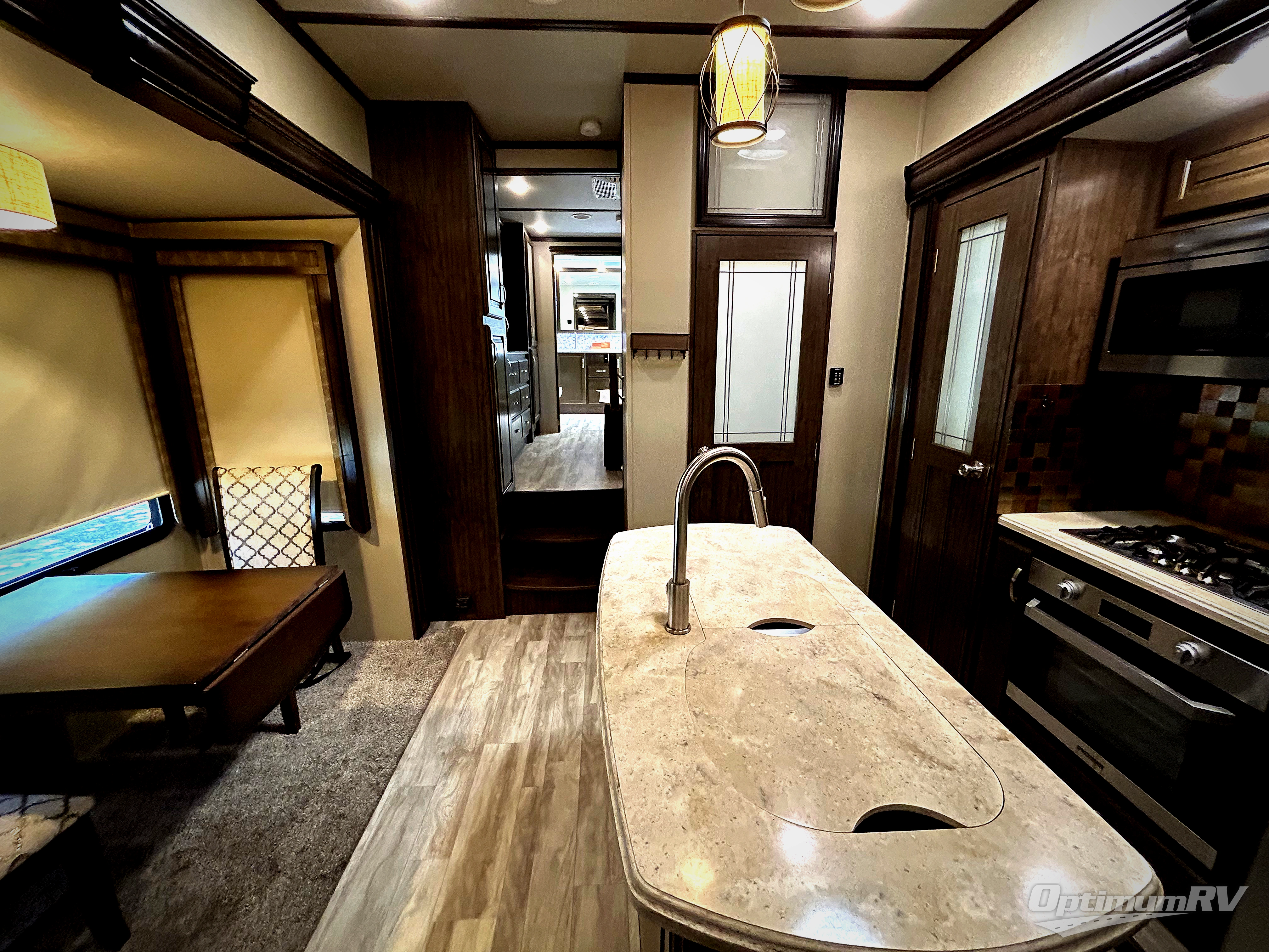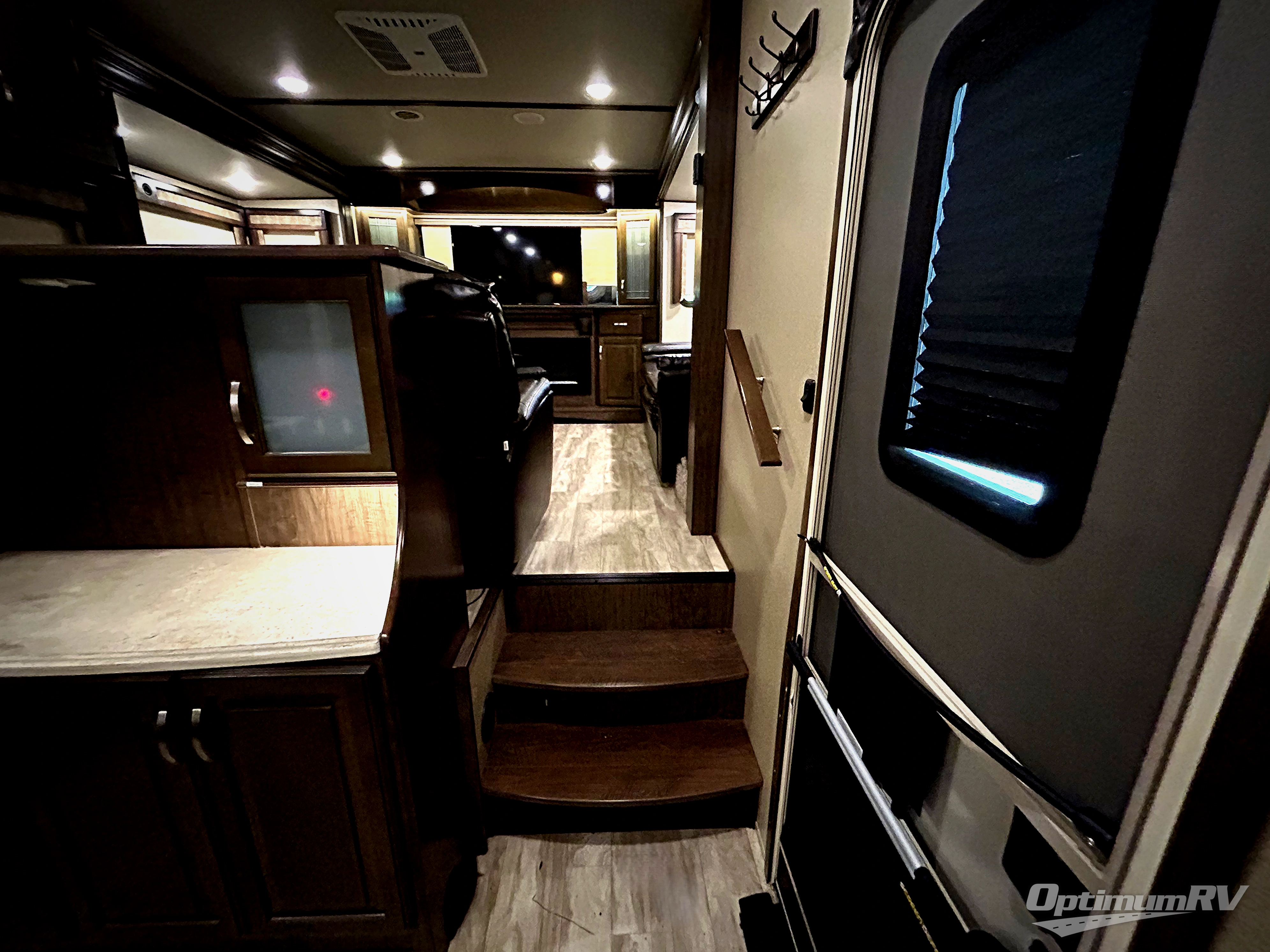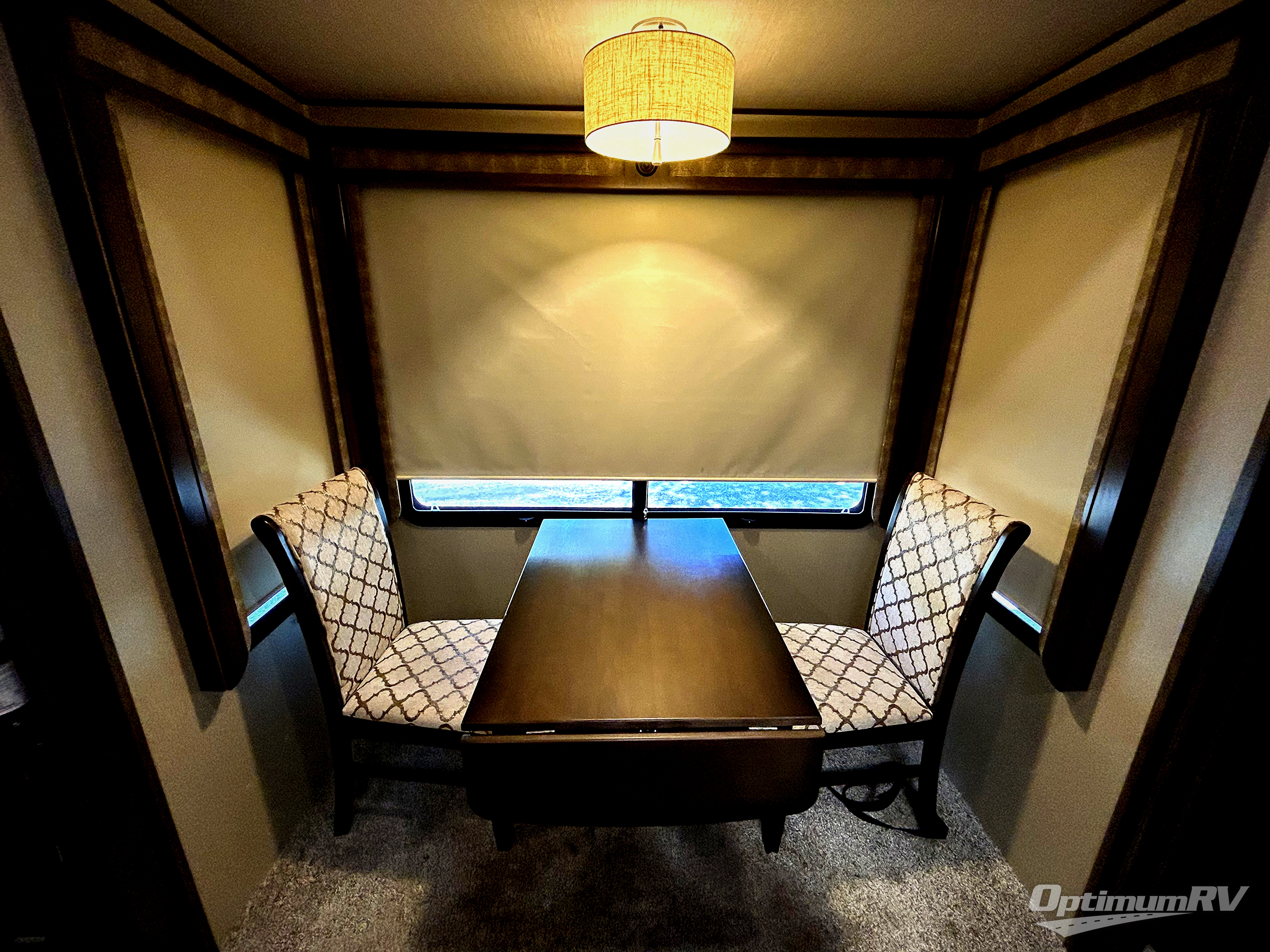 If you have been wanting to make the move to full-time RVing, imagine enough walking around space with five slide outs, extra sleeping accommodations for the grandkids in the front separate living area, and plenty of storage for all your things. You will find a dream kitchen for the cook in the family, plus the free standing dinette offers a cozy place to eat meals. The walk-through bedroom features two space savings sliding doors, and the rear master bathroom offers dual sinks, one for you and one for your spouse. You might even decide to add a few options such as a washer and dryer and/or a king size bed. Outside, there is a pass-through compartment, and rear storage with a sliding tray making getting to your gear easy. Take a look, you will be happy you did!