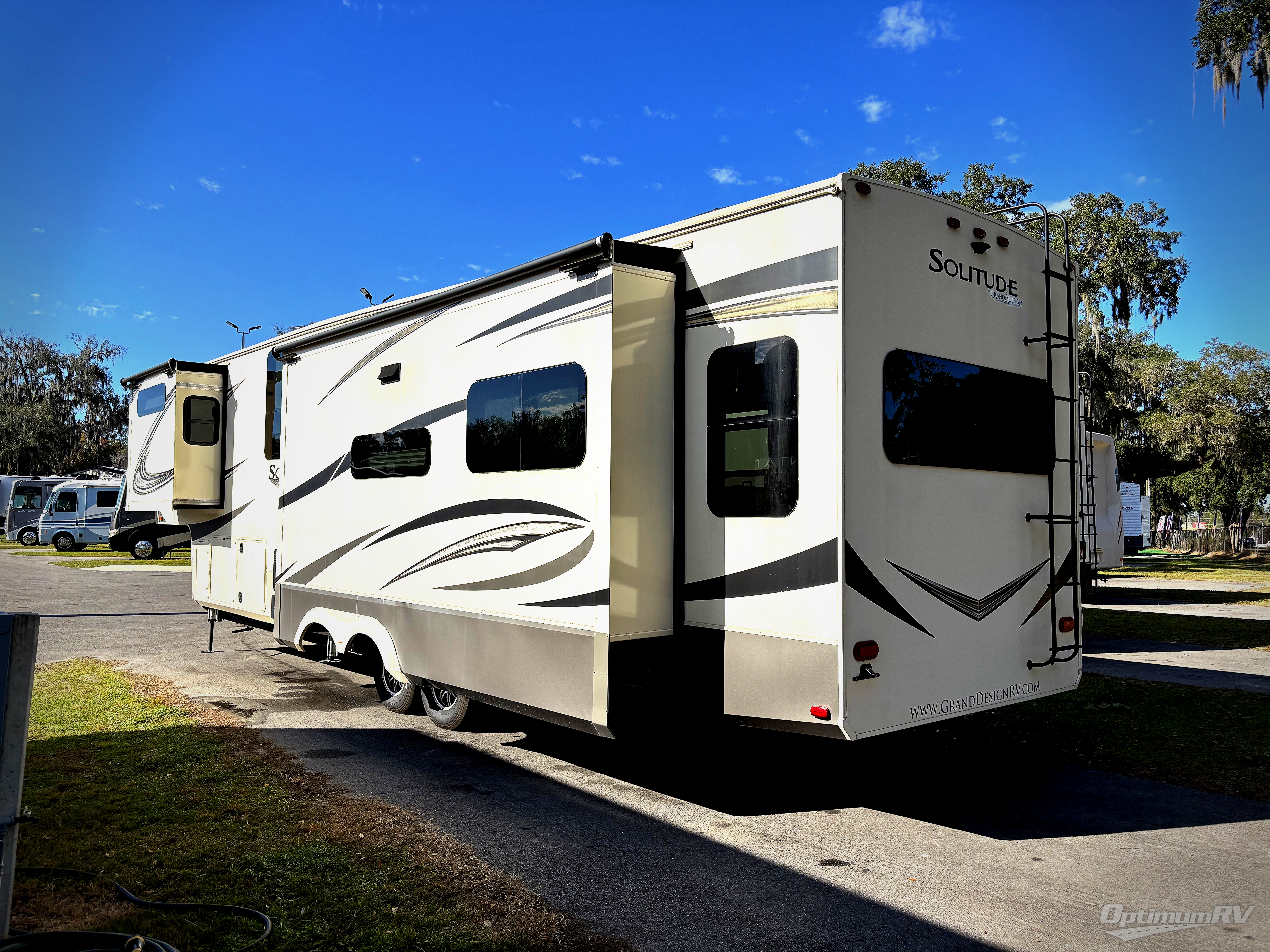 With each Solitude fifth wheel by Grand Design you will receive refined residential finishes, and affordable luxury for your extended stays or weekend get-a-ways. From the solid foundation on an exclusive superchassis and maximum insulation to the taller ceilings, taller and deeper cabinets, the power reclining theatre seating with removable swivel tables including a heat and massage function to the pet dish drawer, the Stealth AC system, and the Weather-Tek package allowing you to travel any season, you will enjoy everything about your Solitude. It's time to redefine luxury living where ever you decide to land.