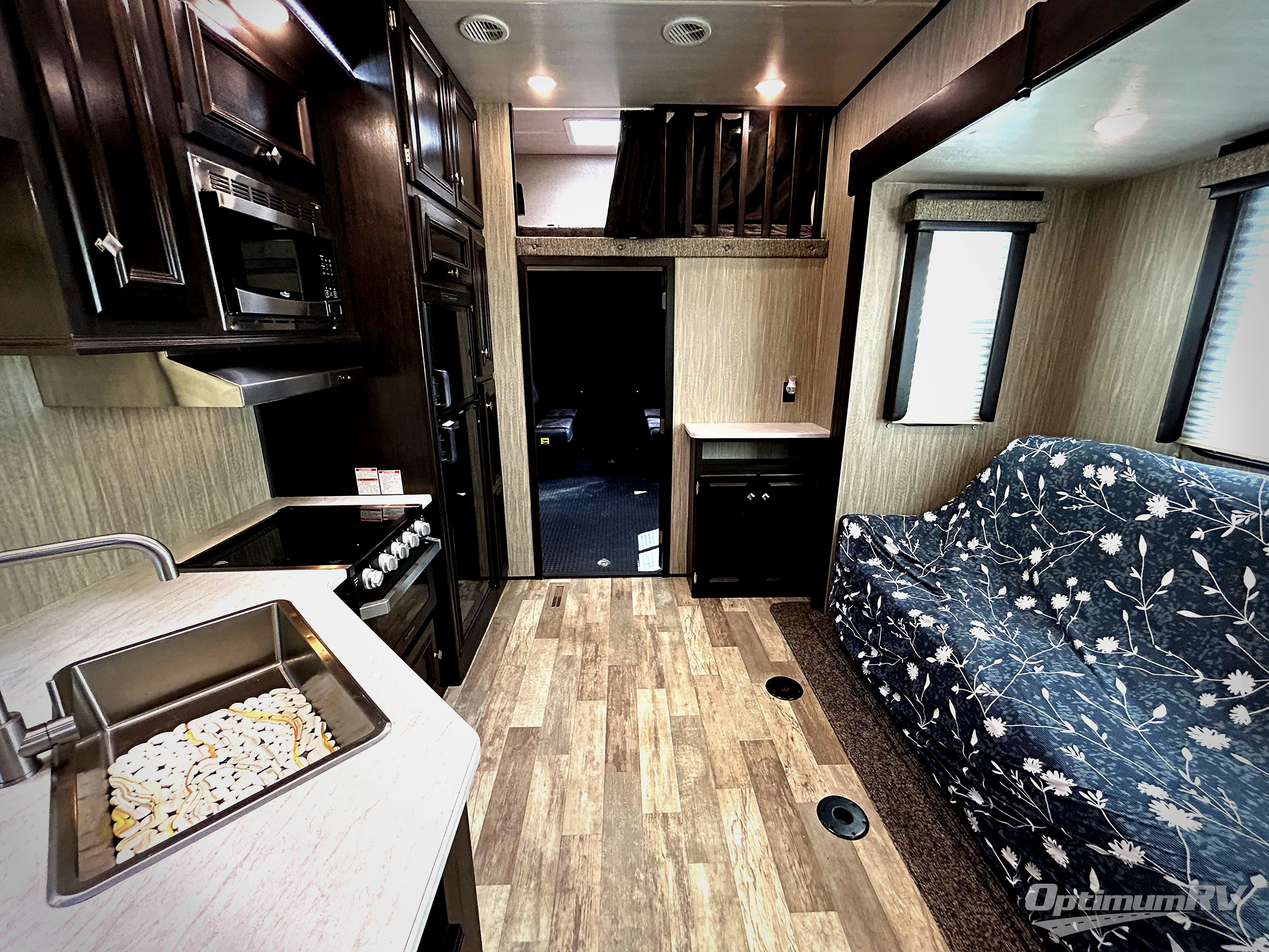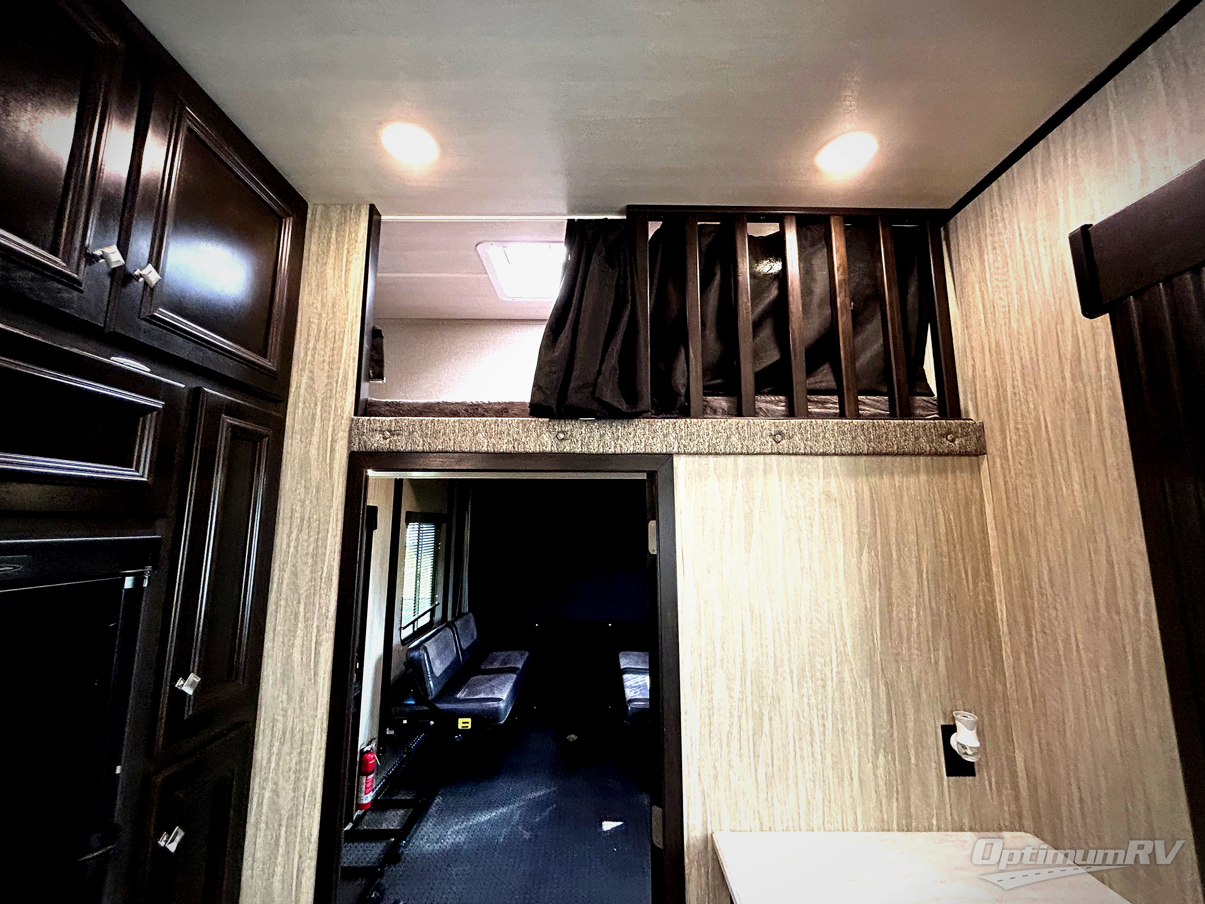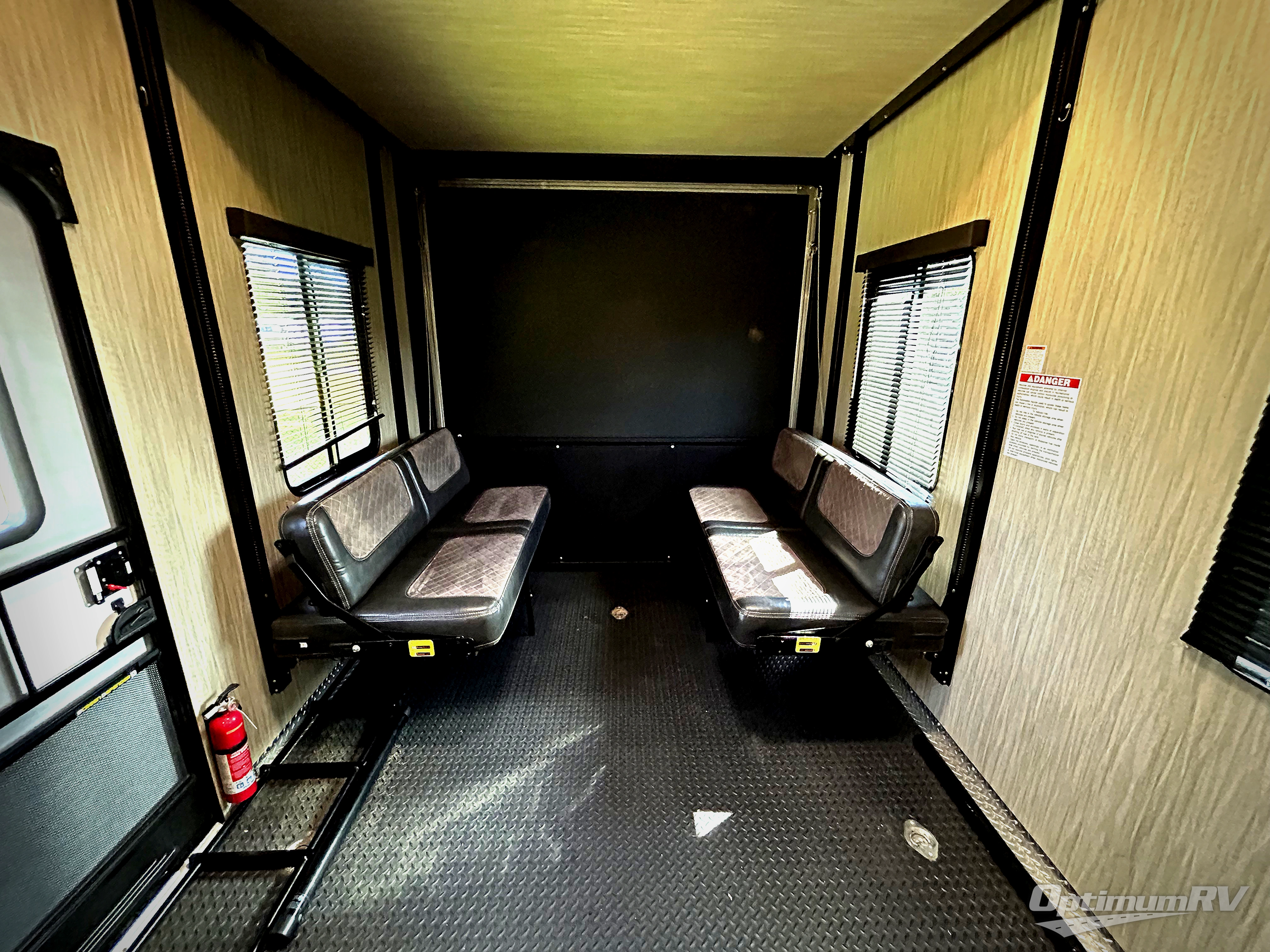 From its two slides to its two entry doors, this Fuel toy hauler is just too much to handle! You will love the fact that this model comes with a 13' separate garage making it easy to separate your toys from your living space, and when the toys have been removed, the garage easily turns into an additional hang out spot with an electric bunk, opposing sofas, and an overhead loft. You will also enjoy the extreme comfort that comes from staying in the private master suite, and with all of the various sleeping arrangements that have been included in this unit, there is enough room to sleep nine people during every getaway.