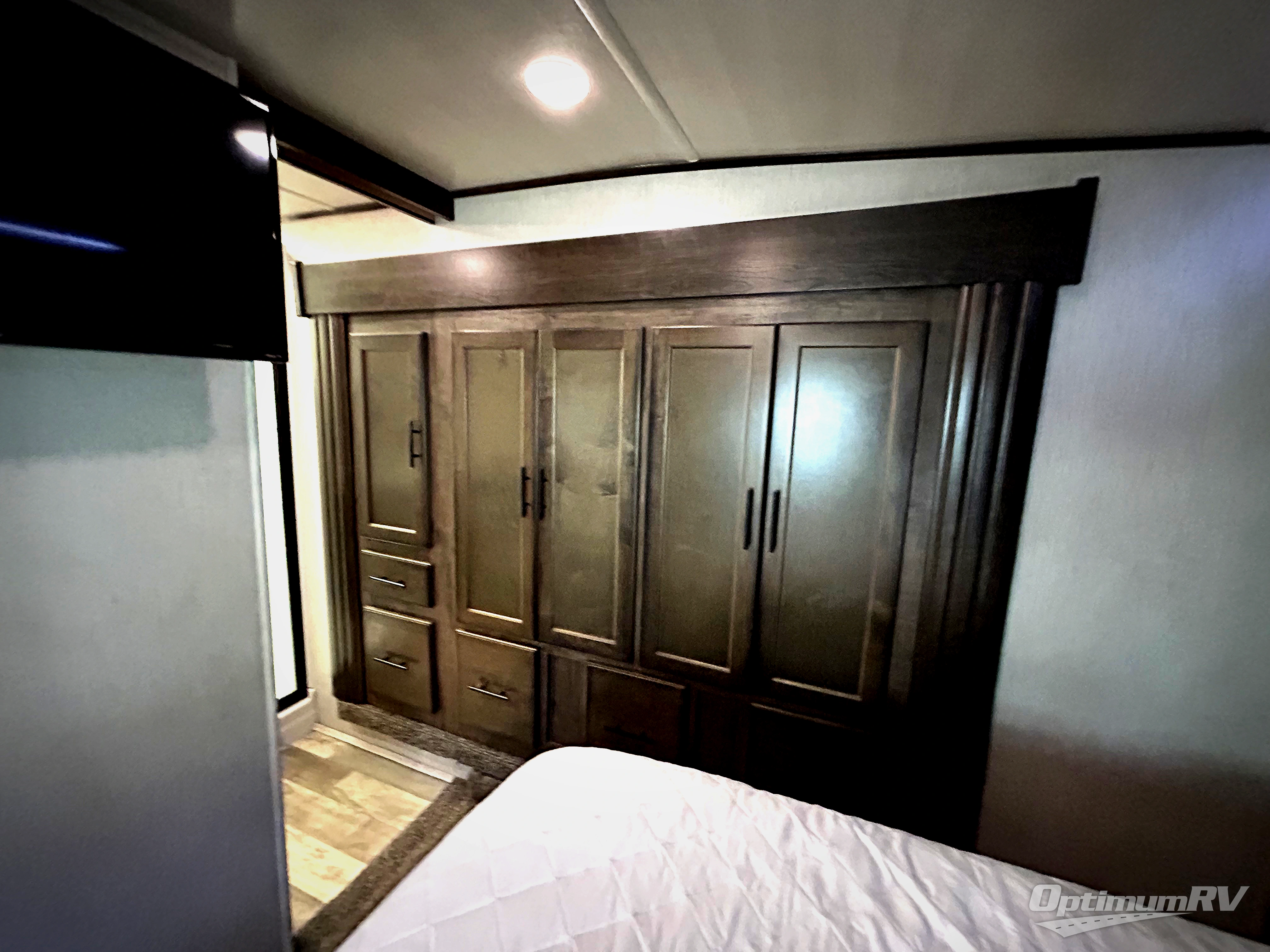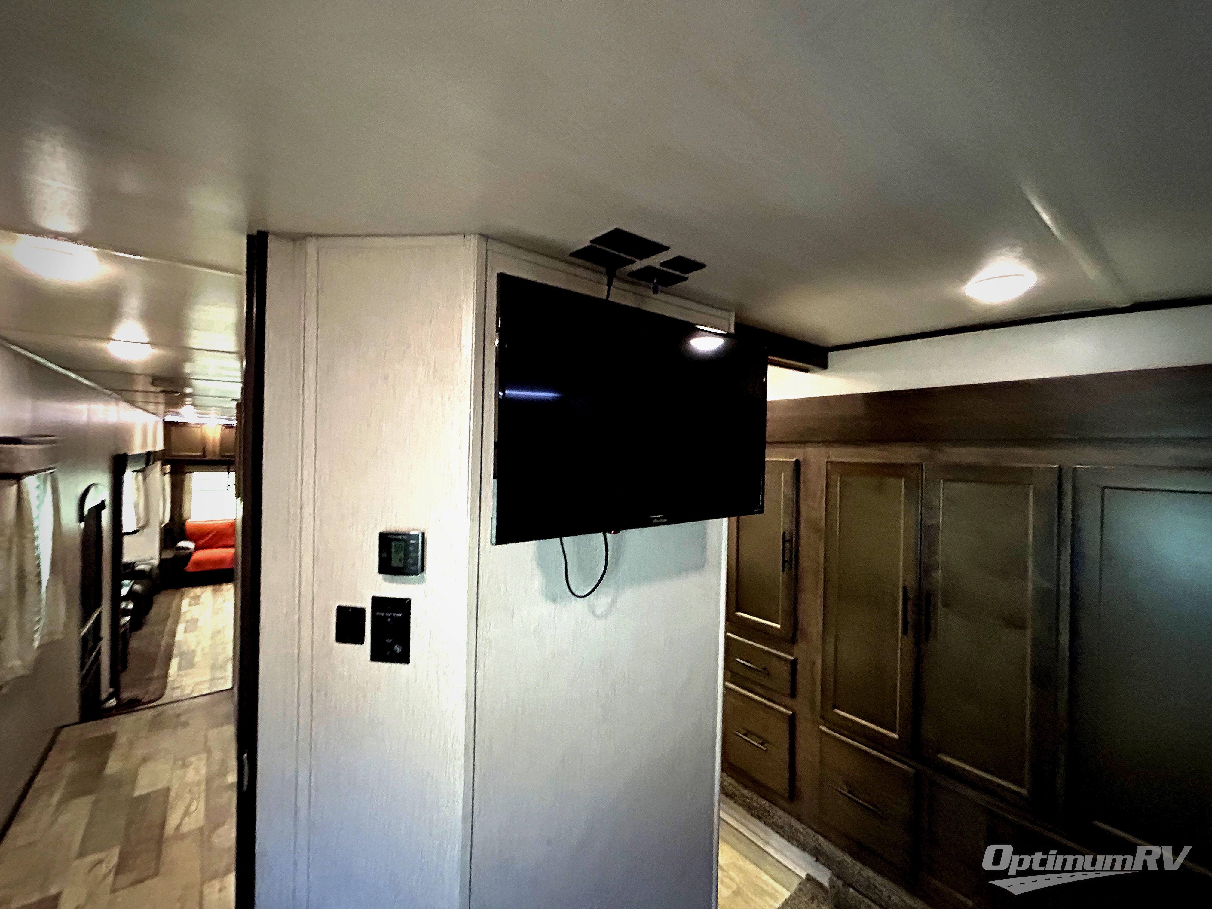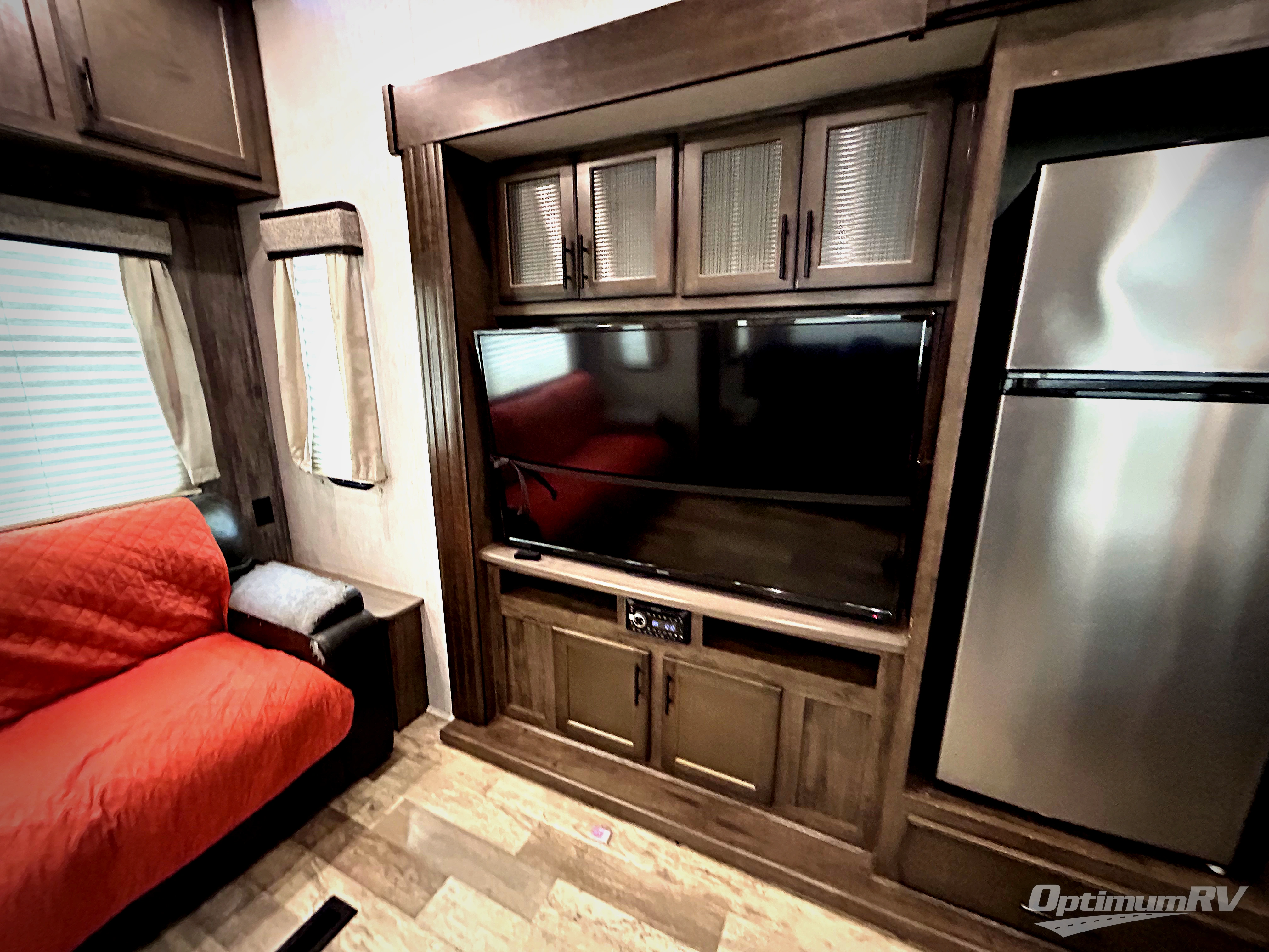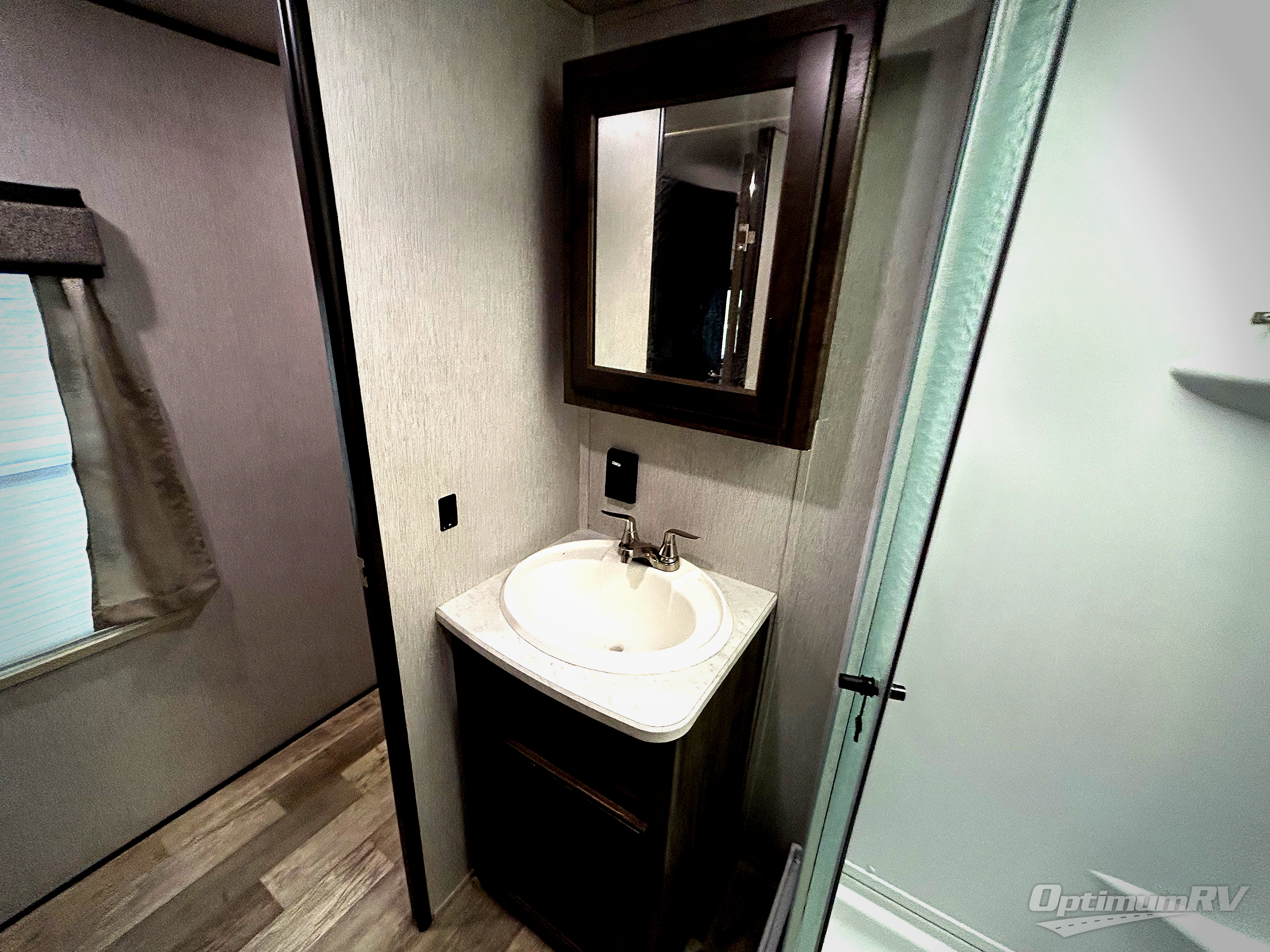 You won't believe how luxurious this Milestone fifth wheel is! Because this unit includes both a private master suite with its own entrance into the full bathroom and a private bunkhouse suite with its very own half bathroom, you have plenty of comfortable sleeping space for eight people, and the overhead loft is where your kids will beg to spend their afternoons as they build forts and play together. The rear living area is also extremely appealing for its relaxing theater seats and free-standing table with chairs.