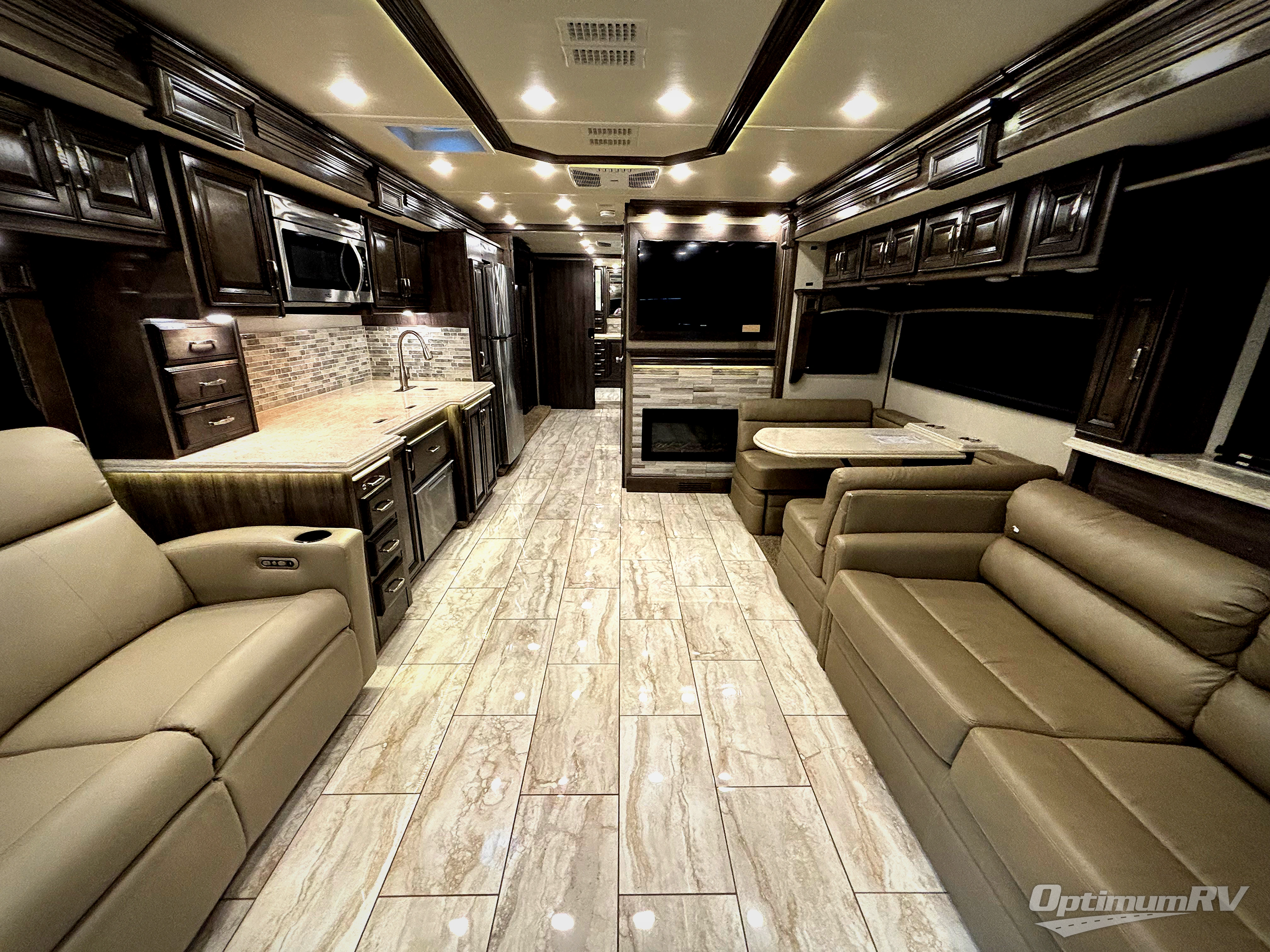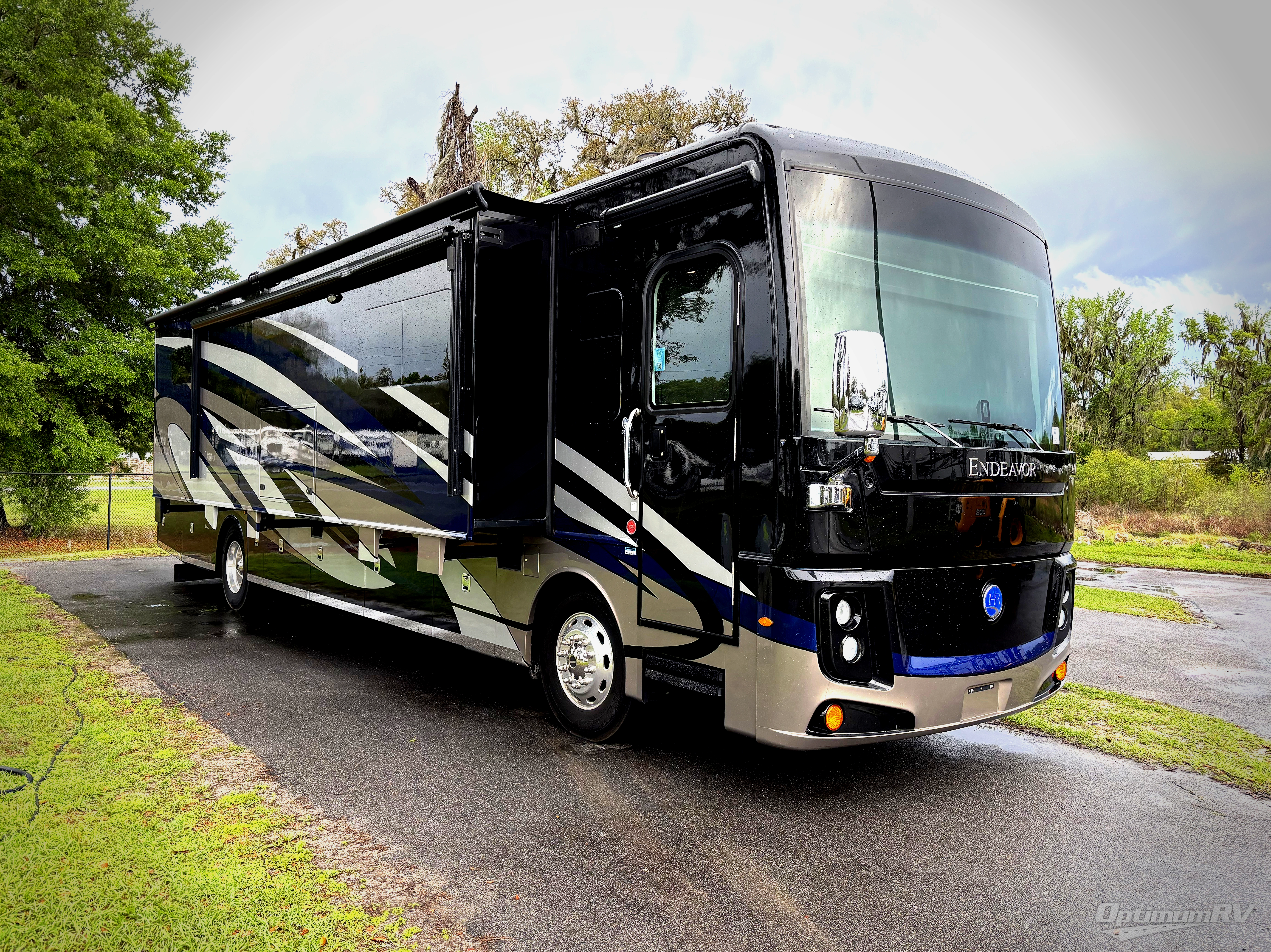 Don't settle for mediocre when you can have this extravagant and impressive Endeavor Class A diesel motorhome! The large rear bathroom with its dual-sink vanity will be a luxurious way to begin each morning after spending a night resting on the king-size bed in the private master suite, and your guests will find it helpful to have their own half bathroom to get ready in after spending a night on the booth dinette or one of the two sofas. You might also wish to add the optional free standing dinette with credenza, or comfortable theater seating in place of the booth dinette and one of the sofas if you like. You will easily be able to whip up a hearty breakfast to feed everyone with the induction cooktop in the kitchen, and the pull-out countertop will come in handy when you need additional space to prepare meals or clean up afterwards.