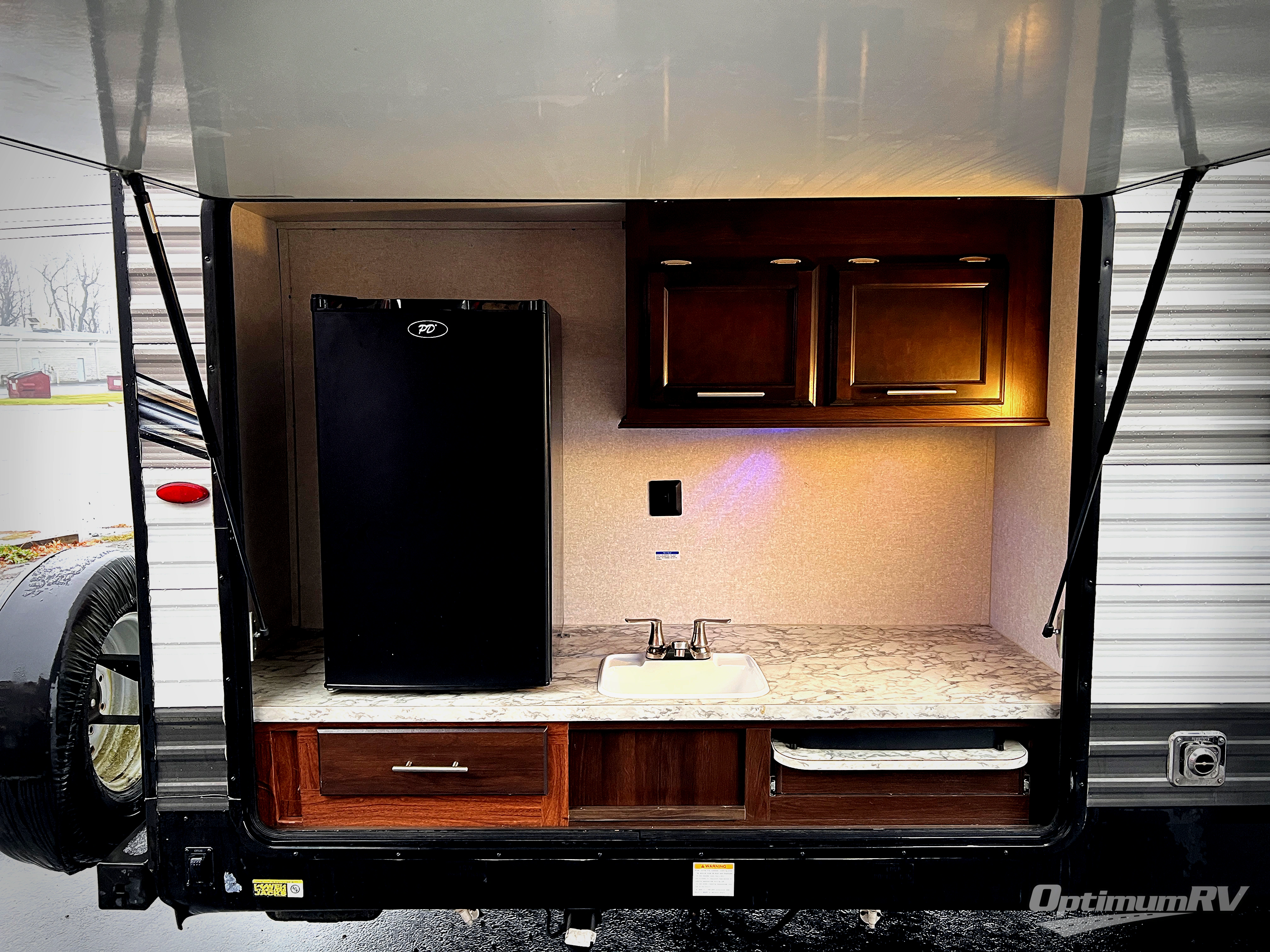 Imagine your kids and their friends in the private rear bunkhouse after riding their bikes all day. You can also imagine them laughing and talking about everything that happened. Then picture yourself relaxing in the living area in this travel trailer. The cook in the family can make meals for everyone either indoors, or outdoors on the outside kitchen, the choice is theirs. The kitchen island provides more counter space for serving meals, and cleaning the dishes. You will find storage throughout the inside as well as outside, load up your gear today!