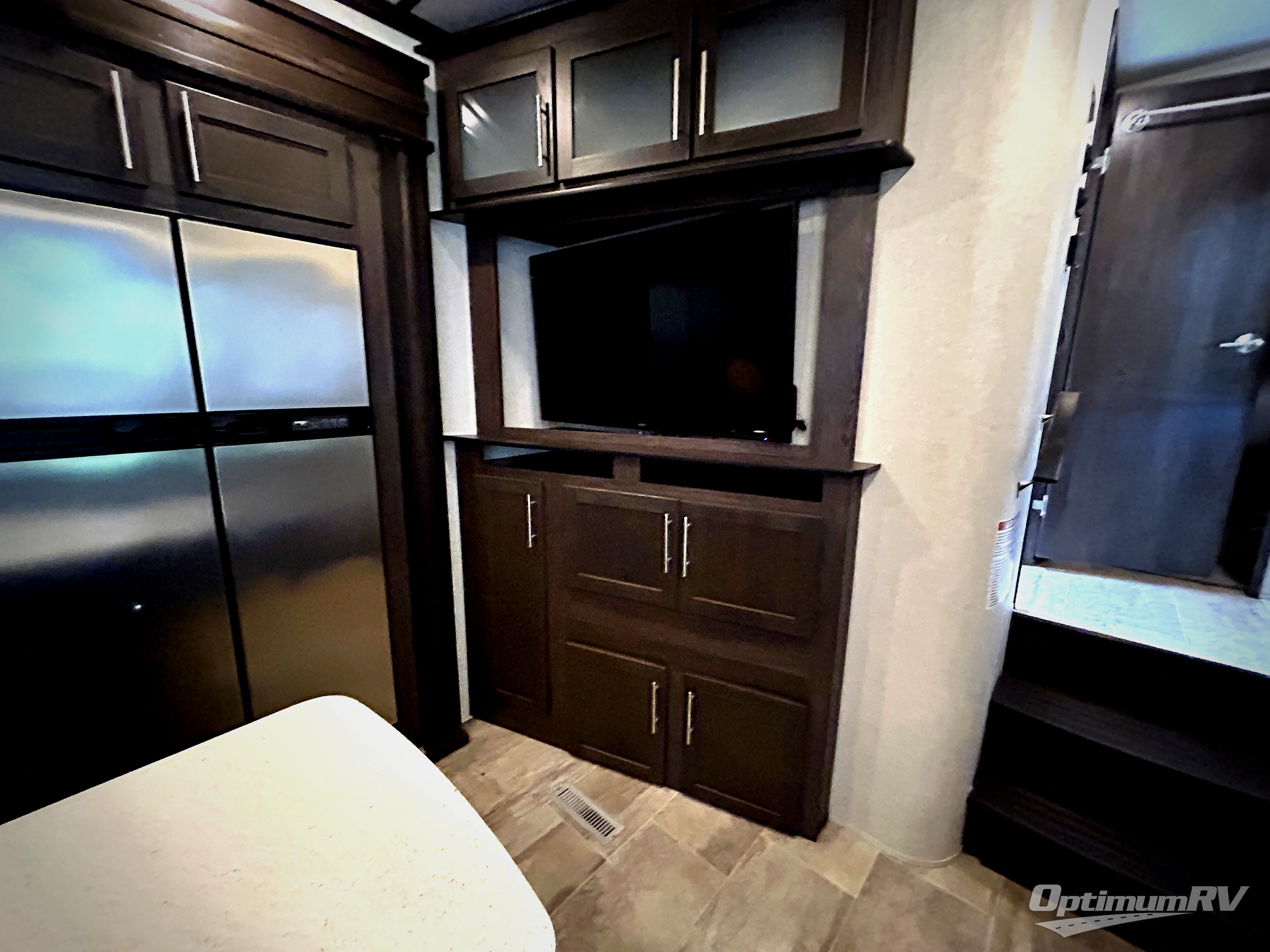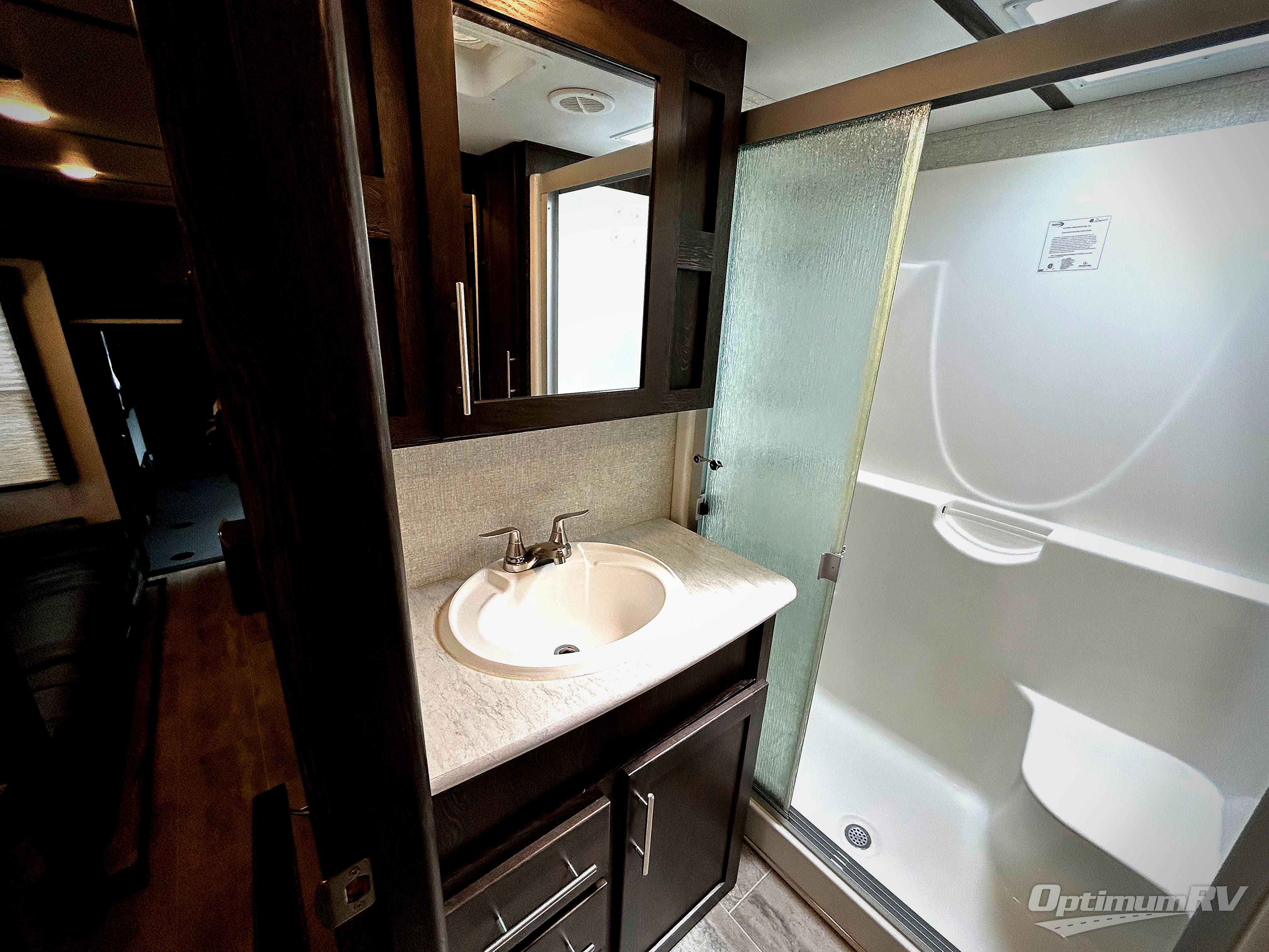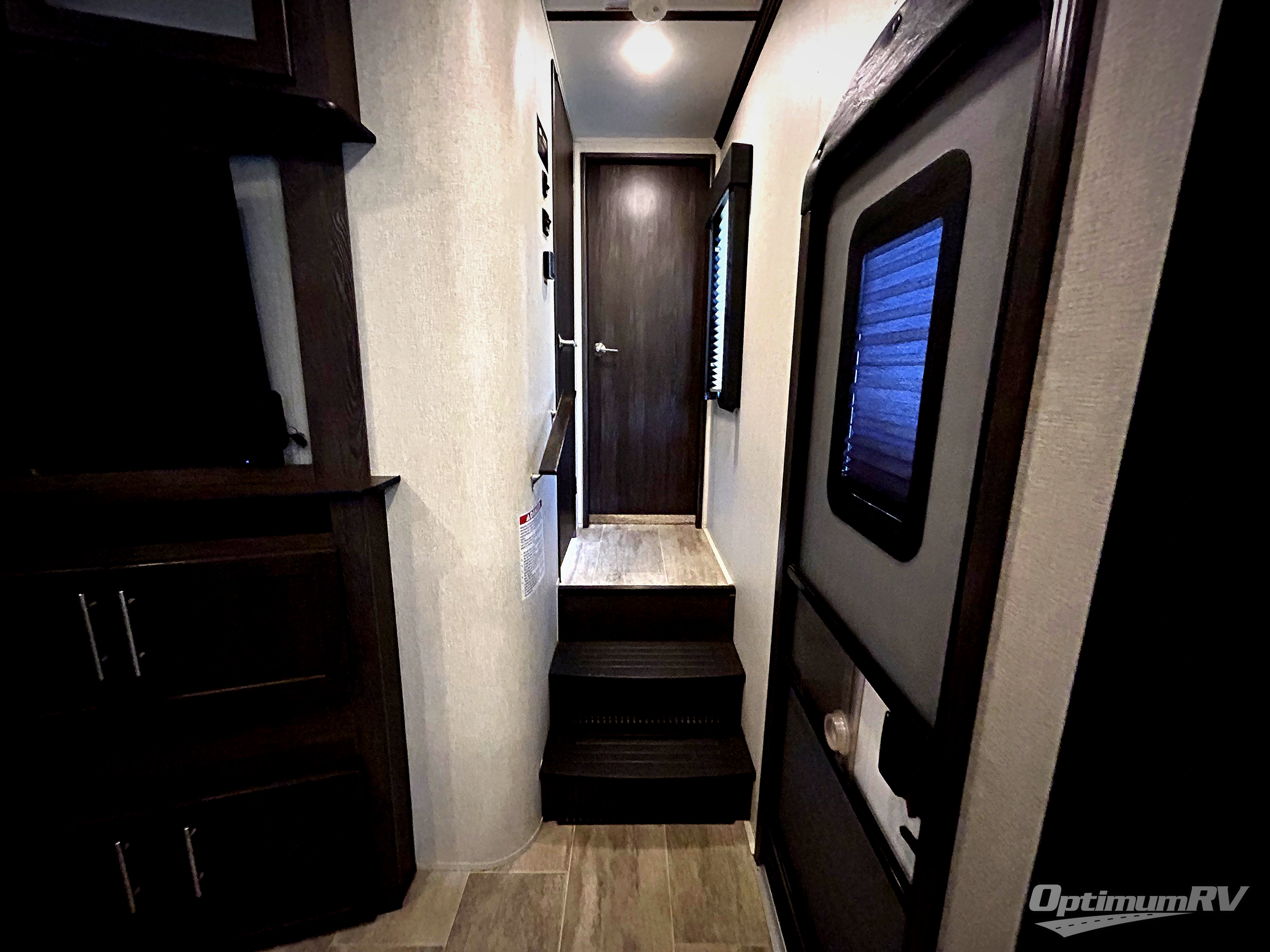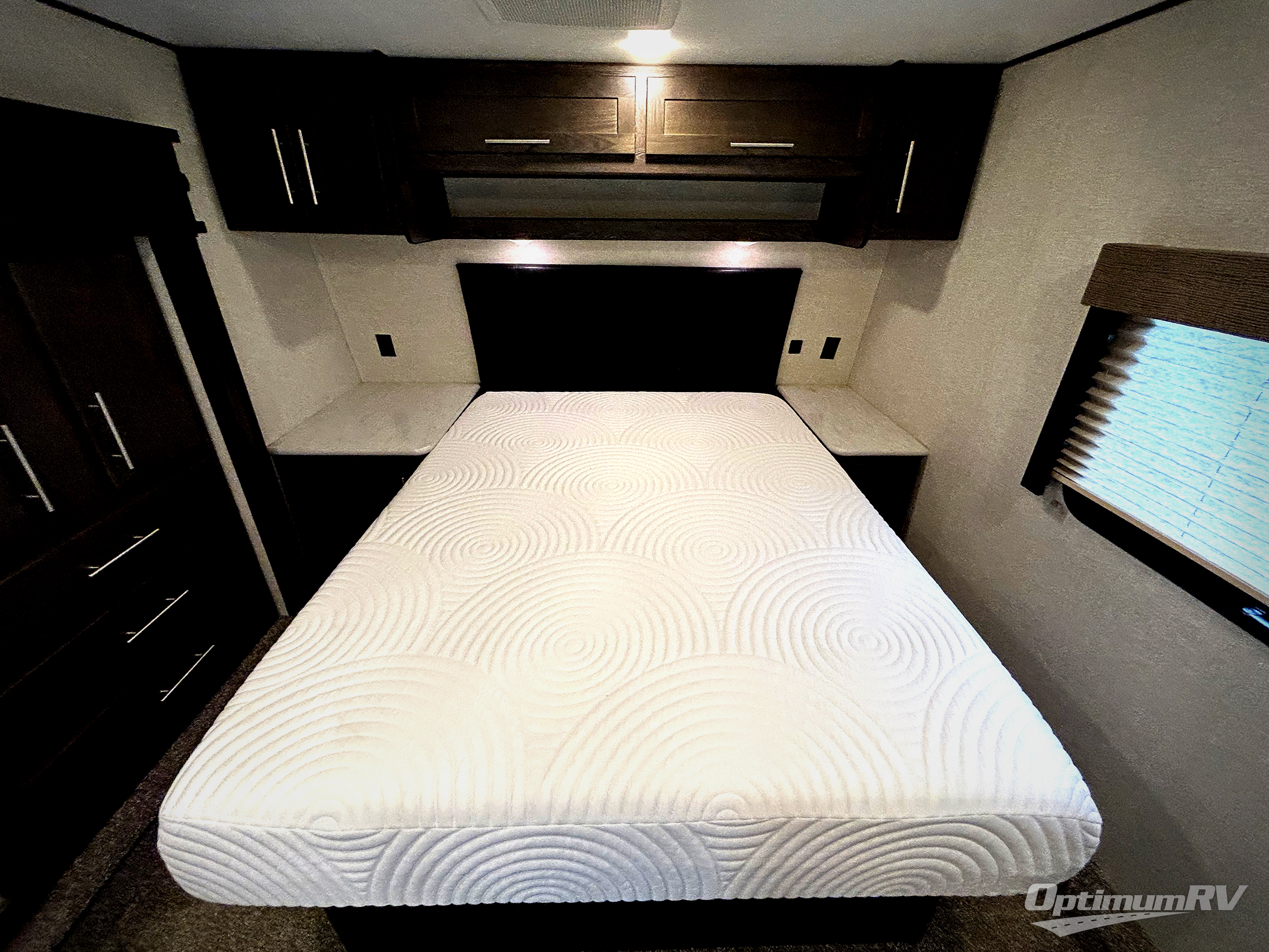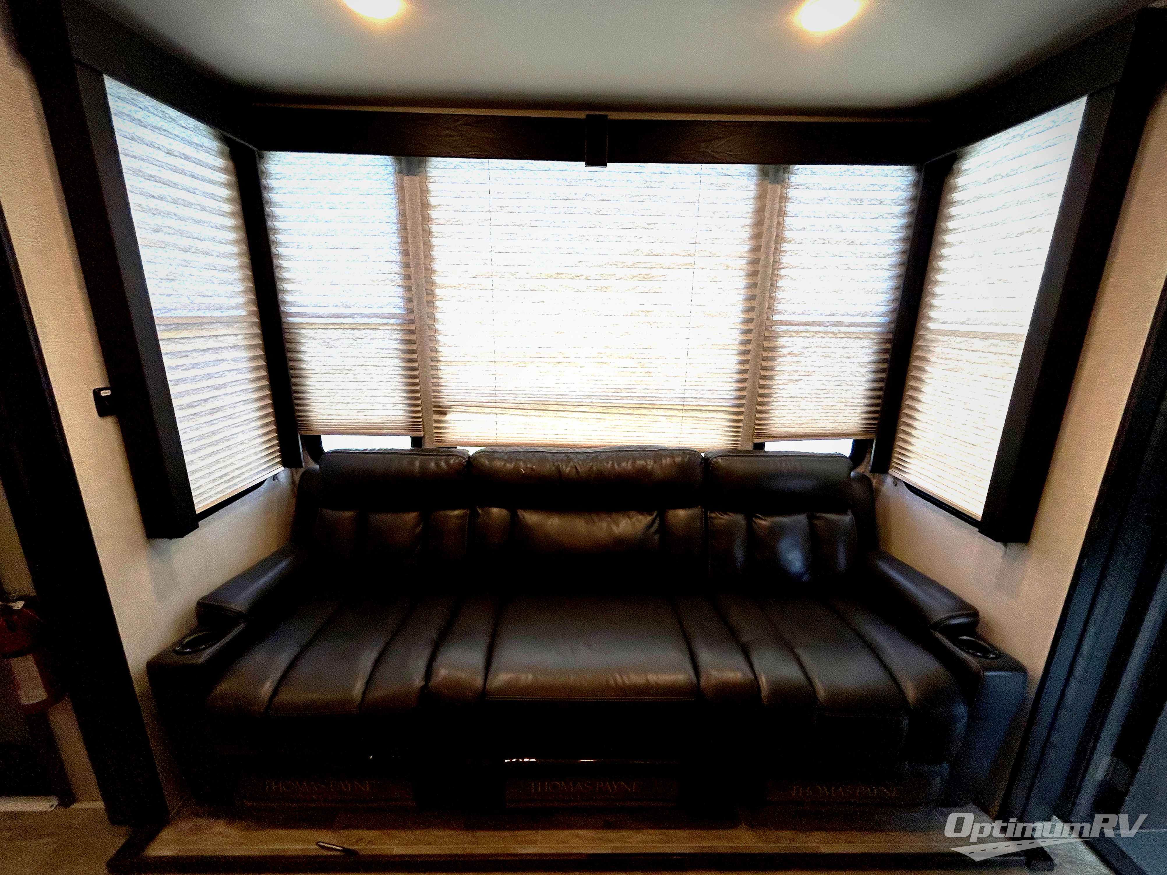 You'll love this fifth wheel with many comfortable features. There is a convenient bath and a half, one being in the kids or guest area, so you don't have people trampling through the unit, especially at night. In the living area, there are opposing slide outs which really opens up the floorplan giving you extra space. This unit features a counter peninsula with two sinks for easy clean-up. The garage area has a loft with a twin bed, and there is an electric bed plus dual opposing sofas for extra sleeping space. This space is perfect for the kids! During the day they can use it for a playroom and then at night there is sleeping space for up to five! Mom and dad will love having their own space up front and a private entry into the bathroom for convenience.