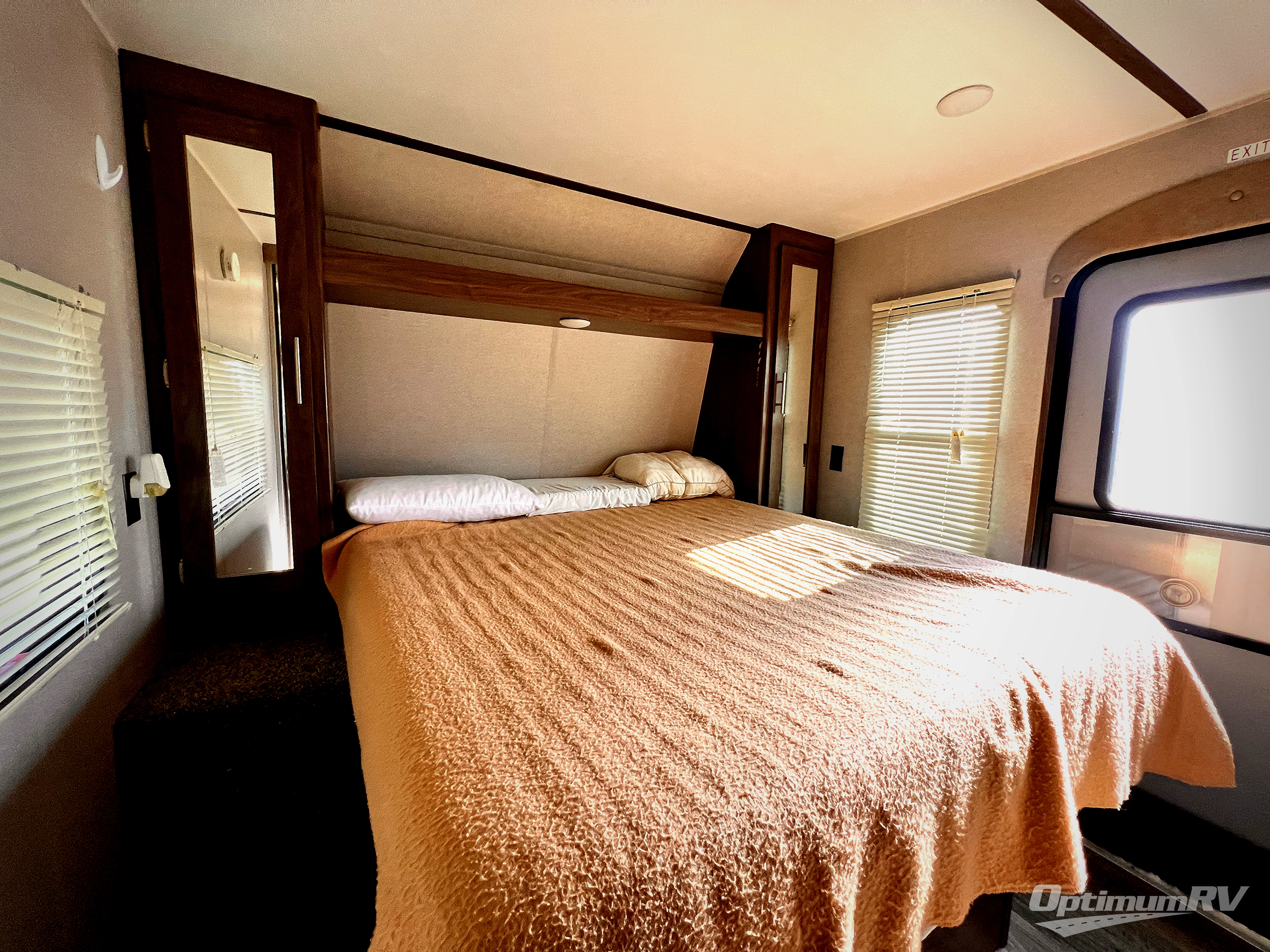 For any trip, whether near or far, you will want a Hideout fifth wheel, travel trailer, or destination trailer by Keystone RV. These models are lightweight which makes them easy to hook up and tow. Just load up your belongings and head out for a weekend away in your own Hideout retreat. A few key features inside of each model include: pleated shades in the living area, a high-rise faucet in the kitchen, and full-strutted storage under the master bed, and the exterior is just as indulgent with its powder-coated I-beam frame, exterior speakers, black radius window frames, hurricane straps reinforced structure, and exterior shower. Don't wait any longer to enjoy your own private hideout with the Keystone Hideout!