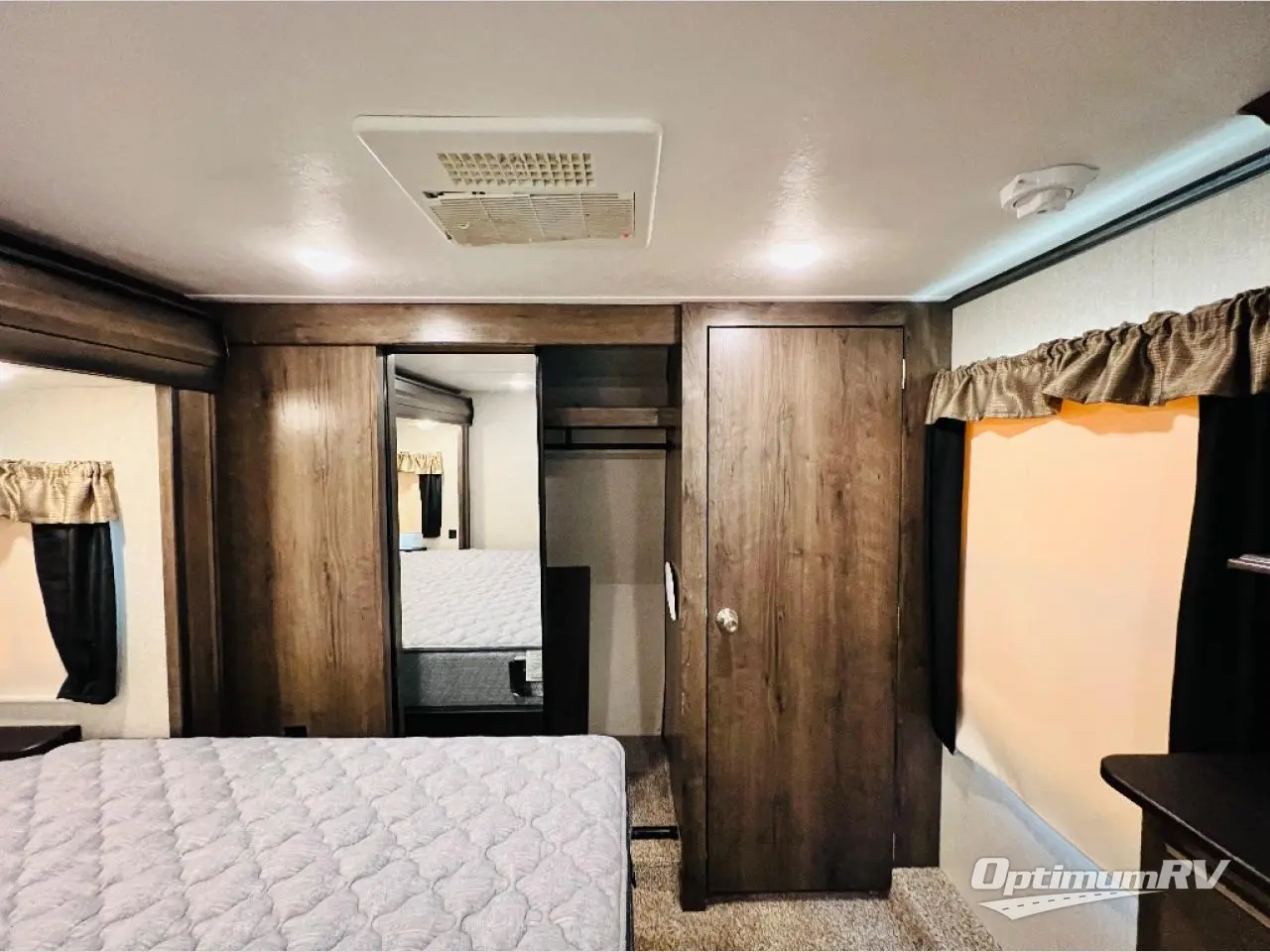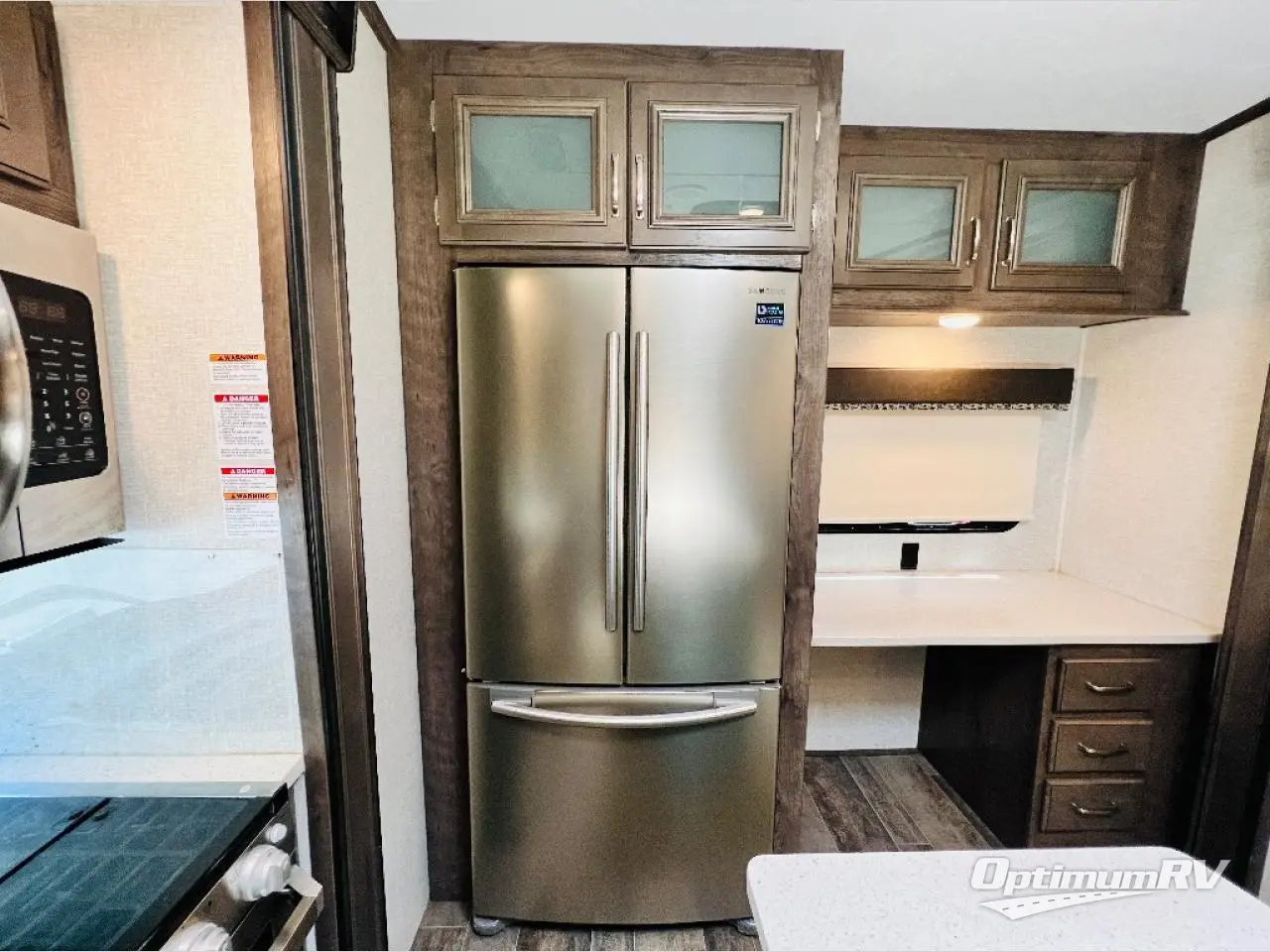 This Montana High Country is the perfect full time fifth wheel for couples that love to travel. The rear kitchen layout offers a 18 cu. ft. residential refrigerator and a residential microwave oven for all of your cooking needs. There is even a built-in desk for those who need to do a little work while away, or for those lucky telecommuting workers who can work from just about anywhere! For inside entertainment, you will enjoy the power theater seating with a USB port opposite a cozy fireplace and telescoping HDTV. There is also a hide-a-bed sofa for more seating or sleeping space for guests who wish to stay for the night. A private front bedroom gives you a little space away from the main living area to retreat to when it is time for bed, and you will love the dual vanity sinks in the bathroom, as well as all of the storage space both inside and out!