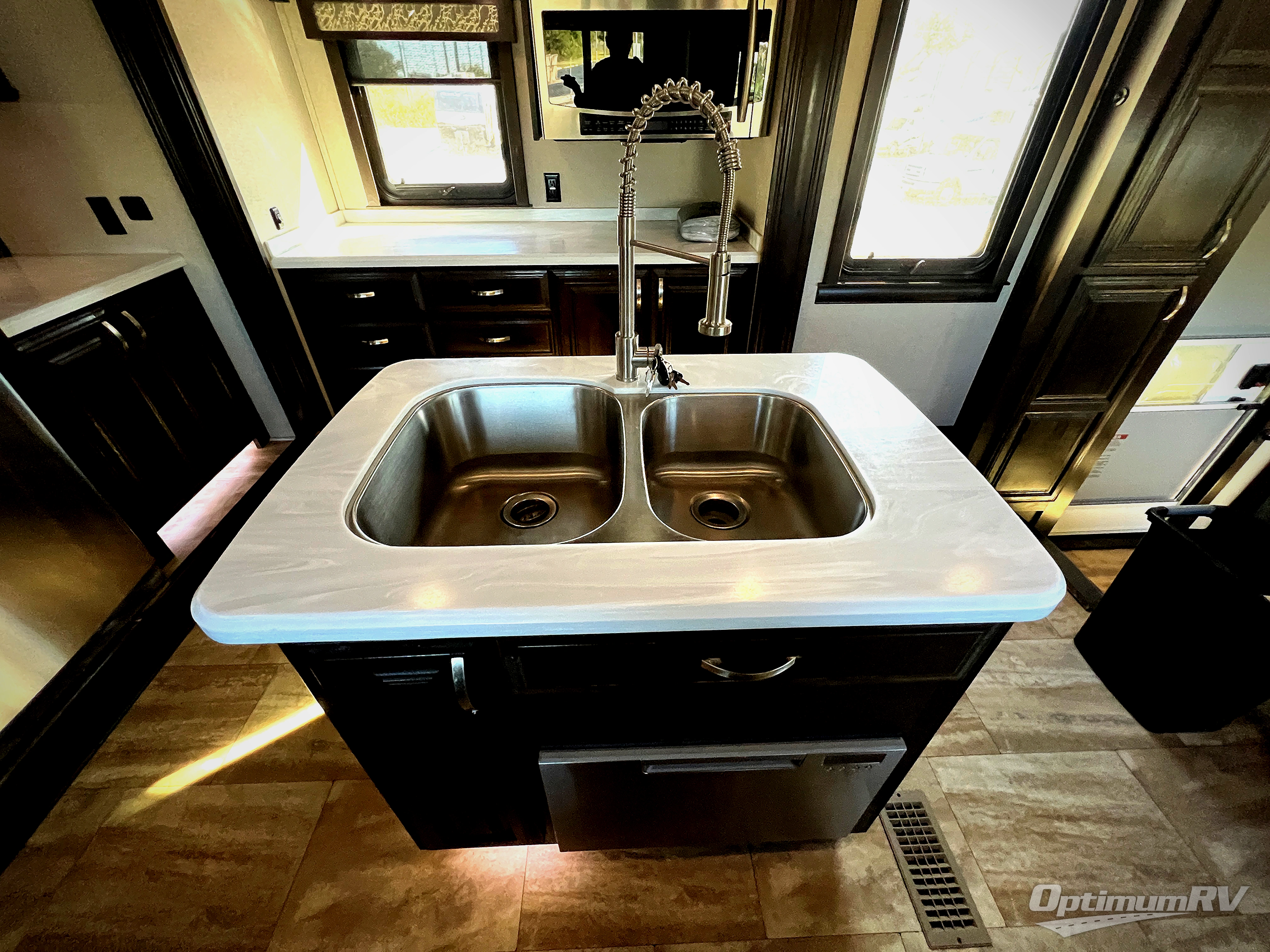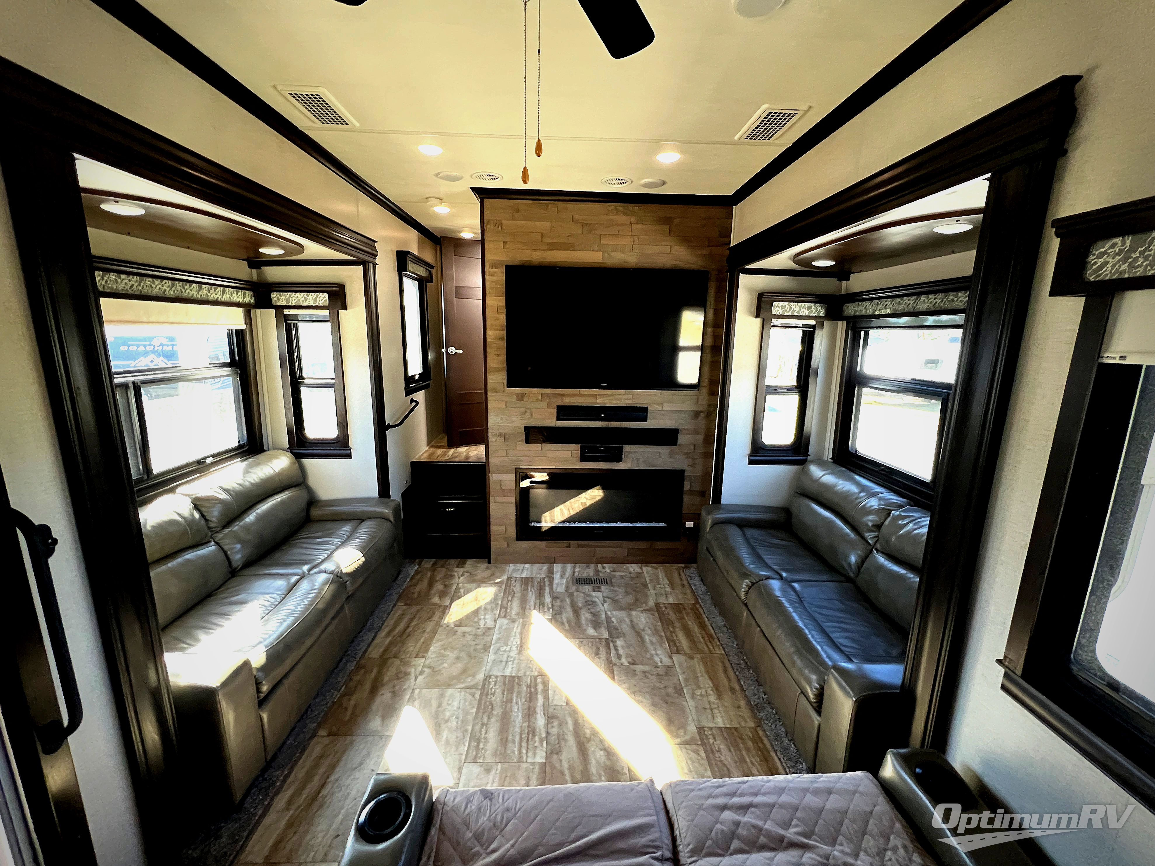 This RiverStone 39FKTH toy hauler fifth wheel gives you all of the at-home comforts plus the convenience of bringing along a few dirt bikes or a four wheeler. Whether you are traveling near or far you can easily load an unload your big toys with the zero gravity ramp door. After you are done playing outside for the day then come relax in the living area where you will find two hide-a-bed sofas and a set of theater seats. You can warm up at the fireplace or enjoy watching a movie or show at the 60" LED Smart TV with a premium soundbar and DVD player/stereo. In the front kitchen you will find plenty of counter space for meal prep as well as an island with a double sink and a dishwasher for cleanup to be a breeze!