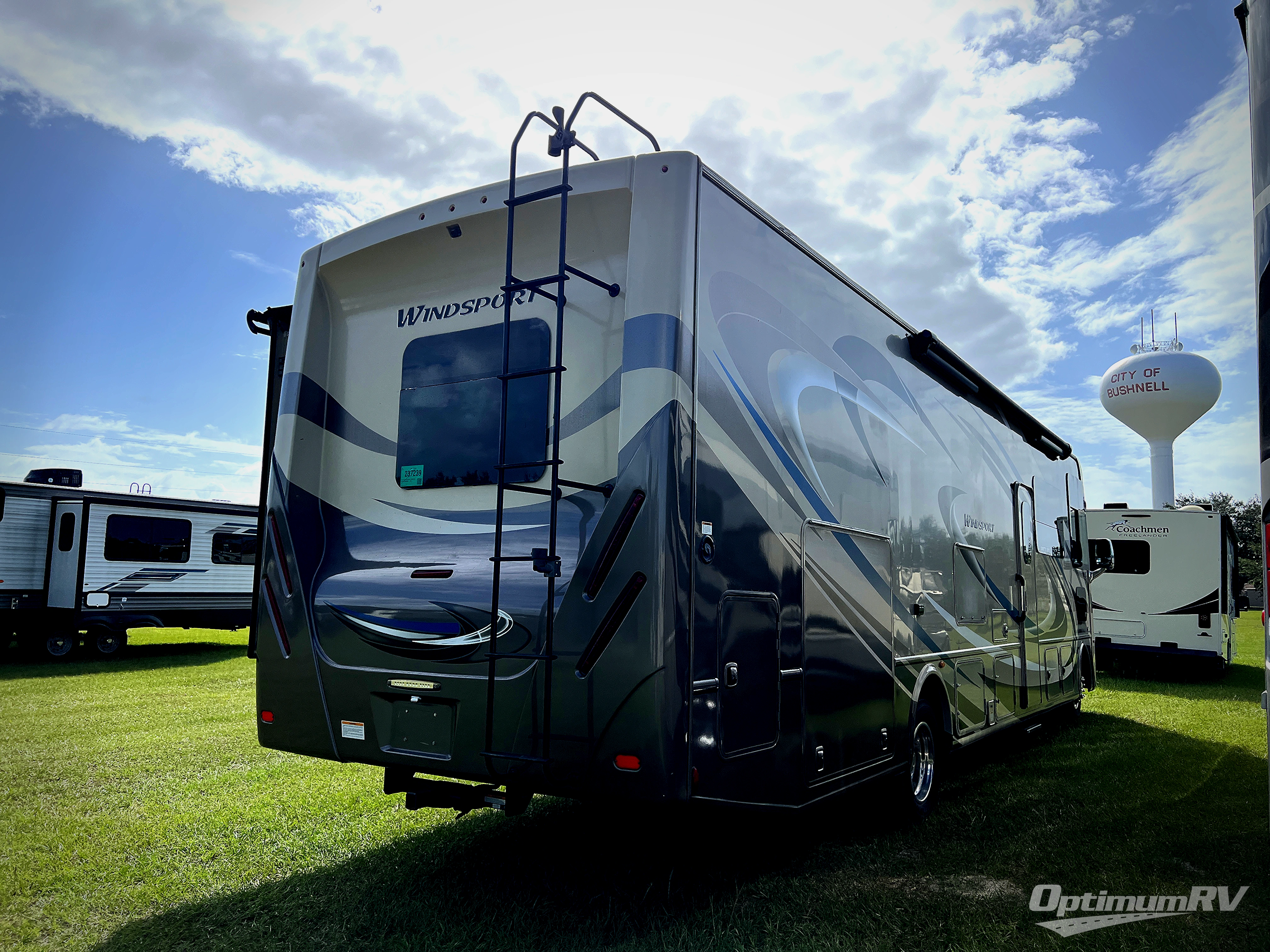 Traveling just got a lot more comfortable when you step inside this Windsport class A gasoline coach. This model features a spacious interior thanks to a full wall slide, and the kids are much happier knowing they have their own space. Starting with the swivel captain's chairs for mom and dad, a sofa bed and Dream Dinette for the kids, and a total of seven seat belts, everyone can ride in safety and comfort. The full kitchen and complete bath make your journey that much more enjoyable allowing you to stop where ever you like. The bunk beds with two TV's give the kids some privacy, and there are two more TV's for family movie night. The exterior 32" LED TV and 18' awning with LED lighting provide an entertaining space outdoors along with an exterior kitchen. Choose this model today, you will not regret it!