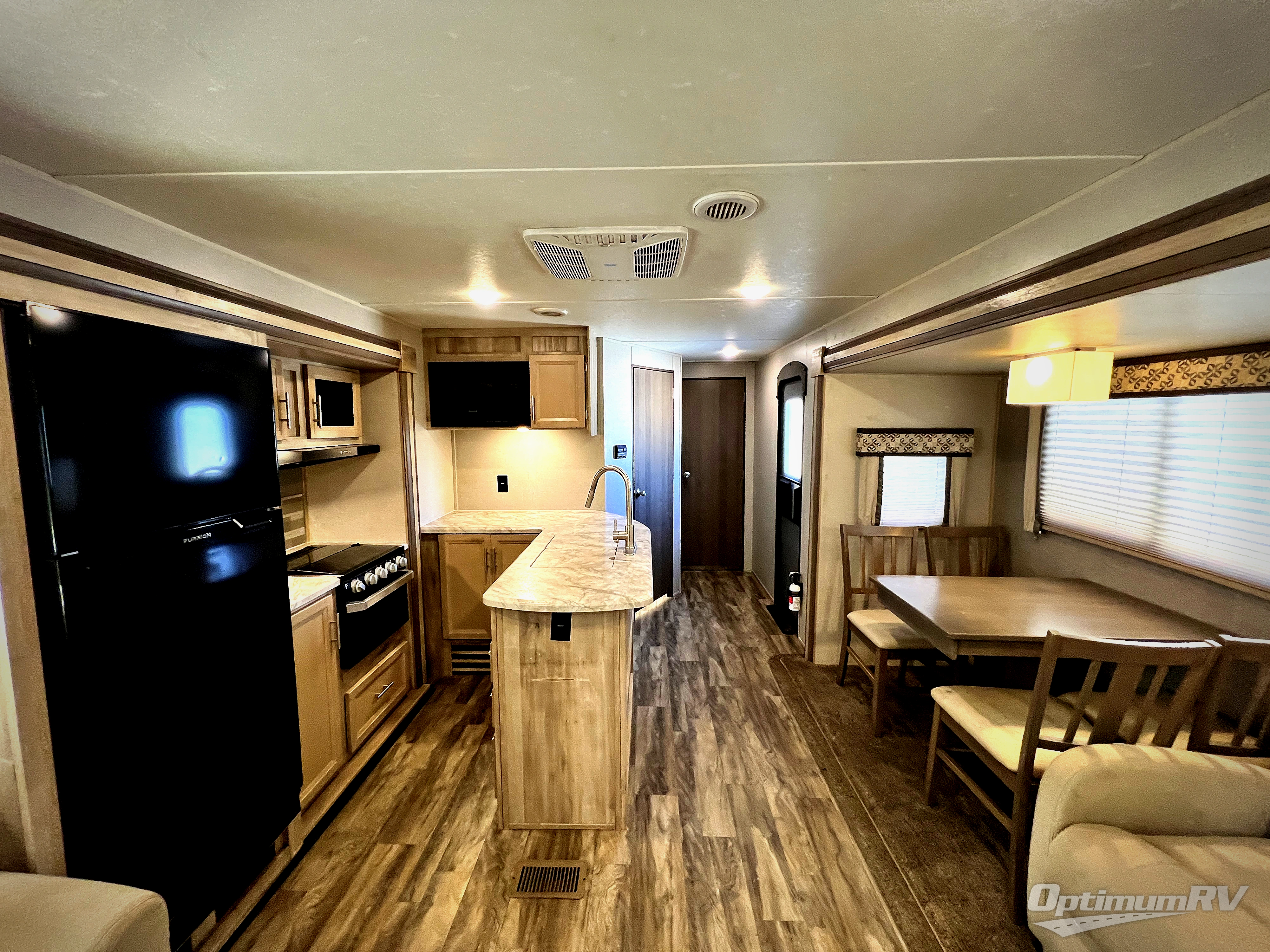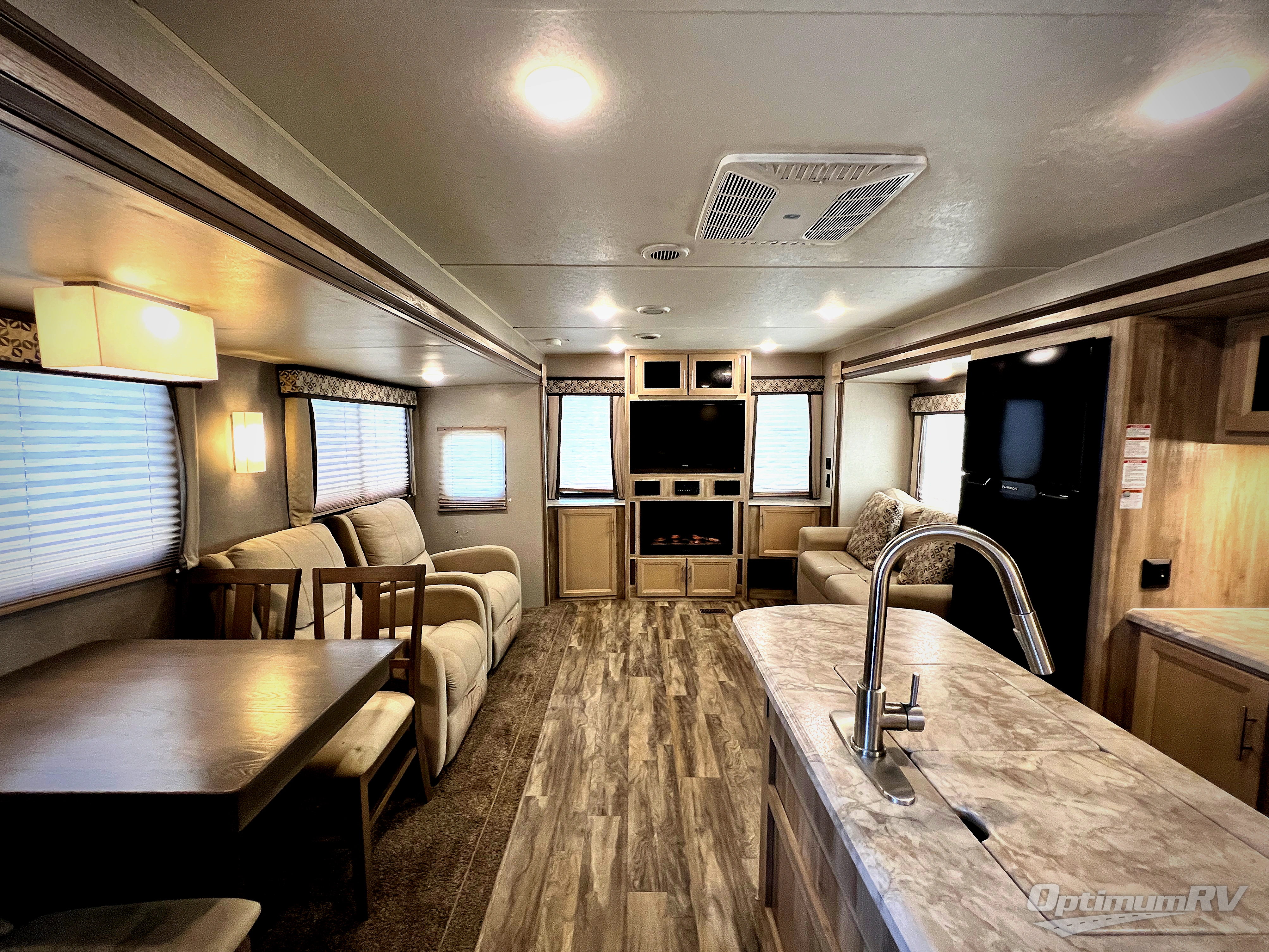 Three slides open up the interior of this Catalina Legacy Edition travel trailer and allow you to enjoy your time inside! The lounge recliners are a great spot to sit down and unwind after a long day, and you can switch on the 32" flat screen TV while you relax. You can choose to add the optional fireplace to make it even cozier too. An RV queen bed slide in the front master suite with a front closet that is prepped for you to add the optional washer and dryer so that you can enjoy clean clothes throughout your entire trip.