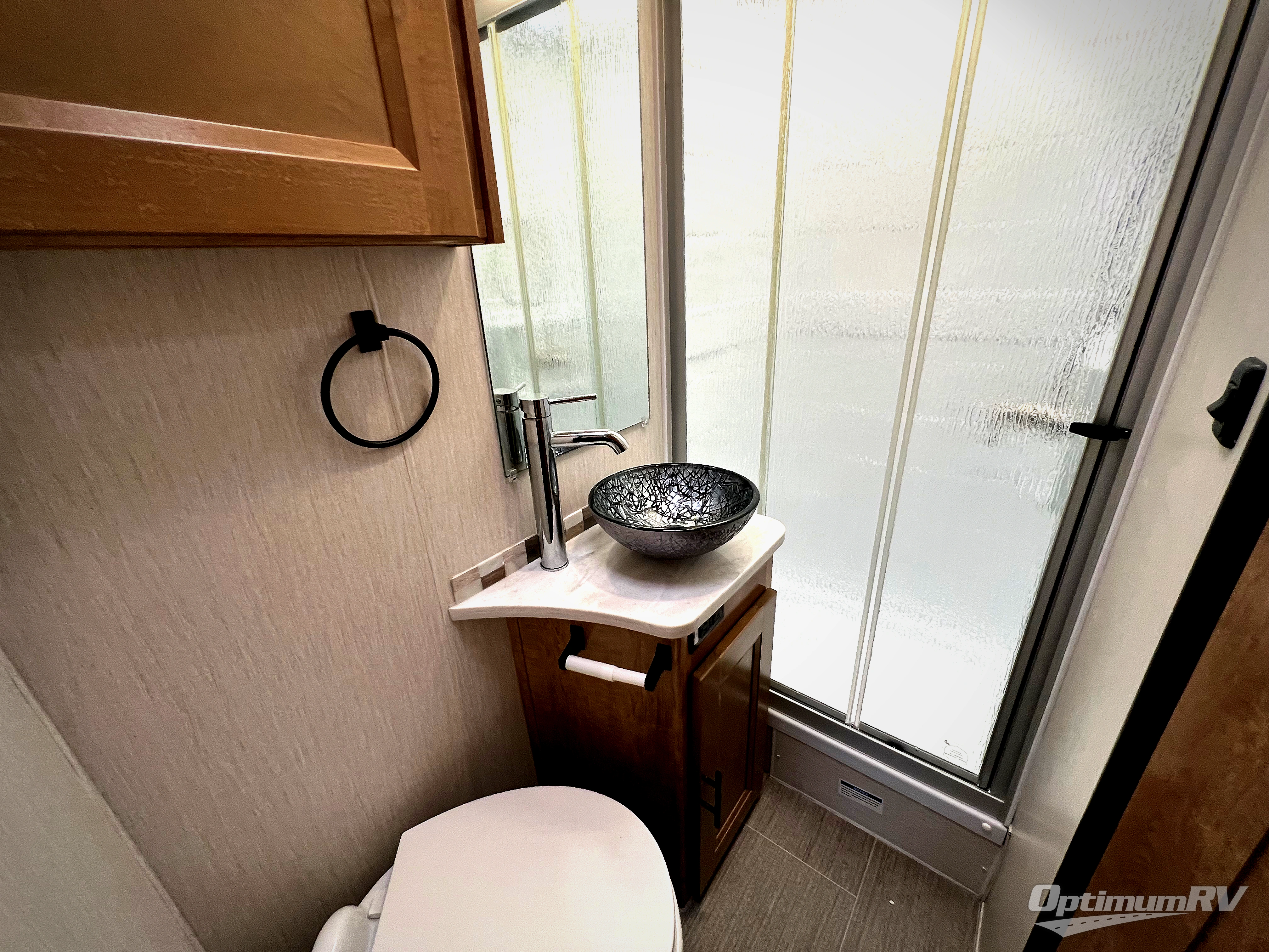 Do you dream about traveling to far destinations and enjoy attending events with the comforts of your own accommodations? Just envision drinking your coffee while sitting in the driver and passenger seat with a pedestal table between while planning your day. You can also rest on the queen bed while the kids or your guests sleep on the cab-over bunk and U-shaped dinette. Everyone will appreciate the convenience of a private bathroom no matter where you travel. And the cook will surely love heating up leftovers in the convection microwave for quick meals when on the go. Come see why this RV just makes sense!