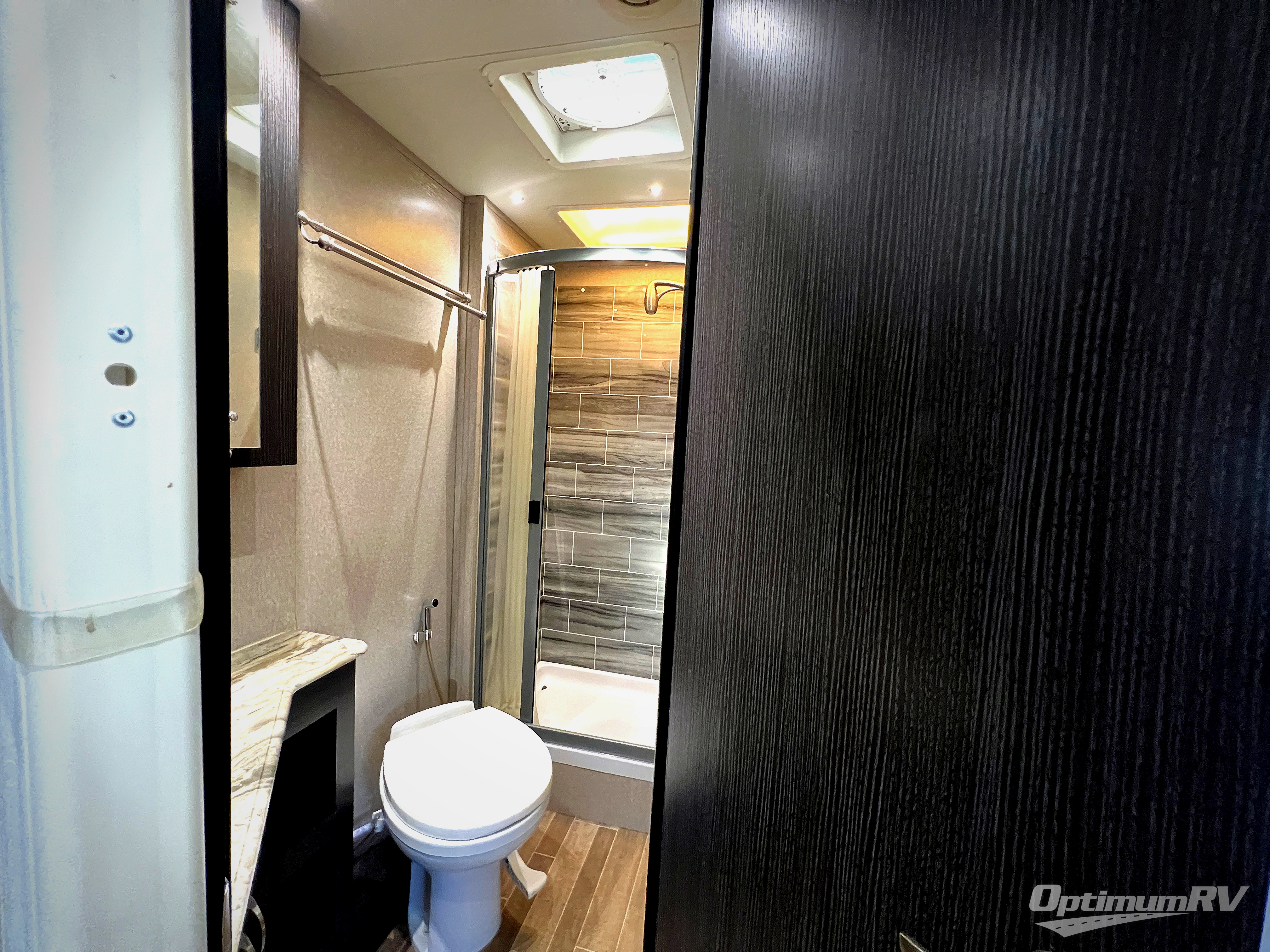 This 24FW Class C diesel motorhome gives you the luxuries of home while traveling on the road! The full wall slide out helps to really open up the interior when you are parked. When you aren't enjoying a meal or playing a card game at the booth dinette, you can head to the rear and relax on the gel-infused memory foam queen-size bed while you watch your favorite movie on the 32" LED TV. You won't have to leave anything behind either thanks to the exterior storage area, the underbed storage, and the overhead cabinets throughout the inside. You're going to love getting clean in the rear corner bathroom with the Oxygenics body spa RV shower head and the residential vanity with a stainless steel sink provides the perfect spot for you to get ready!