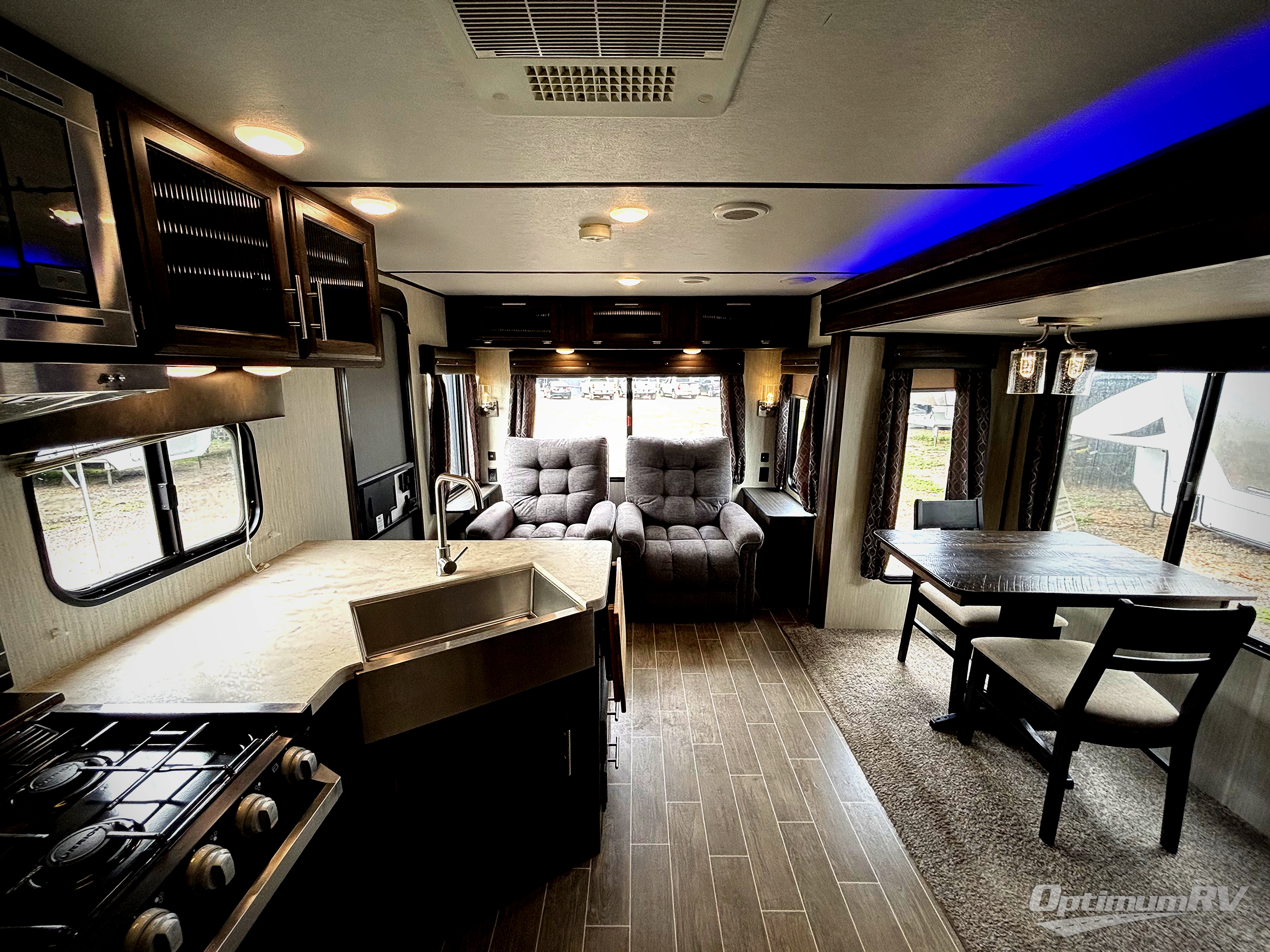 You will love this Cherokee Alpha Wolf travel trailer for so many different reasons! The front private bedroom will deliver complete seclusion as you sleep each night on the queen-size bed that has storage space underneath, and because the bedroom is directly adjacent to the large walk-through bath, you will find it easy to clean up each morning in the radius shower before heading to the full kitchen for a hearty breakfast and cup of coffee.
