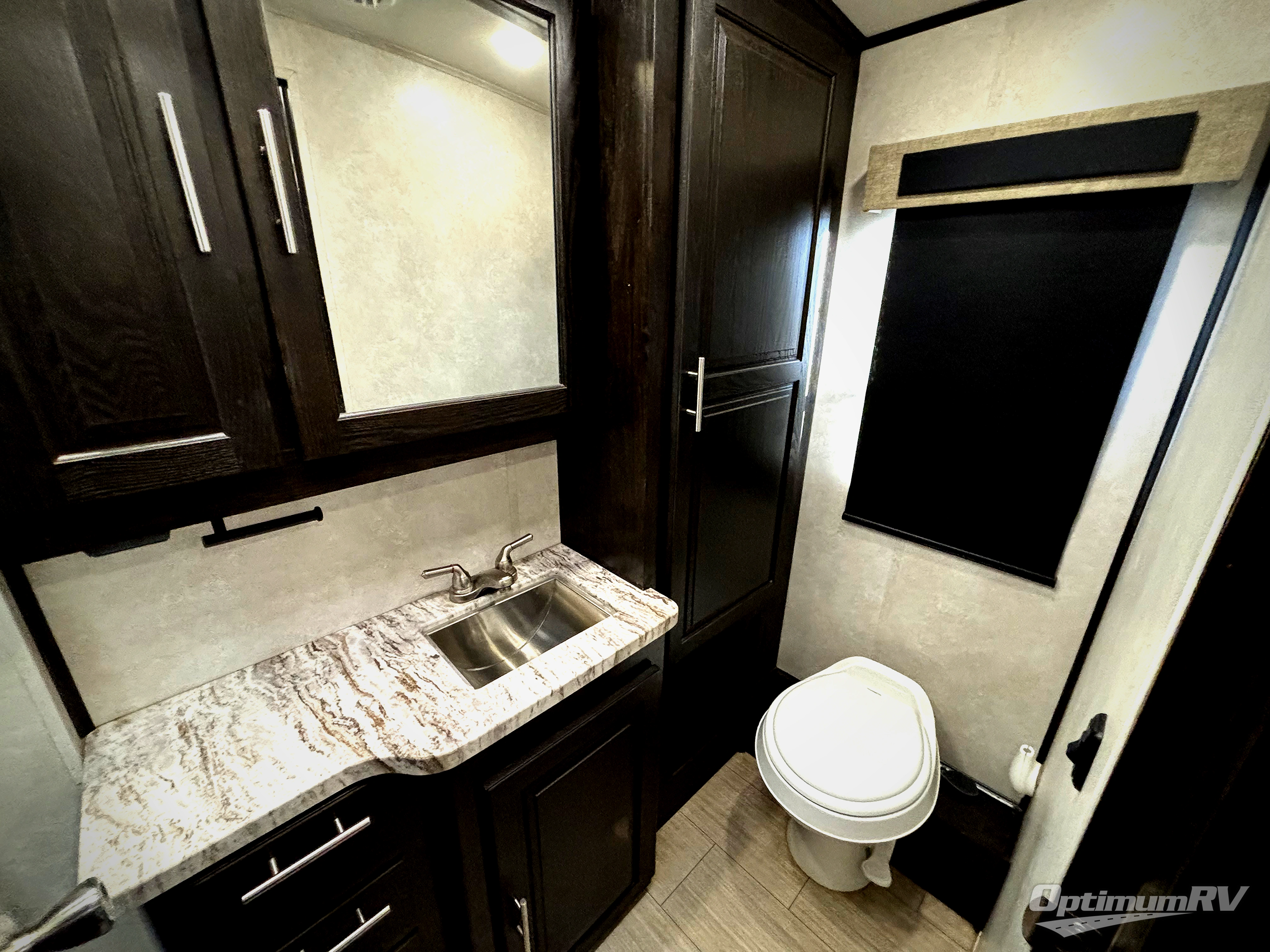 Whether you are driving down the road in comfort or sleeping in your own king-size bed, you will enjoy every minute you get to travel in this coach. You even get to skip the public stops when you have a full bath and a half bath on board. You can quickly set up the power awning to relax outside while watching the outdoor TV or you can take a walk around the campground to start planning your activities. You might have decided to add the washer and dryer option so a load of laundry might even get done. Once you are ready to fill your tummy, the full kitchen offers everything you need, plus a residential microwave. You might even decide to relax on one of the theater seats after dinner as you watch the big game on the LED TV.