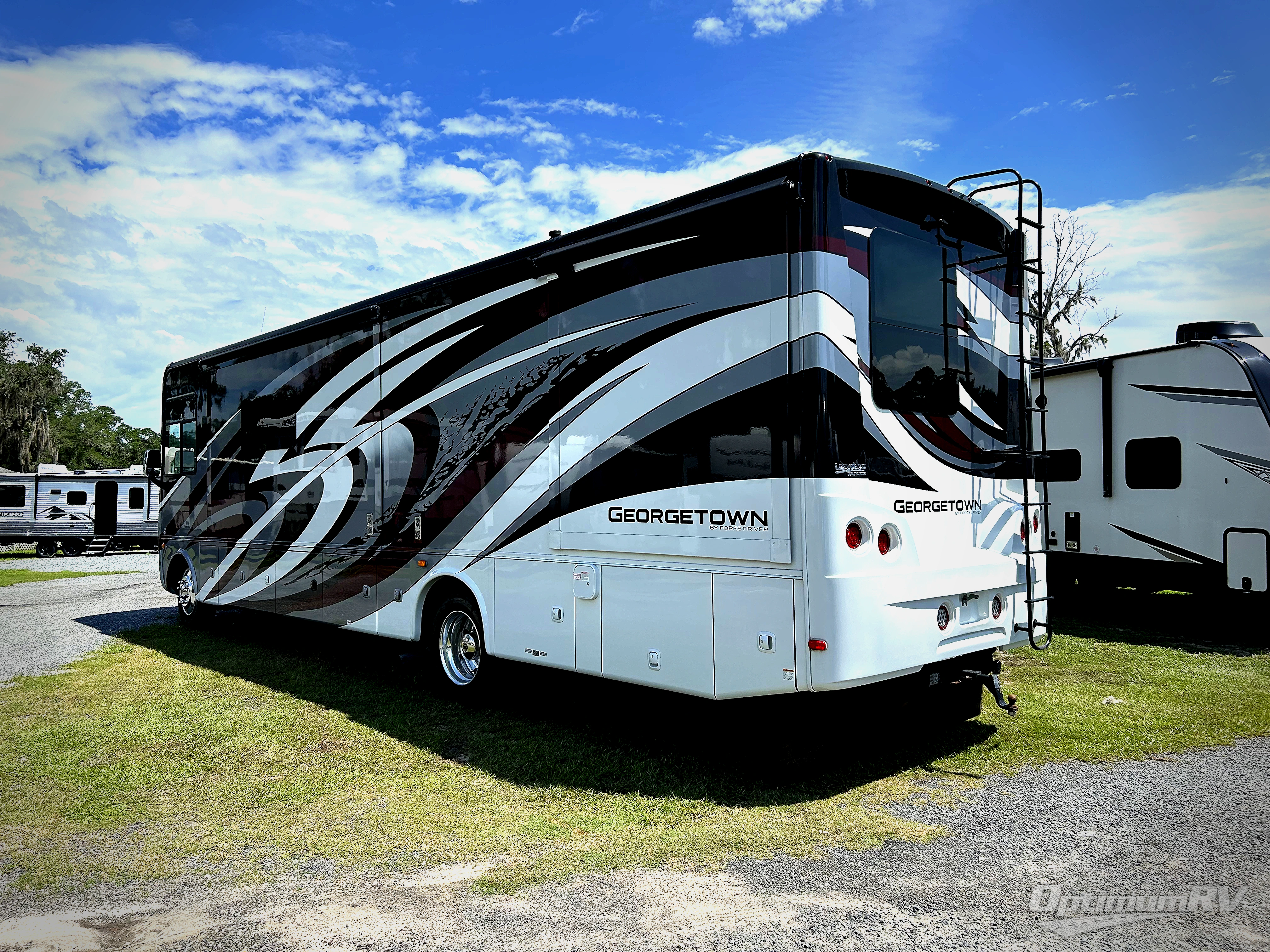 Get ready to set out to new adventures with a Georgetown XL Class A gas motorhome by Forest River that has been built upon a Ford F-53 chassis. You won't be lacking for storage space with the Rotocast one-piece storage compartments and all of the interior overhead cabinets. In the evening, plan to sit and visit with your family and friends underneath the electric awning, and the LED light strip allows you to visit even after the sun has set. Inside there is a Pioneer dash entertainment system with AM/FM/DVD/Bluetooth/USB and 90 sheen high-gloss solid wood Amish cabinetry. When you choose to camp and travel with a Georgetown XL, you won't be disappointed!