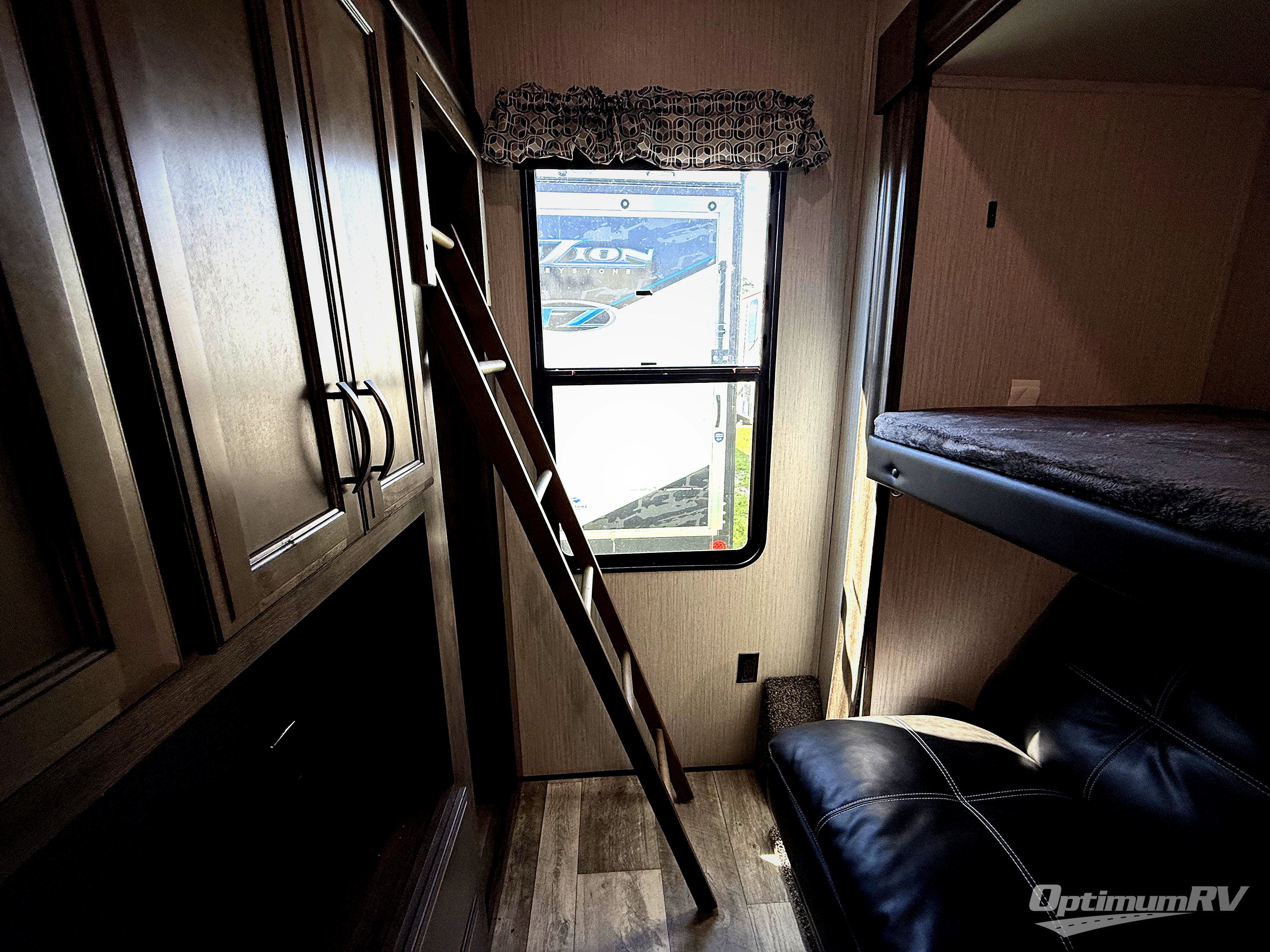 You will be so amazed by the accommodating features found in this Sierra fifth wheel! The master suite in the front of this unit has its own private entrance into the dual-entry bath, and the bunkhouse suite in the back contains one of the two full bathrooms. Since the second exterior entry door leads directly into the rear suite, your guests will feel ultra pampered when they travel with you. It will be easy to stay cool during the warm summer months with the ceiling fan in the main living area, and the exterior drop-frame pass-through storage compartment will give you a place to keep your larger gear out of sight.