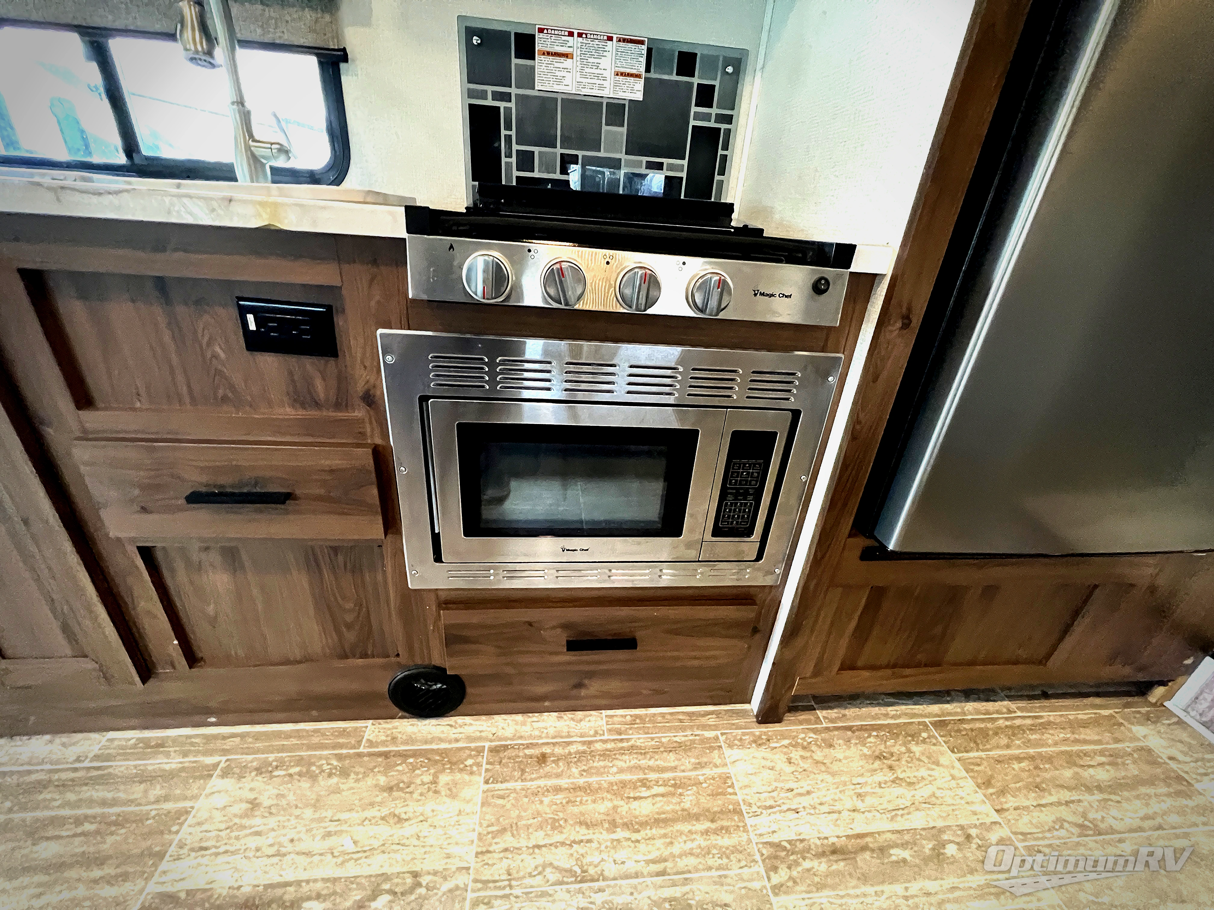 Imagine being able to travel with your own bedding, bathroom and cookware to see new scenery and places when you like. You can even invite seven more people to join you thanks to the eight total seatbelts. Once at your destination, easily set up the two slide outs and power awning with LED light strip and start relaxing or making lunch. The kitchen appliances are across from the large slide allowing you to visit with everyone while they relax on the U-dinette and sofa. Everyone can watch the LED TV as well. You will find sleeping space on the furniture and on the cab over bunk unless you decided to add the optional Trekker cap with built-in entertainment center in its place. You can even choose optional recliners or a 32" outside TV option.