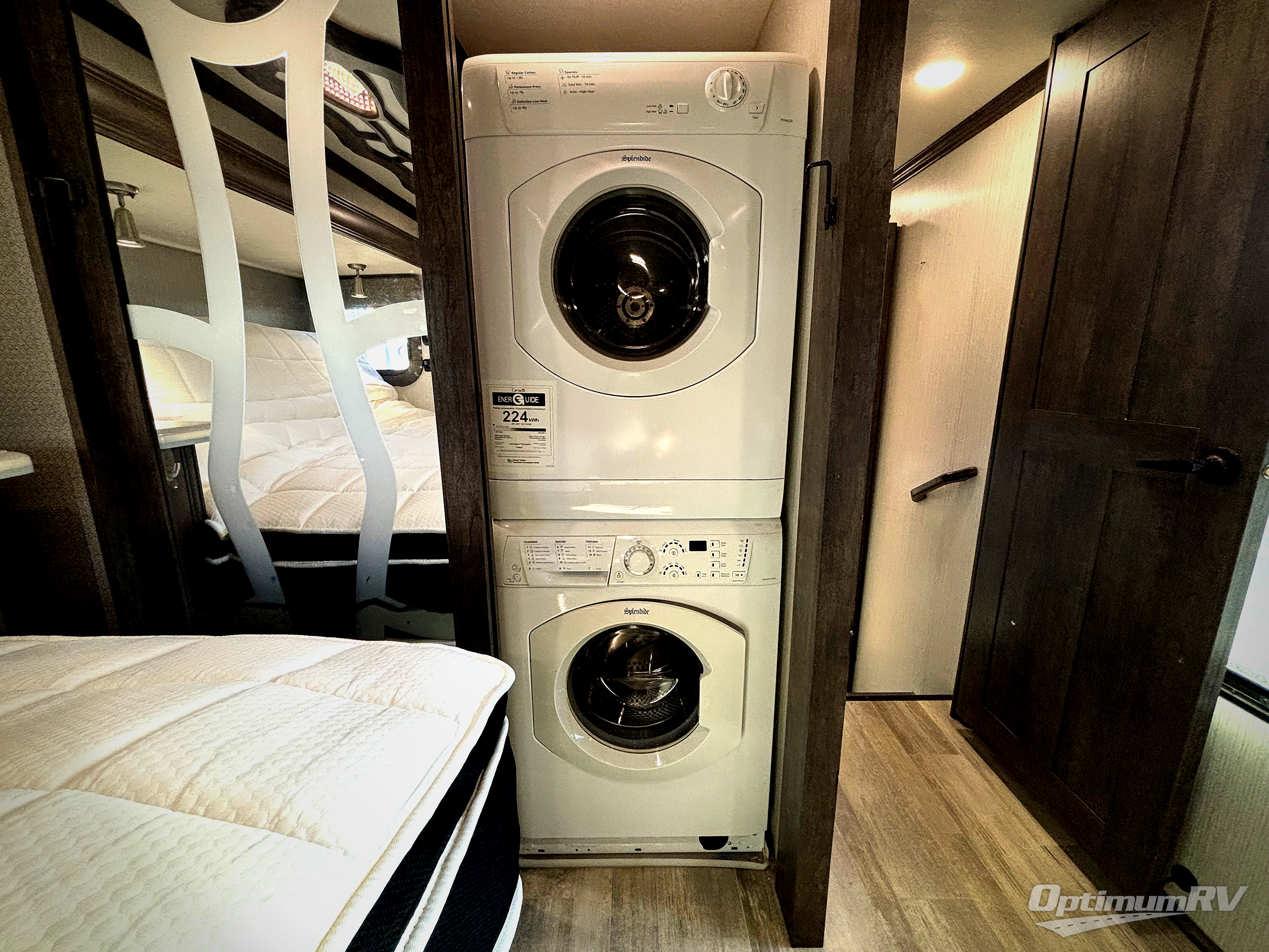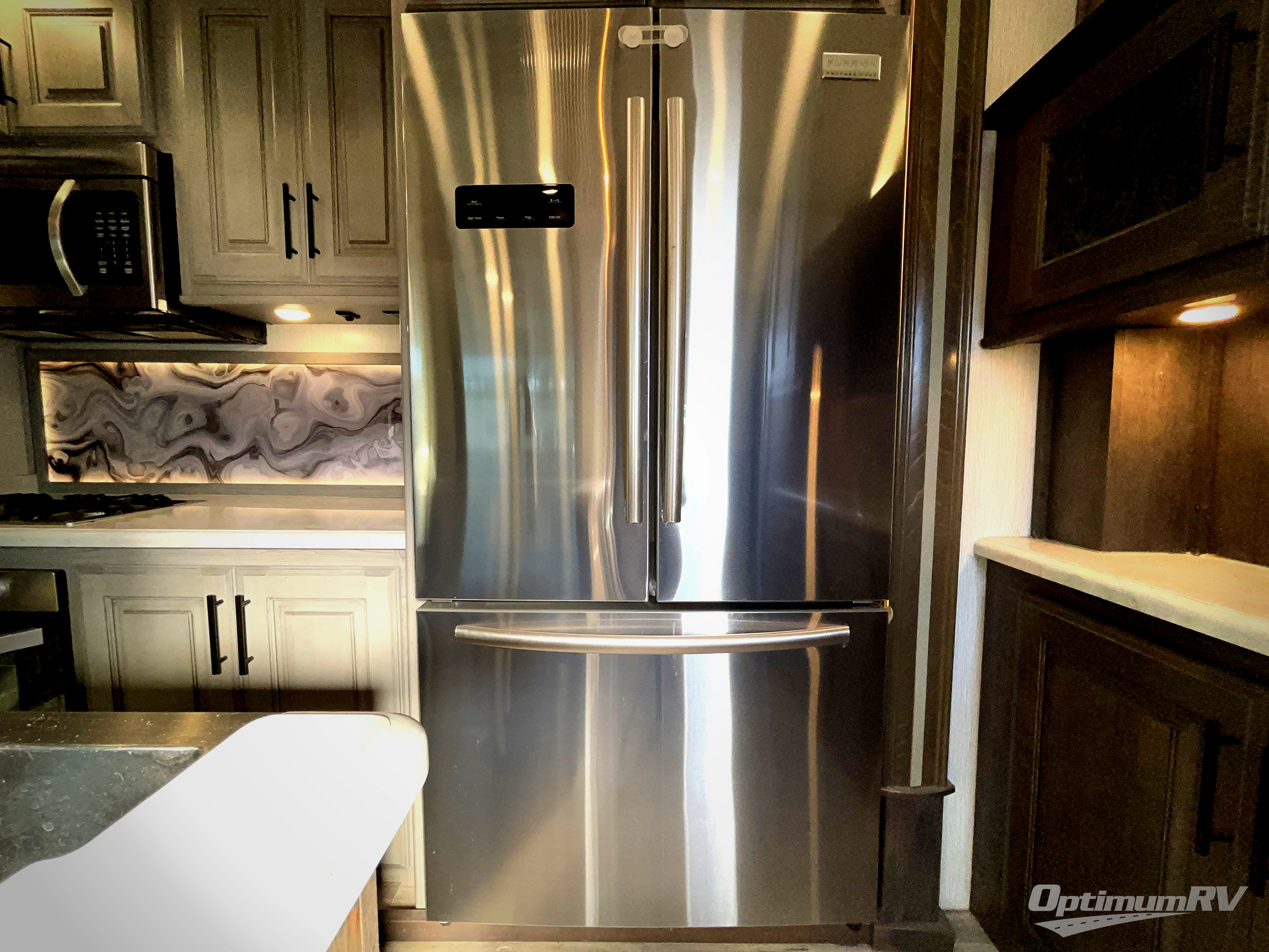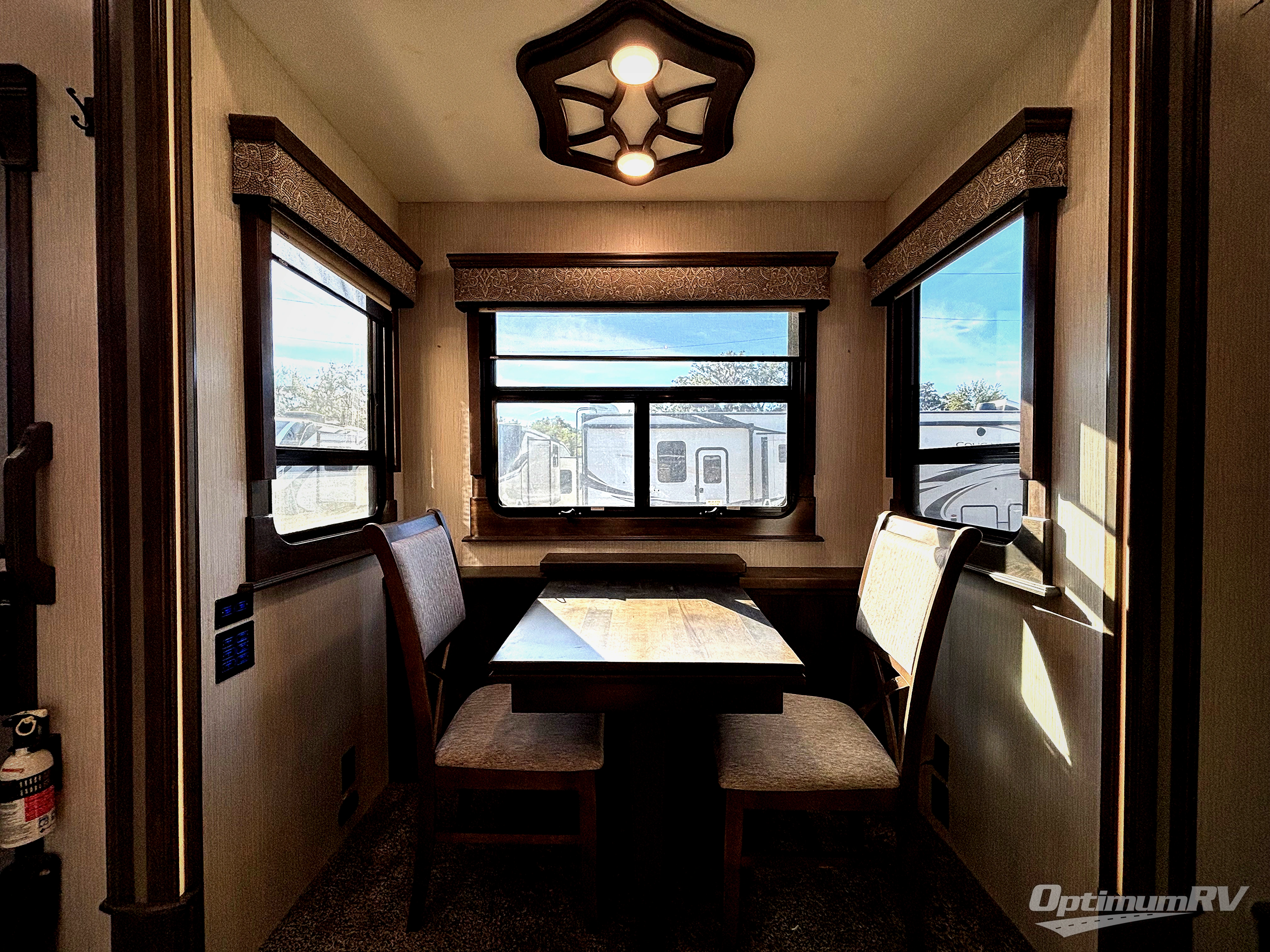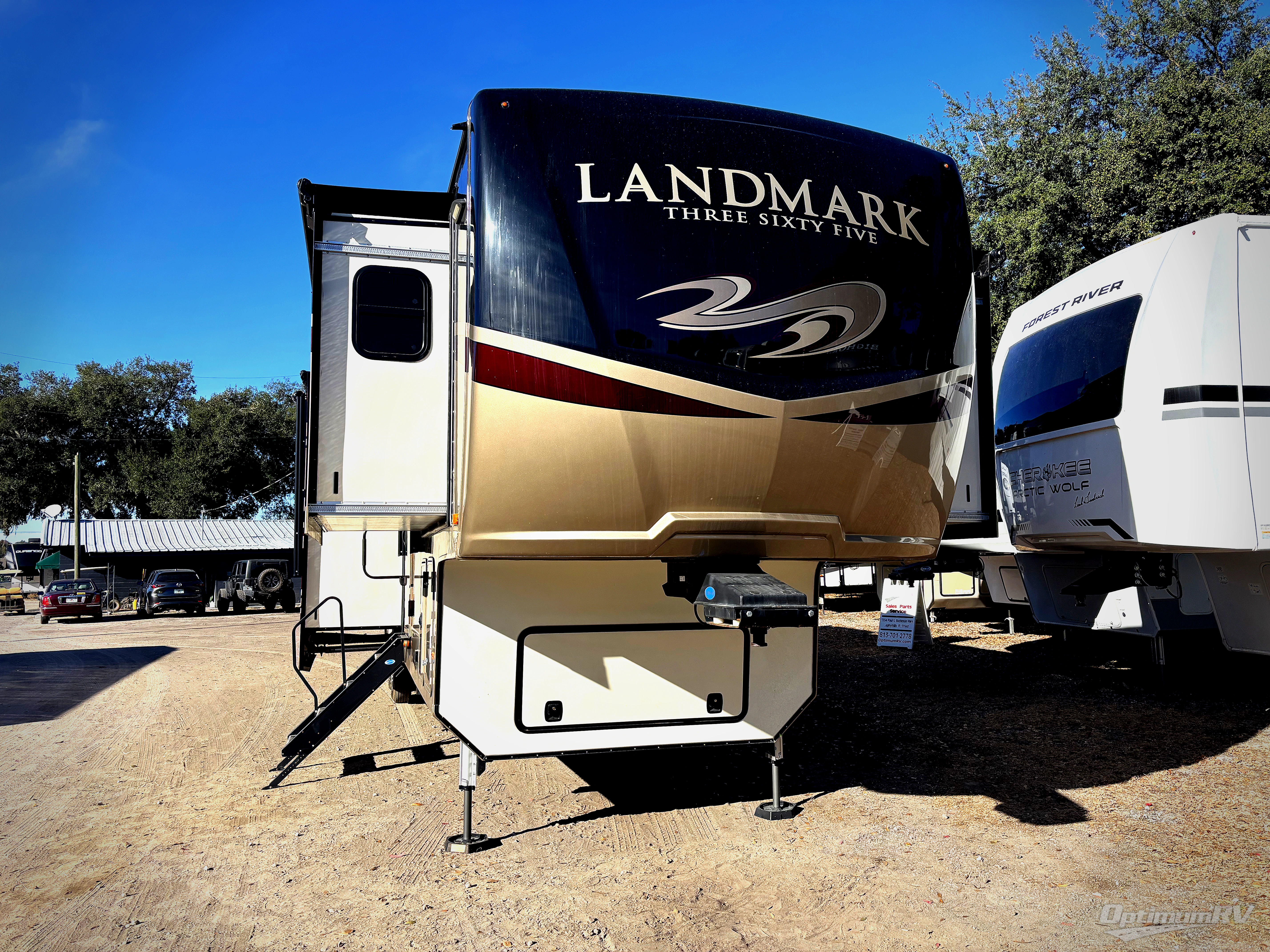 Don't forget to pack your sense of adventure before you take off with this Landmark 365 fifth wheel! This model lets you feel like you've never left home with its separate living room up front and its completely accommodating master suite in the back. In the central living area, there is an additional half bath next to the kitchen so that you don't have to go far while you are preparing dinner on the three-burner gas cooktop or in the convection microwave. Sit down with a hot meal at the free-standing table with chairs before heading outside to check out the night sky underneath the two electric awnings with LED lights.