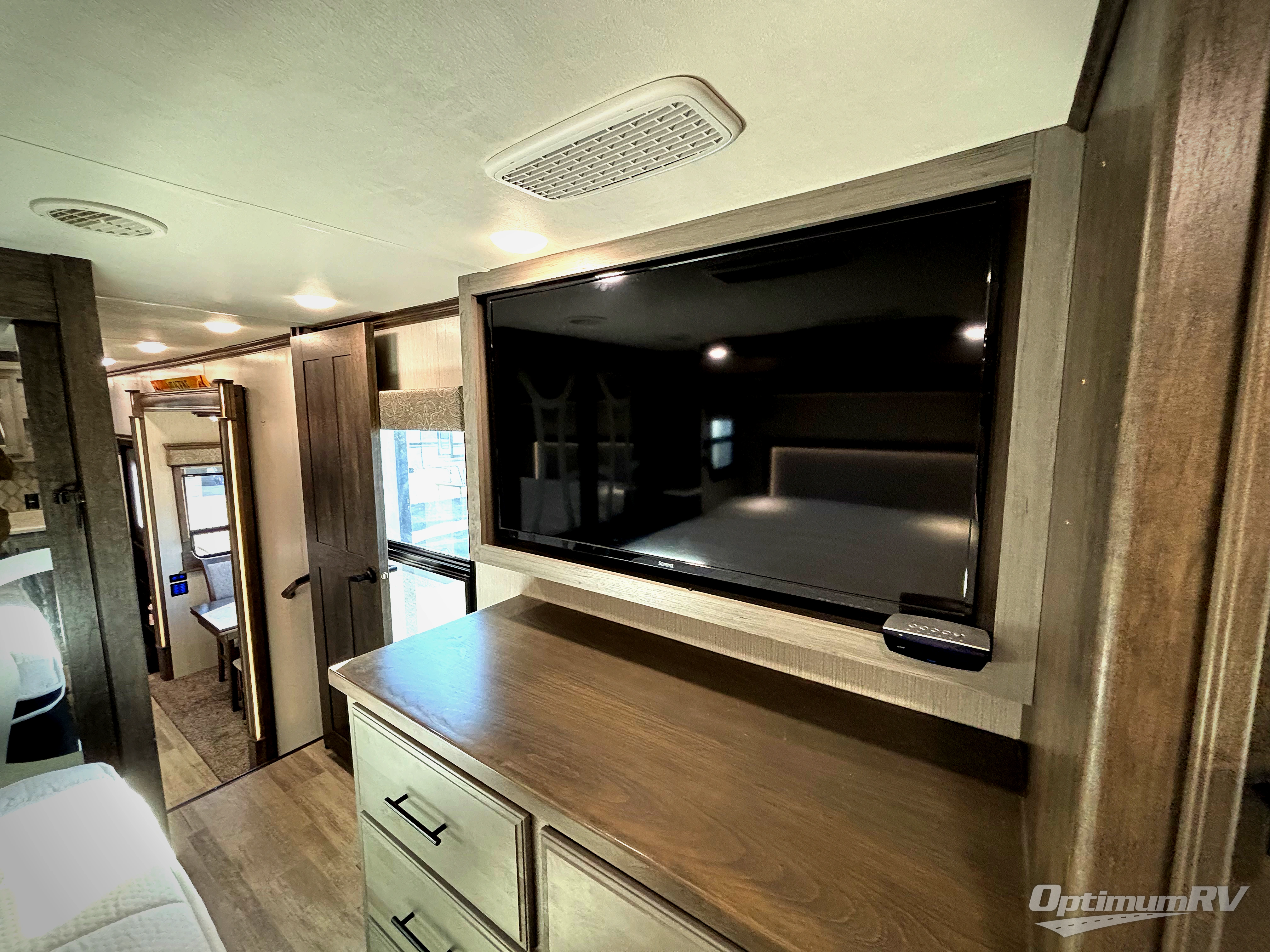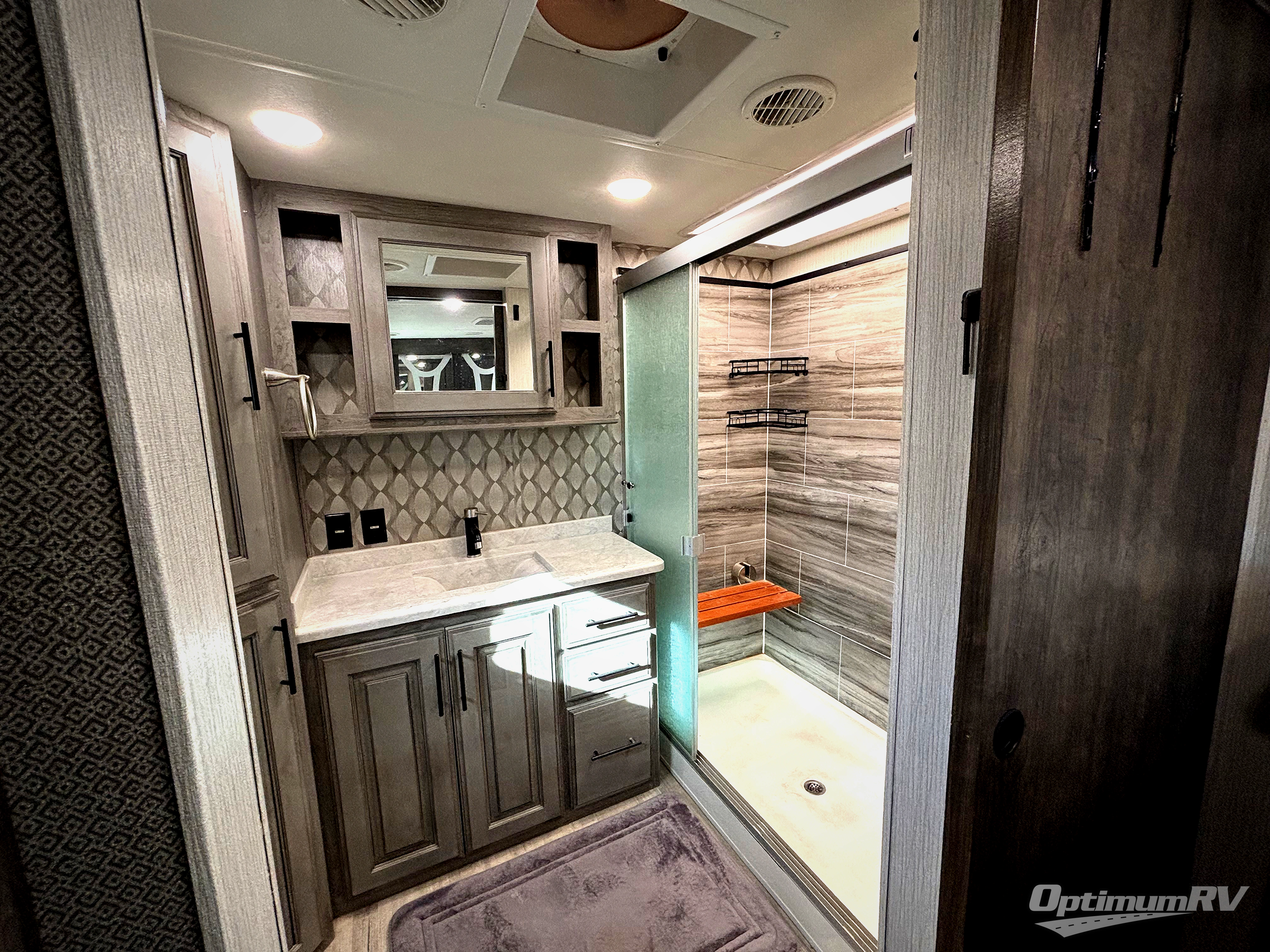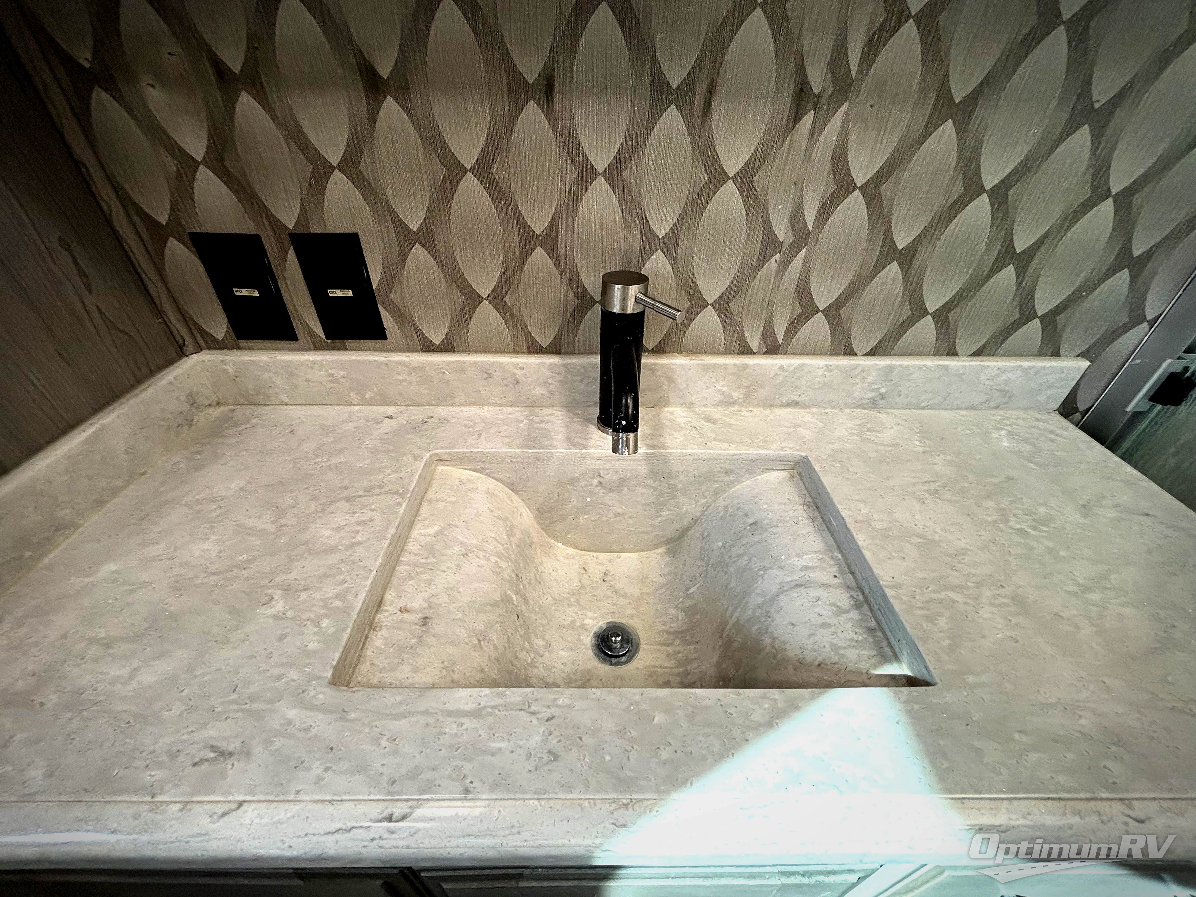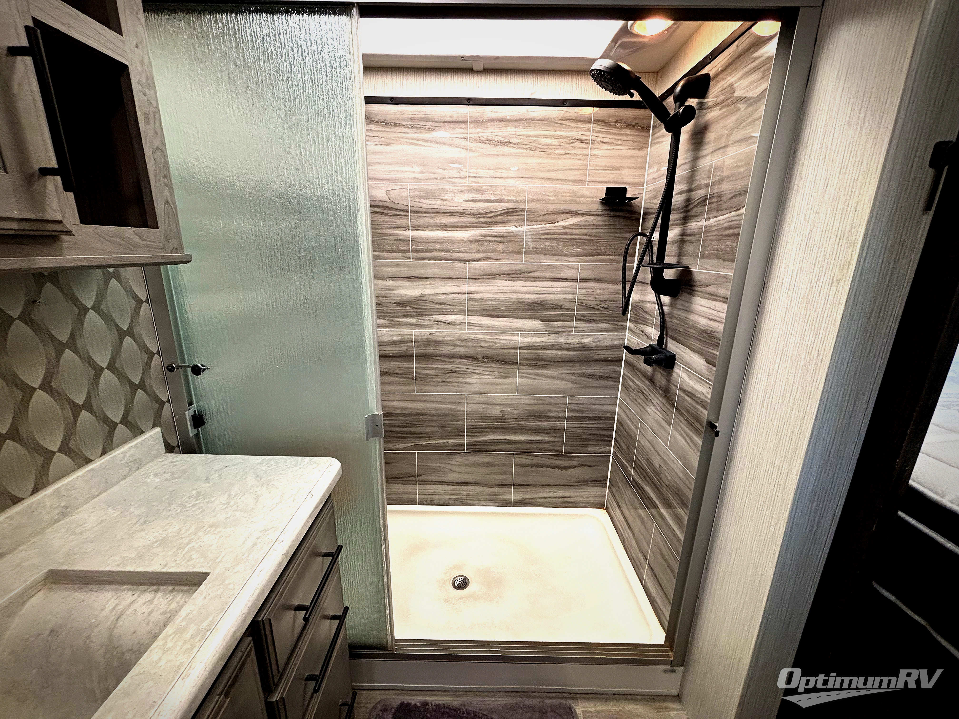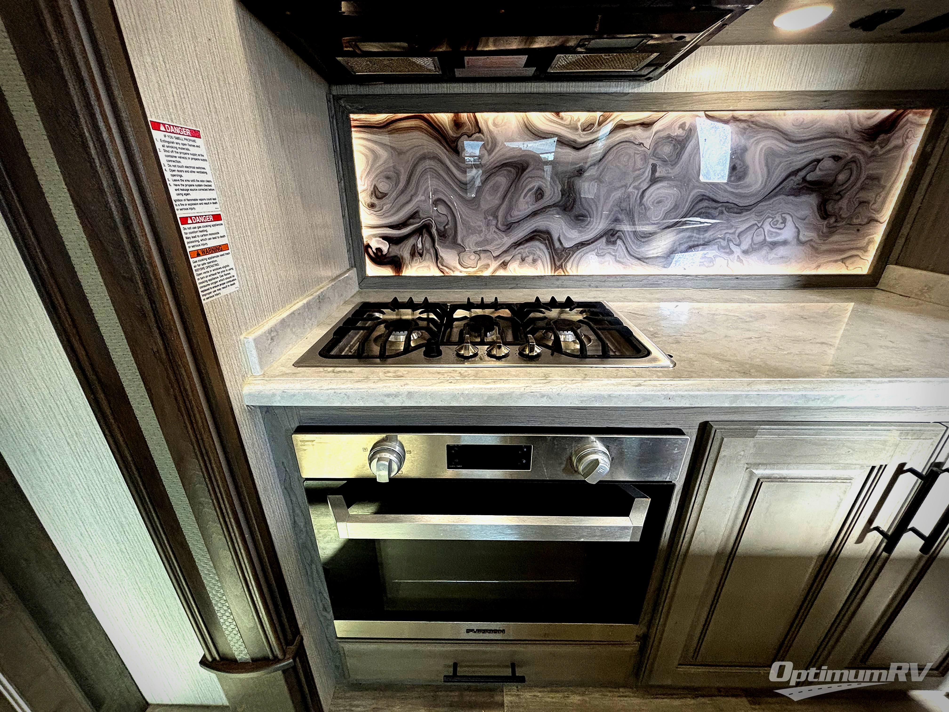 Don't forget to pack your sense of adventure before you take off with this Landmark 365 fifth wheel! This model lets you feel like you've never left home with its separate living room up front and its completely accommodating master suite in the back. In the central living area, there is an additional half bath next to the kitchen so that you don't have to go far while you are preparing dinner on the three-burner gas cooktop or in the convection microwave. Sit down with a hot meal at the free-standing table with chairs before heading outside to check out the night sky underneath the two electric awnings with LED lights.