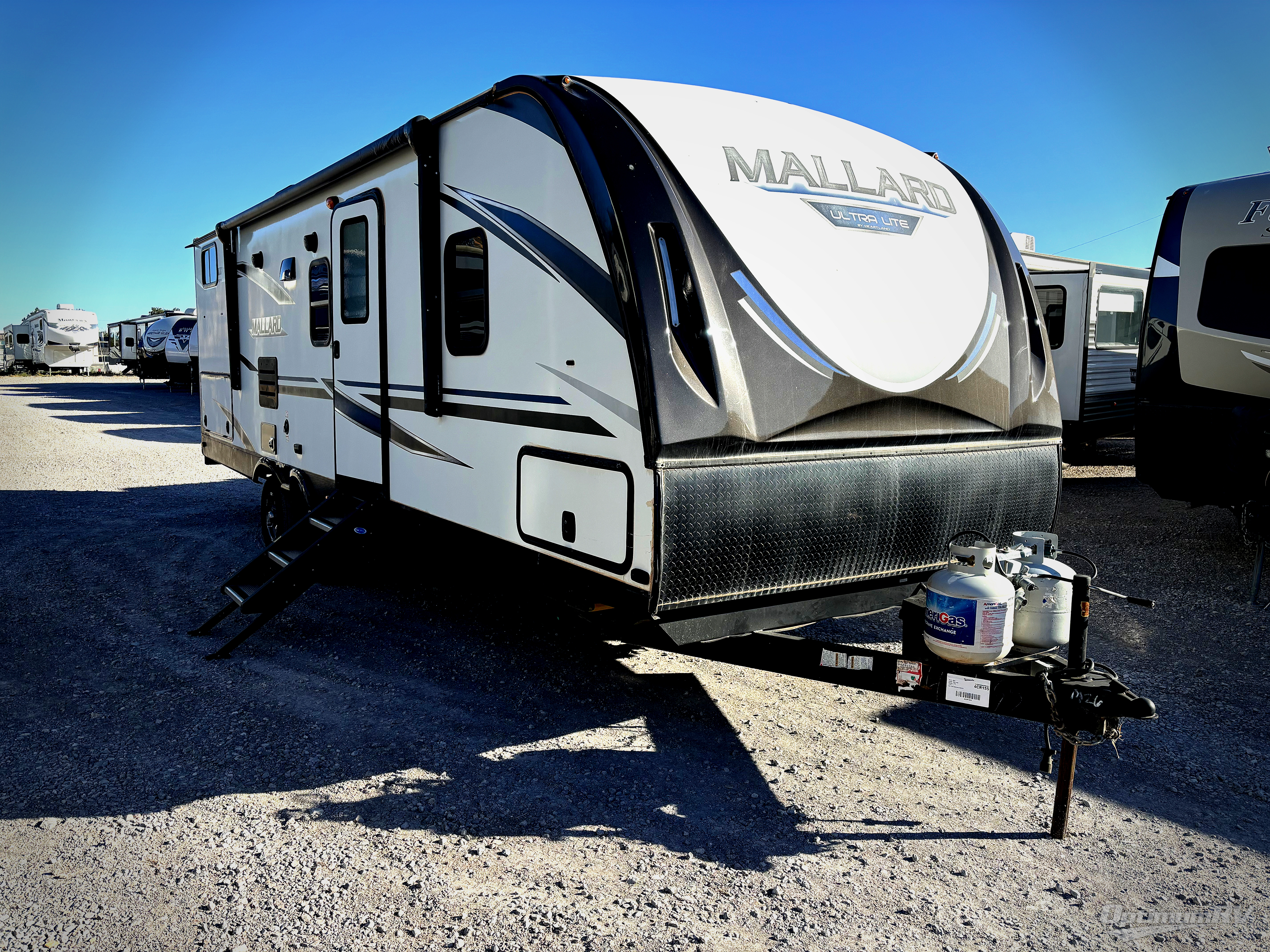 With any Mallard Ultra Lite travel trailer by Heartland, there is a automotive grade painted front cap with LED accent lights, six-sided aluminum construction, leaf spring suspension, a Wide Trax axle system, a power tongue and stabilizer jacks, plus more features giving you years of enjoyment during any season. The spacious interior is inviting with arched ceilings, the overstuffed residential grade furniture is comfortable, and the King Kong sized pass-through storage allows you to leave nothing behind. Spread your wings, choose a Mallard today!