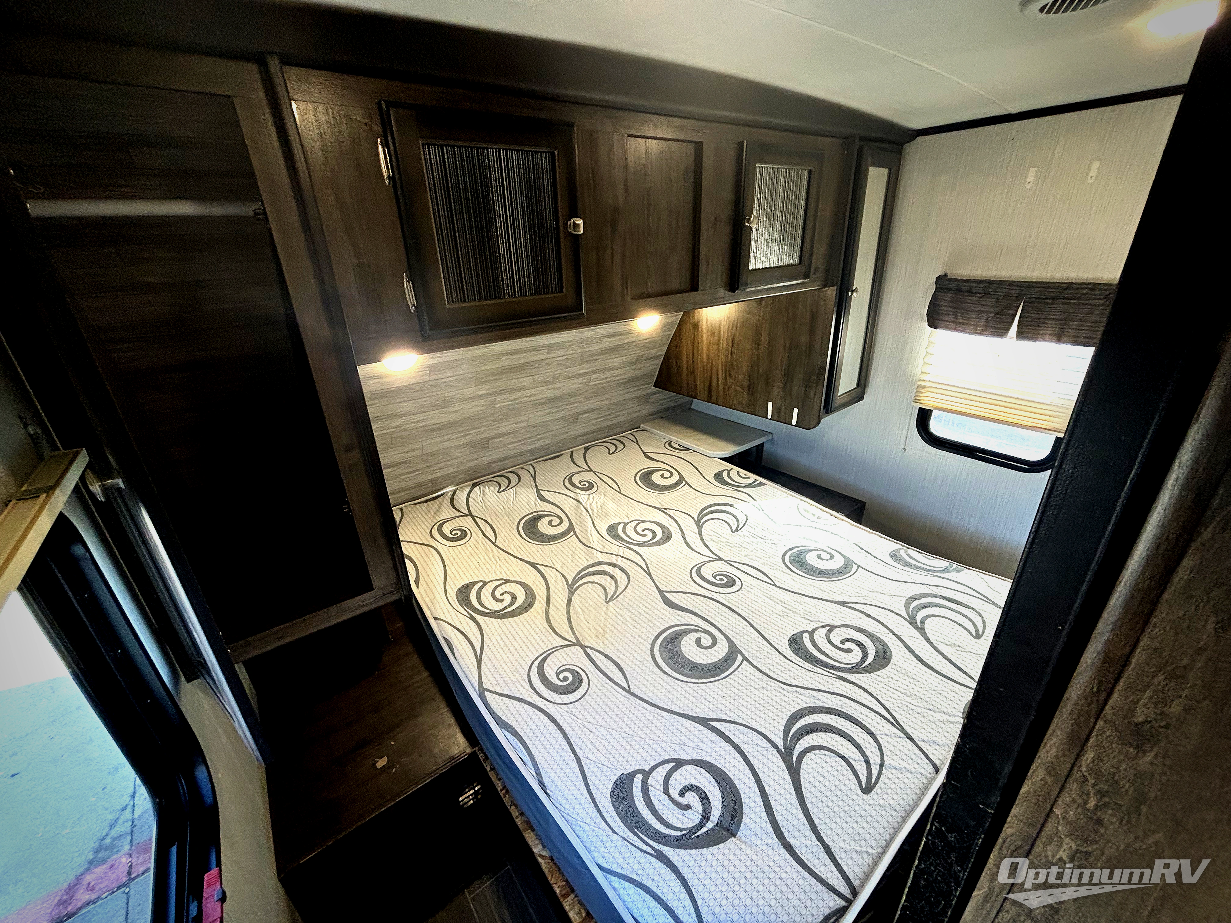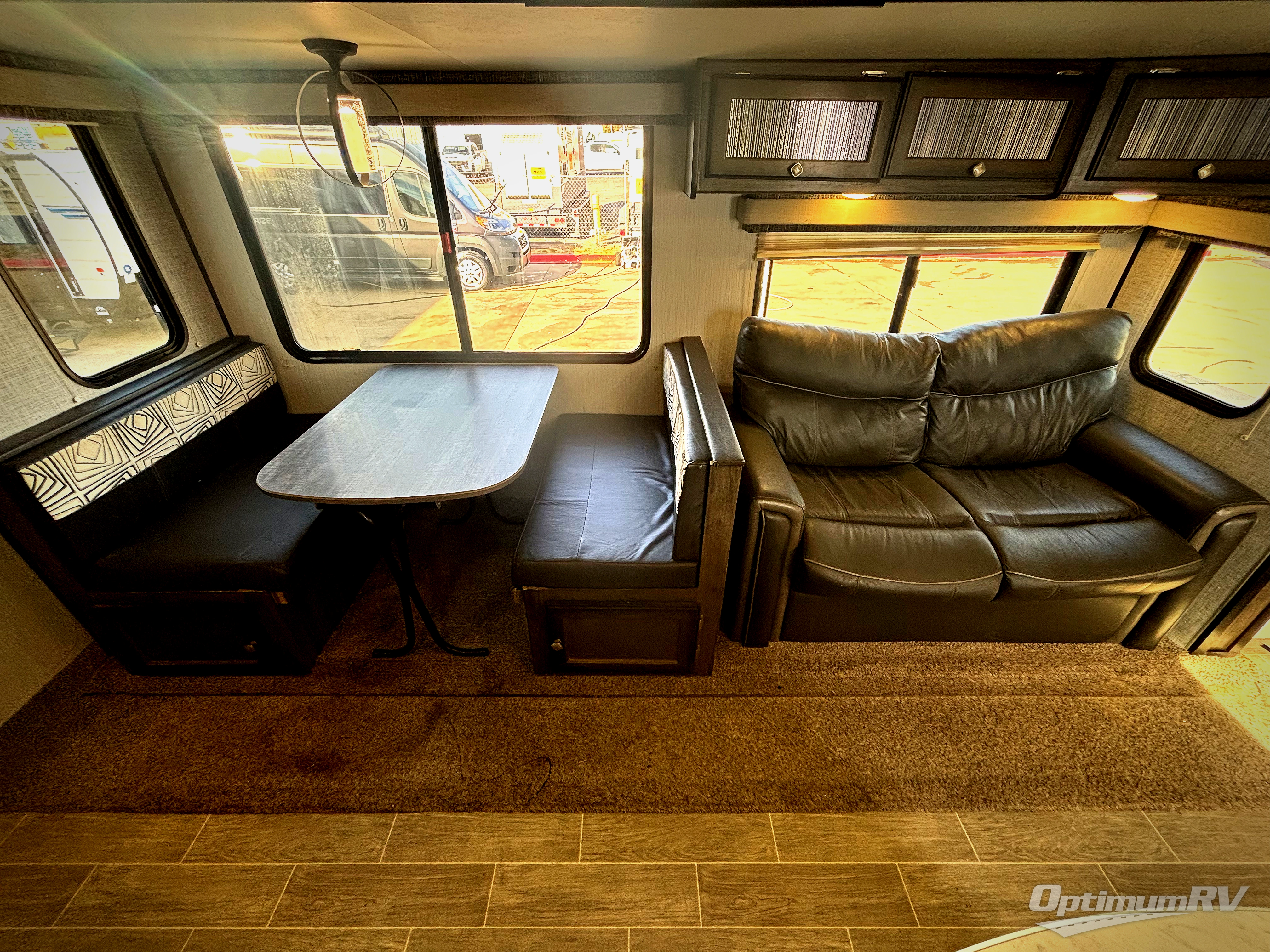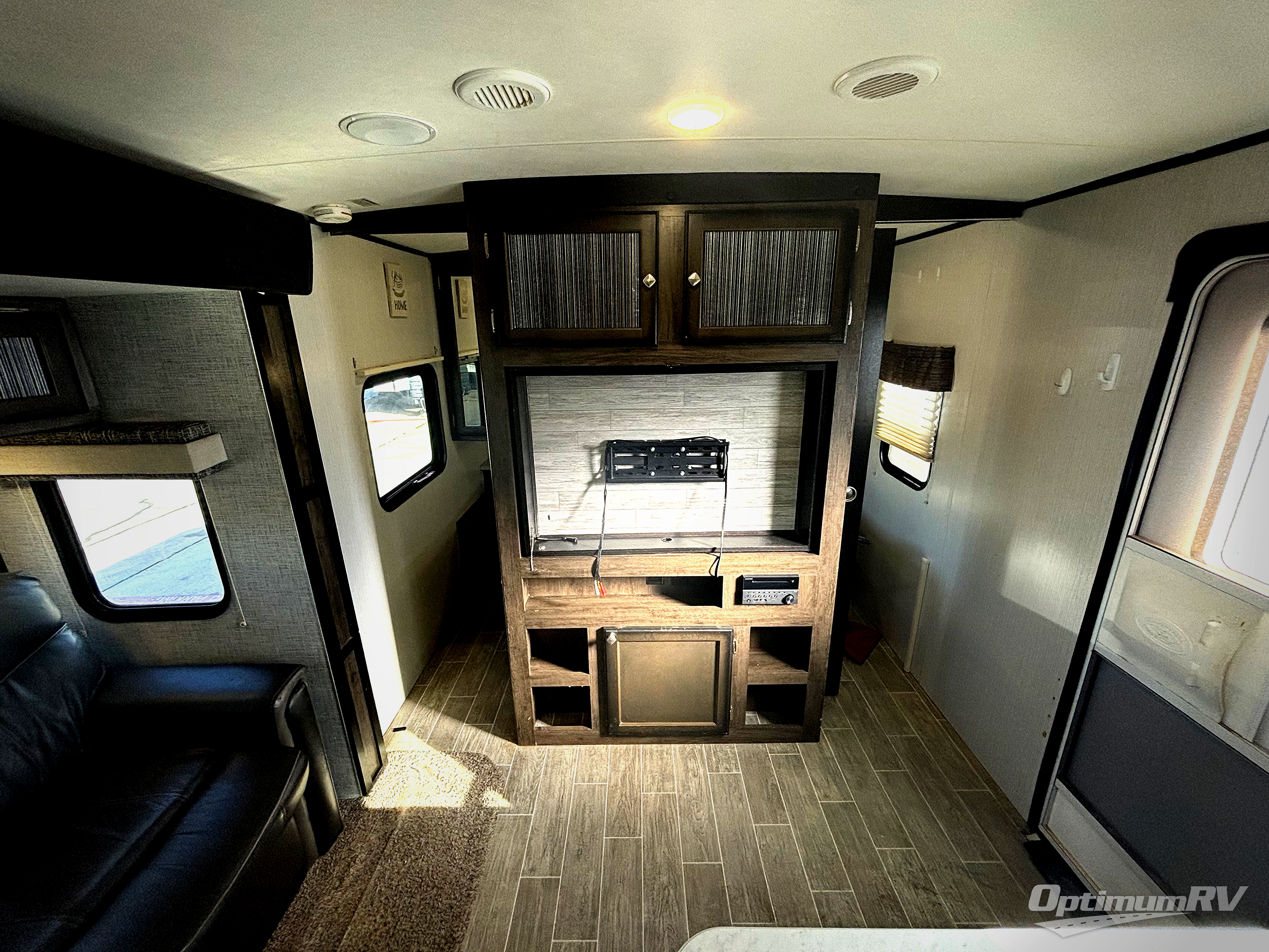 You will enjoy every camping vacation in this trailer with features such as the exterior slide cook top, and the set of double size bunk beds next to the corner full bathroom which will come in handy for any late night trips. The booth dinette is the perfect place for you to enjoy your meals at, play a game or even transform into an extra sleeping space for guests, and right next to it is the sofa. And the single slide gives everyone more floor space to move about when inside, and the power awning allows everyone to relax outdoors with some protection from the elements.