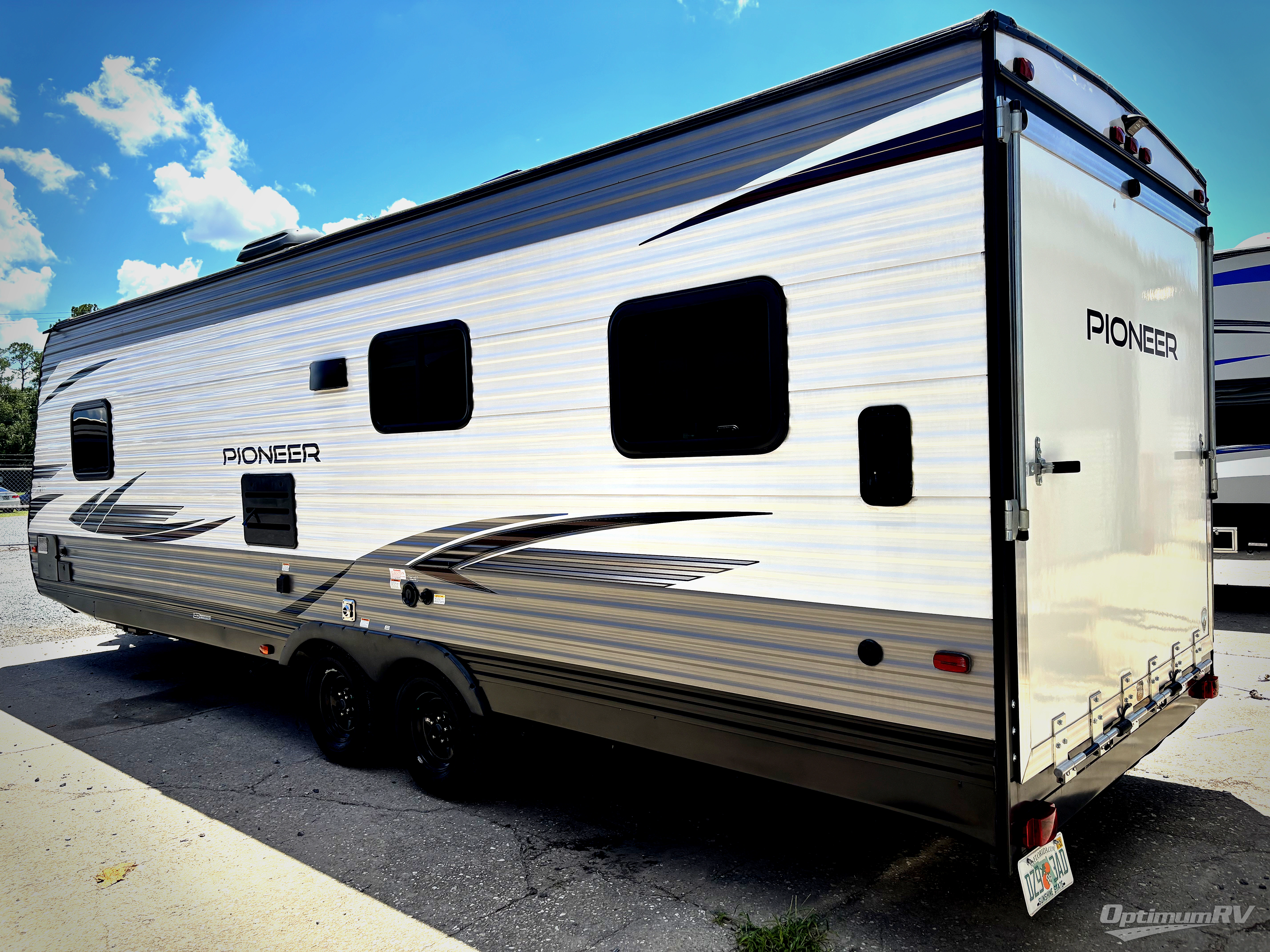 Set out to new and exciting travel destinations with this Pioneer toy hauler! Because this unit can sleep six people, you will not only have plenty of space for your favorite toys, but also your favorite people. The U-shaped dinette will serve as both a comfortable dining and sleeping location, and the two fold-up sofas also serve multiple purposes by providing lounging space during the afternoon and sleeping space at night. You can even prepare your own meals while you are adventuring because the three-burner range in the full kitchen will make it easy to fry up the fish that you caught earlier at the lake.