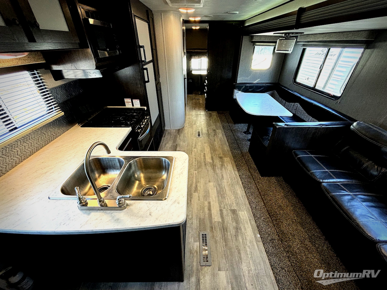 This Prowler travel trailer is perfect for your whole family or large group. The kids will love the bunkhouse with triple bunks and a dinette where they can play a board game or color. The large slide out provides more interior space to relax comfortably, and here you'll find the U-shaped dinette and sofa that can be used for additional sleeping space at night. The chef of the family will have their choice to cook outside on the outdoor kitchen or inside on the three-burner cooktop. You and your spouse will love escaping to the front private bedroom each night with a queen bed and storage space for all your things.