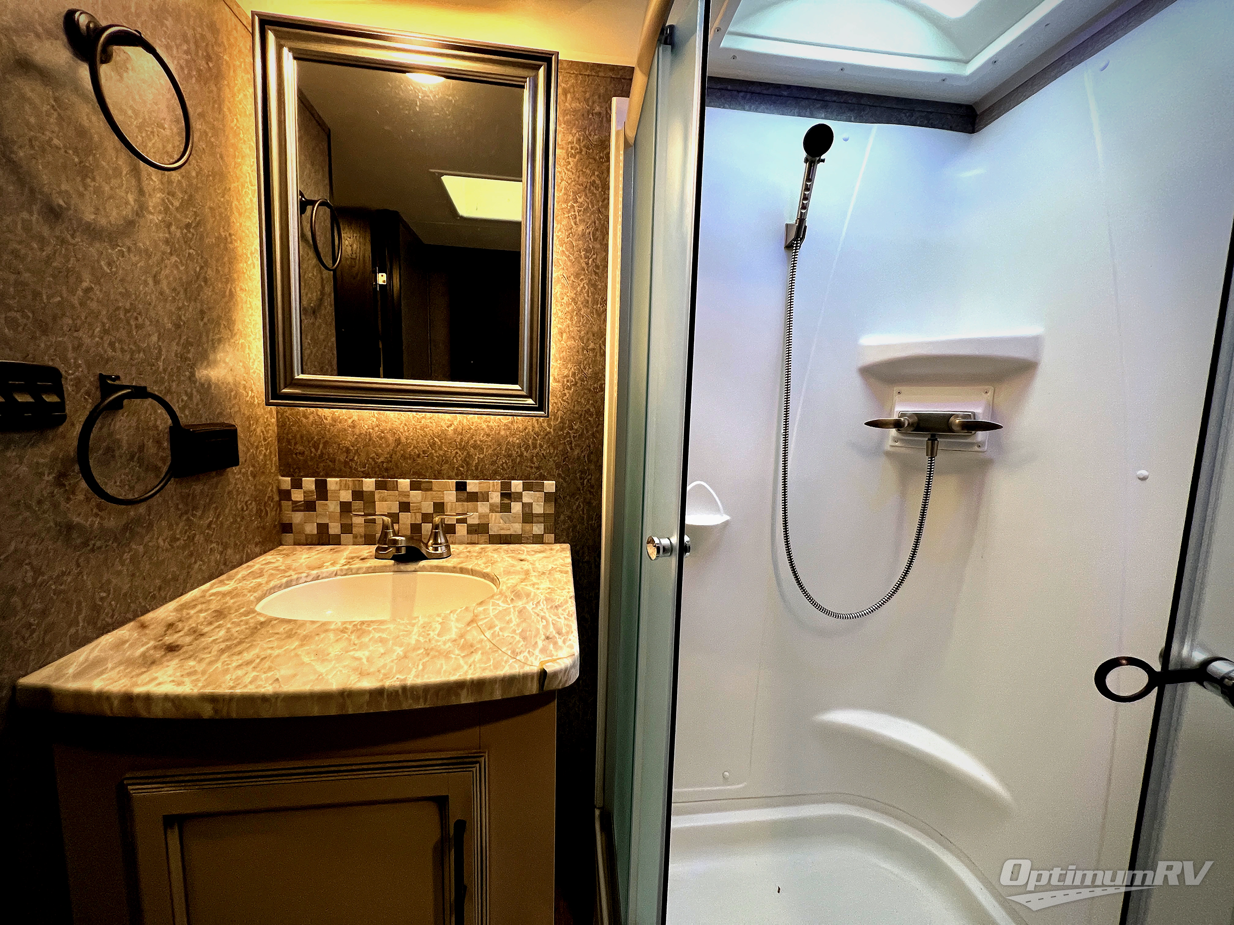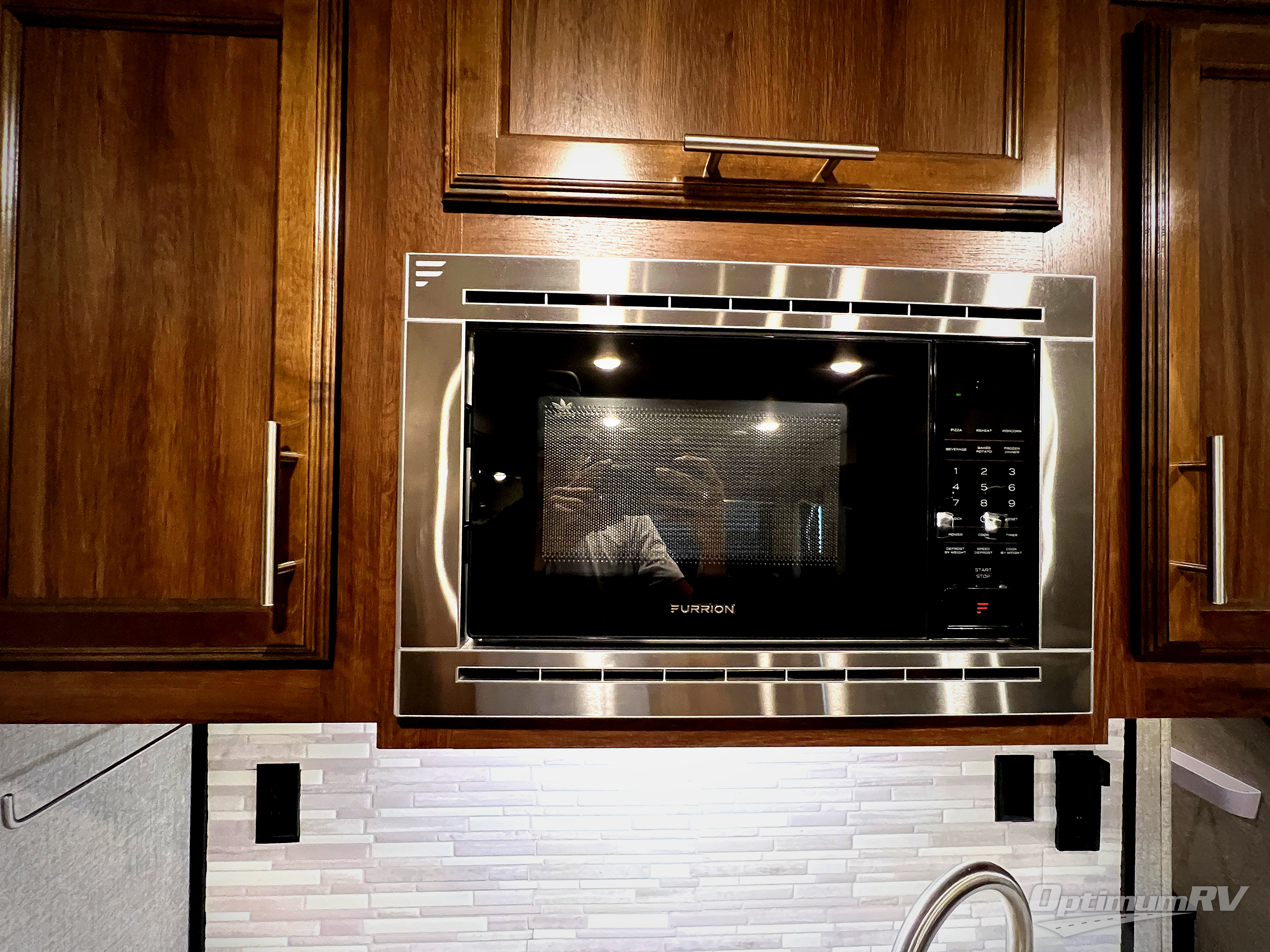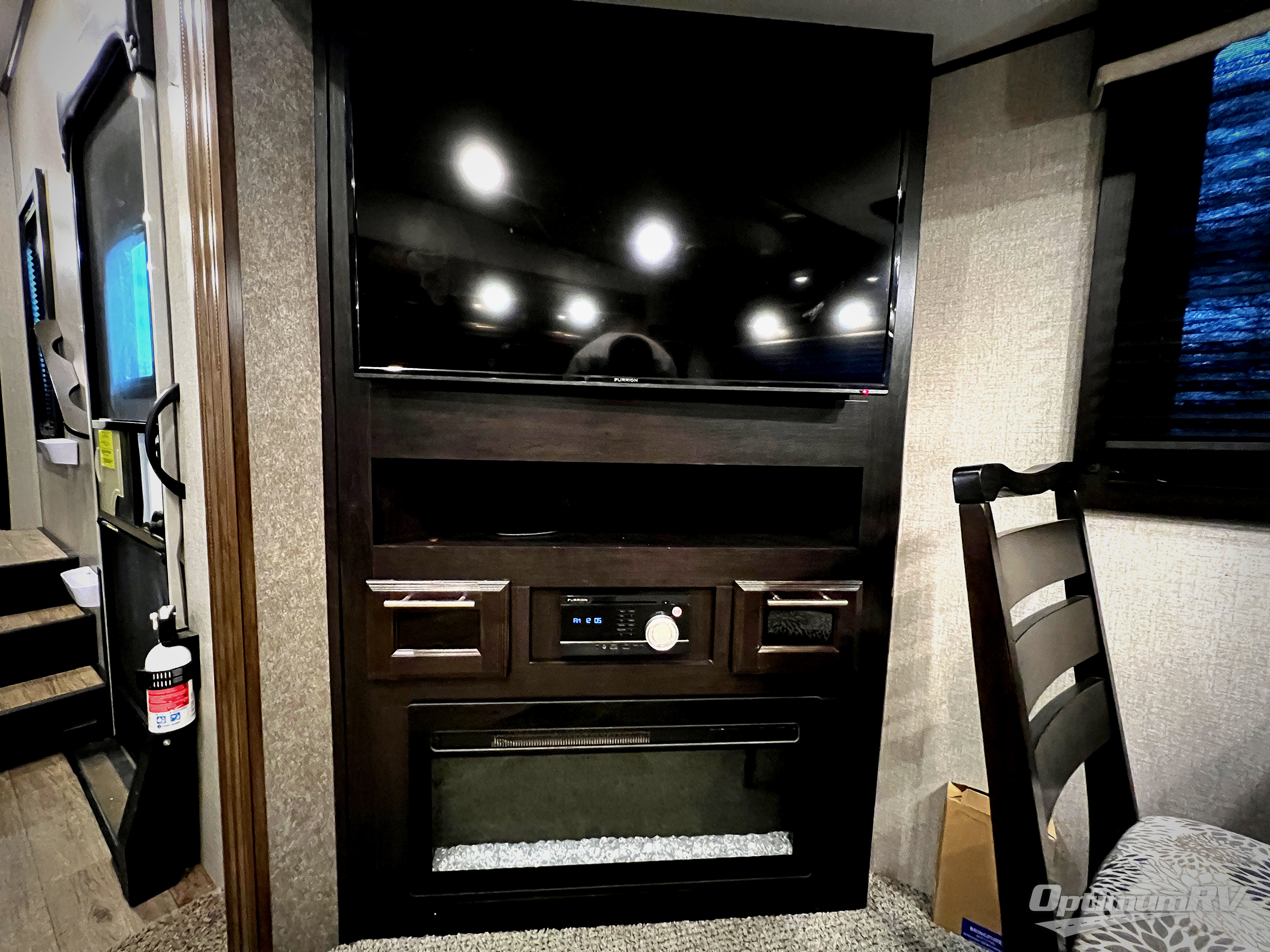 Dual opposing slides offer an open feel when you make meals in the kitchen with the stainless steel appliances, watch the LED HDTV, or relax on the tri-fold sofa in this Eagle HT fifth wheel. You can get cleaned up in the full bathroom with a radius shower, and the bedroom wardrobe slide includes a window for cross-ventilation and natural light. All of these features plus more make this a popular unit. You might even like to add a few options such as 16" Goodyear tires, an LED fireplace, and/or theater seating in place of the sofa.