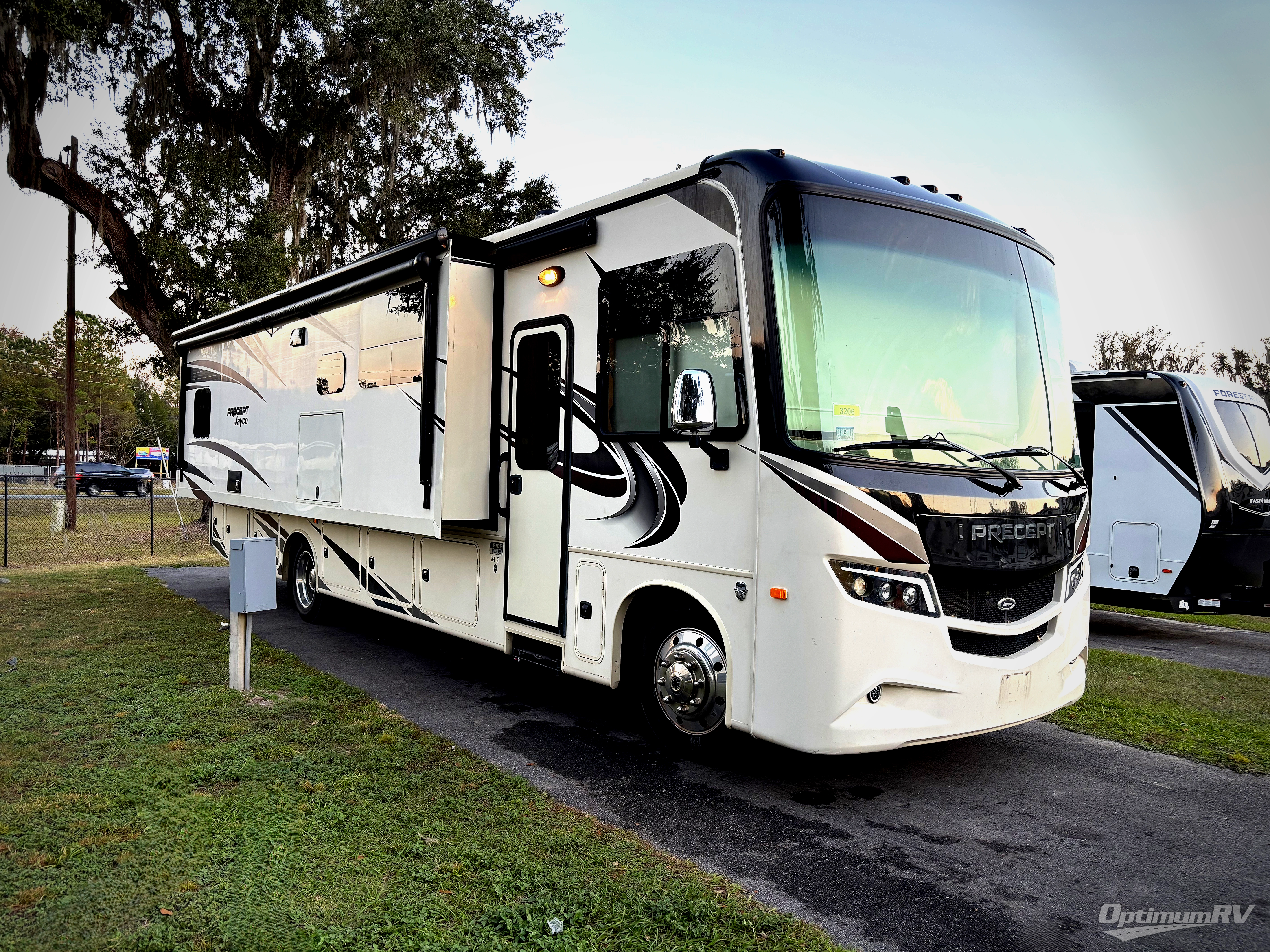 Come check out this Precept Class A gas motorhome that features a full-wall slide for an open and comfortable layout. You'll also find a second slide that contains the booth dinette and theater sofa to provide even more space. The kids can play a game on the floor in front of the fireplace or watch a show on the 50" TV with a lift while breakfast is being made. The 21 cu. ft. residential refrigerator allows you to stock up for your whole trip, and you'll find plenty of overhead compartments and two wardrobes in the bedroom for all your valuables. This unit also includes a rear private bedroom with an RV king bed that is perfect for you to escape to each night.