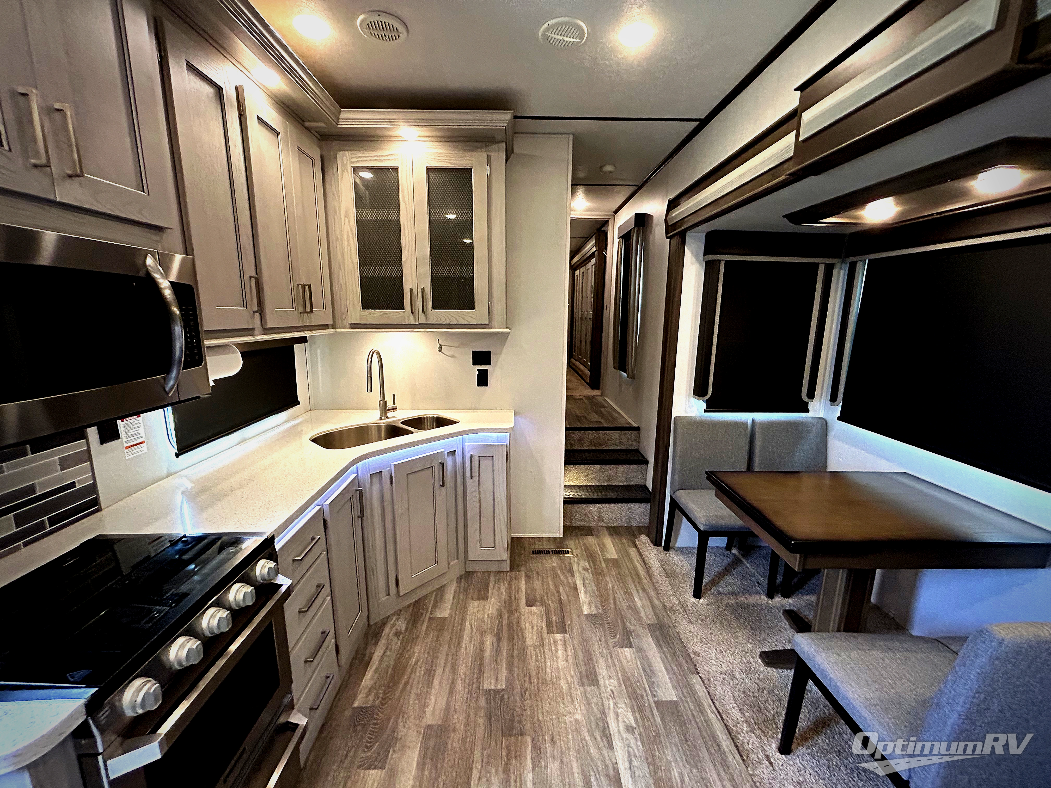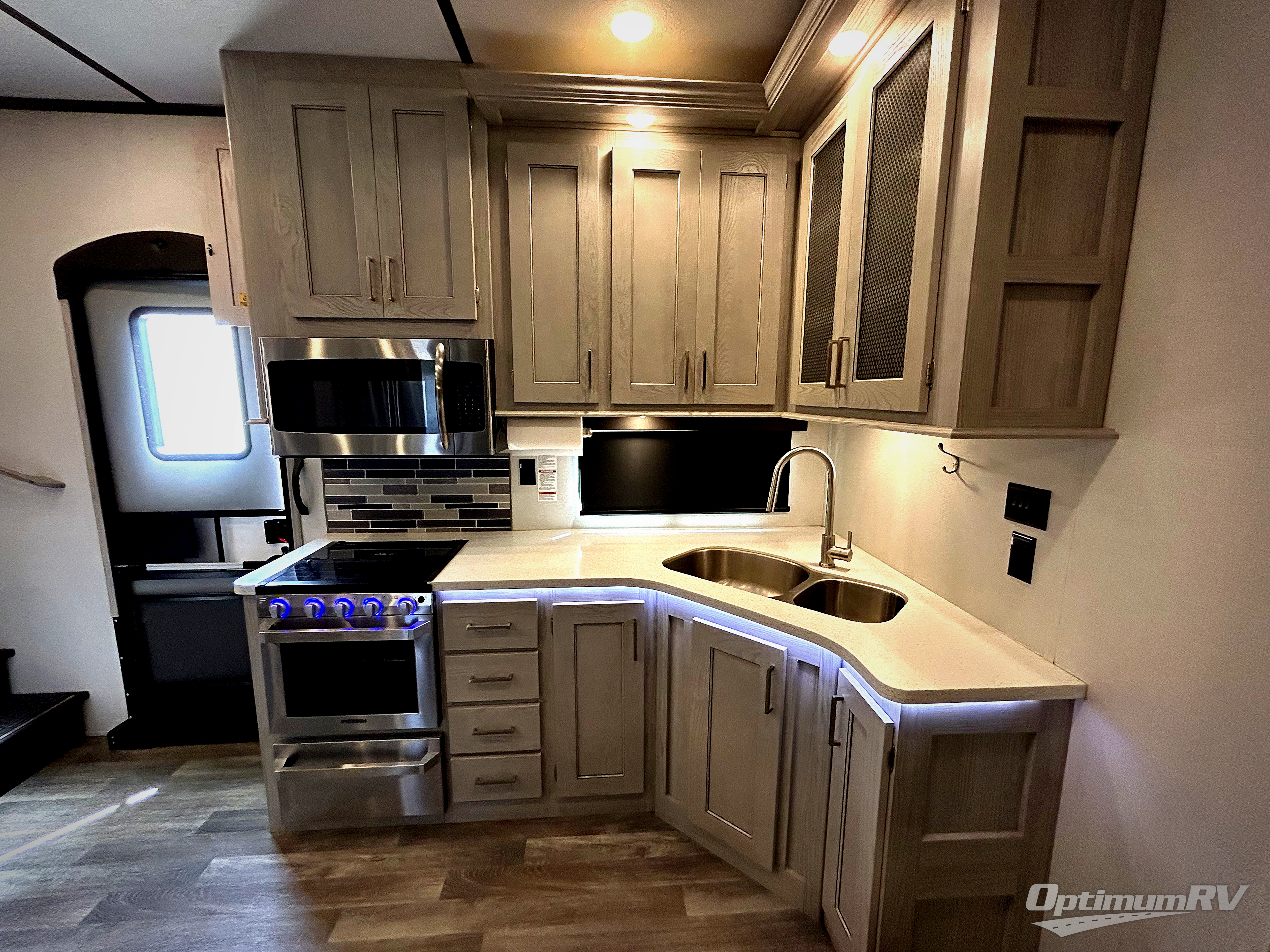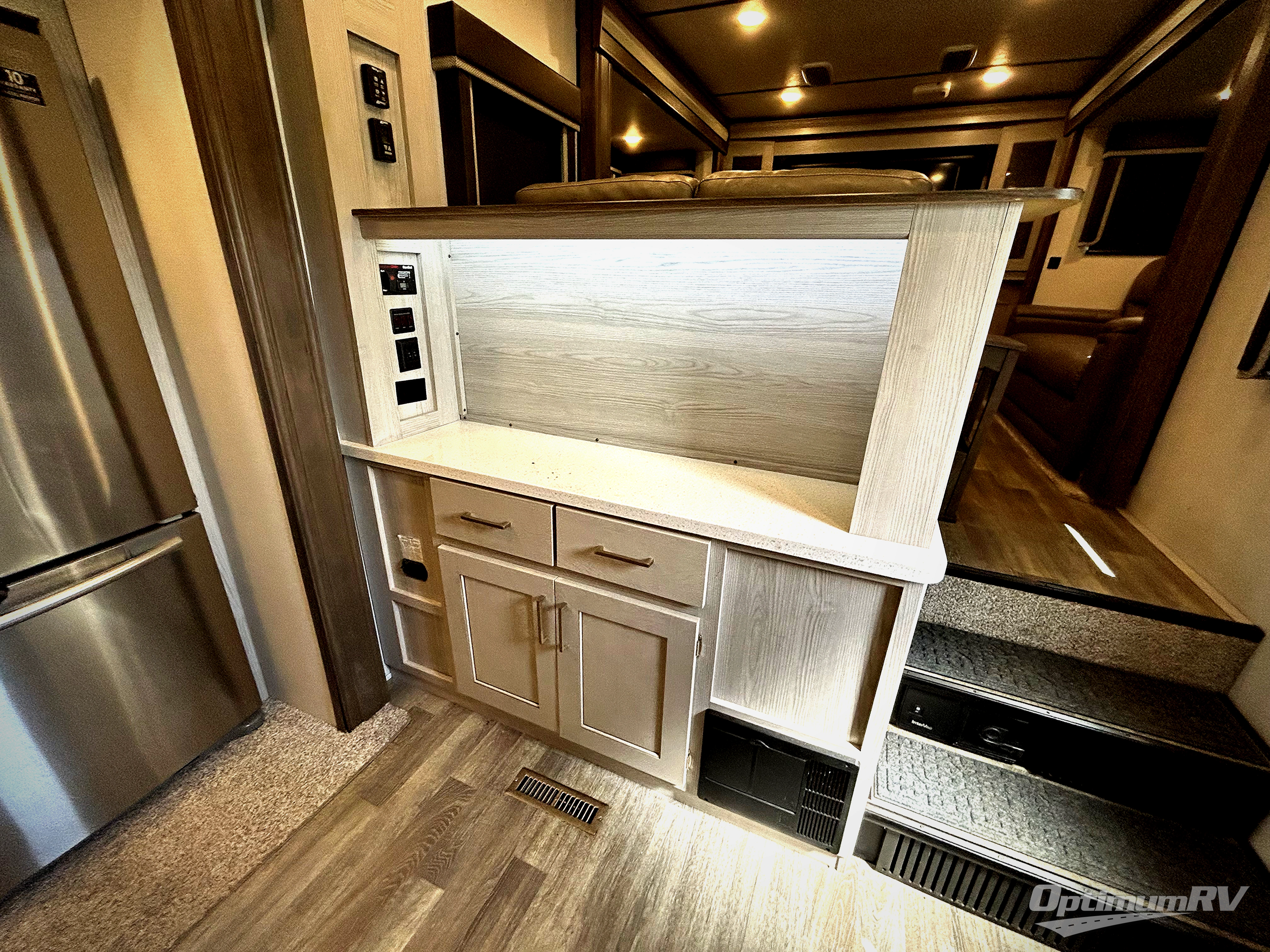When heading out and setting up in a Keystone Montana High Country fifth wheel you will appreciate the Dexter E-Z Lube axles, Max Turn front cap and radius frame with Hitch Vision, and an enormous drop frame pass-through storage compartment to name a few features. Inside you will find luxury and comfort with the 78" tall main slide outs and flush mounted LED interior lights. The bath features a skylight over the shower, seamless countertops, and a vanity with three drawers for extra storage space!. The chef of the family is going to love the Montana High Country's kitchen with its Furrion 21" two in one stainless steel cooktop and oven, a 30" over-the-range microwave, solid surface countertops, and a high-rise faucet with an integrated pull-out sprayer, plus so much more!