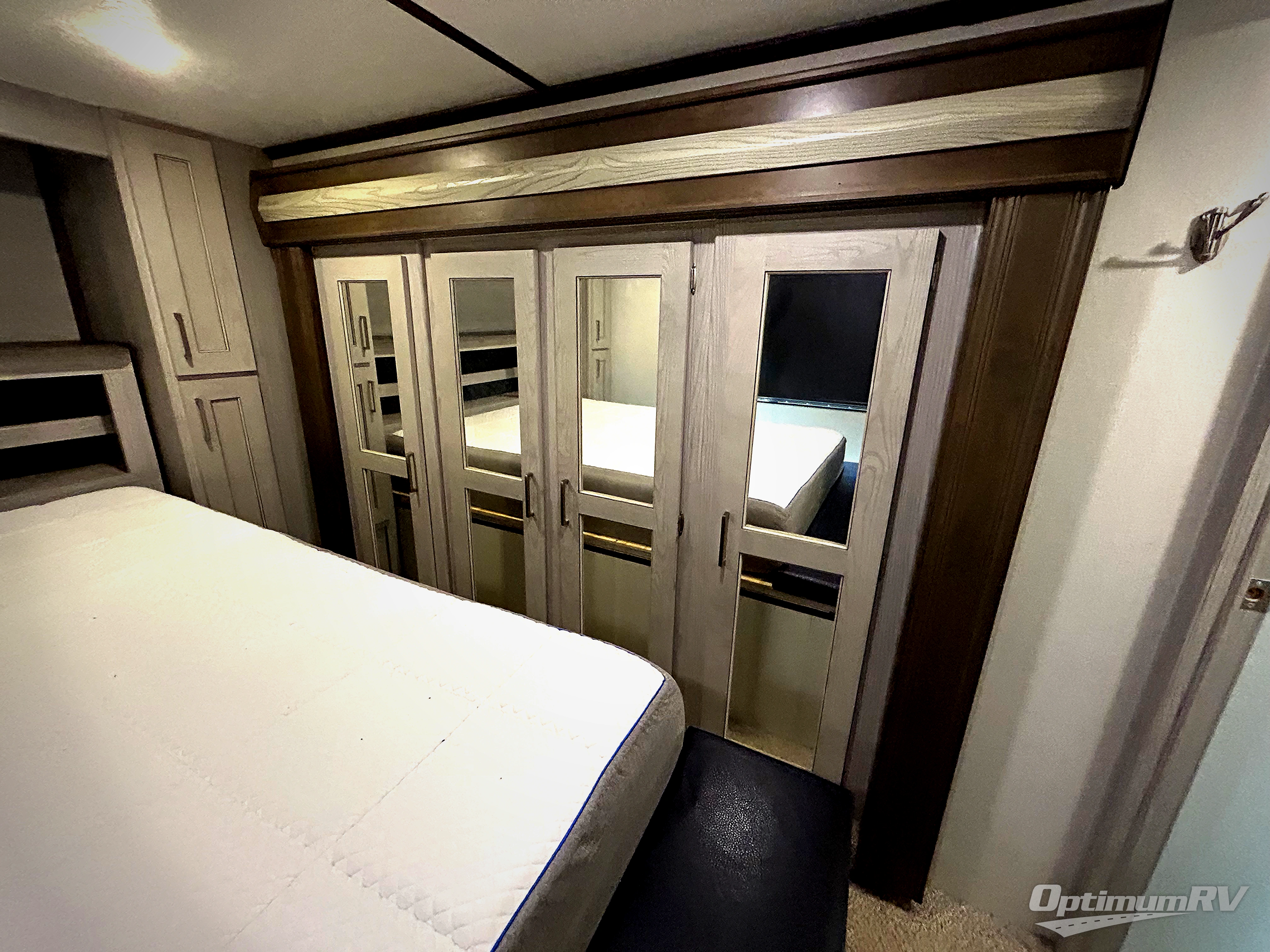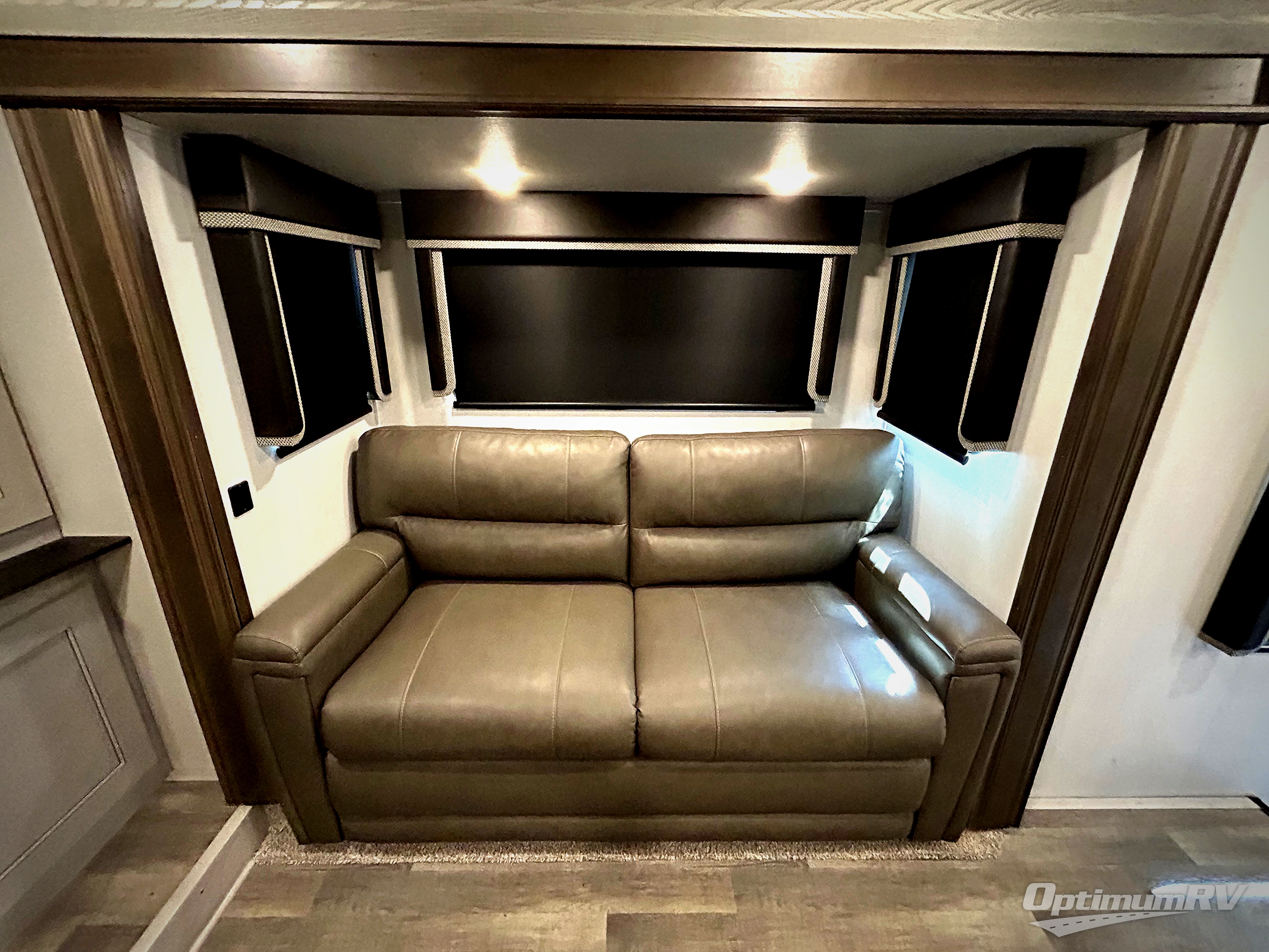 Have you been envisioning your golf cart going with you to your favorite destination? Have you been searching for the perfect fifth wheel? This Montana High Country toy hauler fifth wheel might just be the perfect answer! Model 380TH allows you to camp comfortably, and has space to take along your favorite ride on toy! Below the rear bedroom you will find a unique garage with a motion sensor LED light and a ramp door for easy loading and unloading. The front living area includes a telescoping HD LED TV above an LED fireplace, plenty of seating choices, and a front patent-pending windshield design providing amazing views. The cook will enjoy making meals in the kitchen which also includes a hutch and a 18 cu. ft. residential refrigerator. The bedroom features a queen bed, an HD LED TV, and a large slide out wardrobe. Choose this fun RV today!