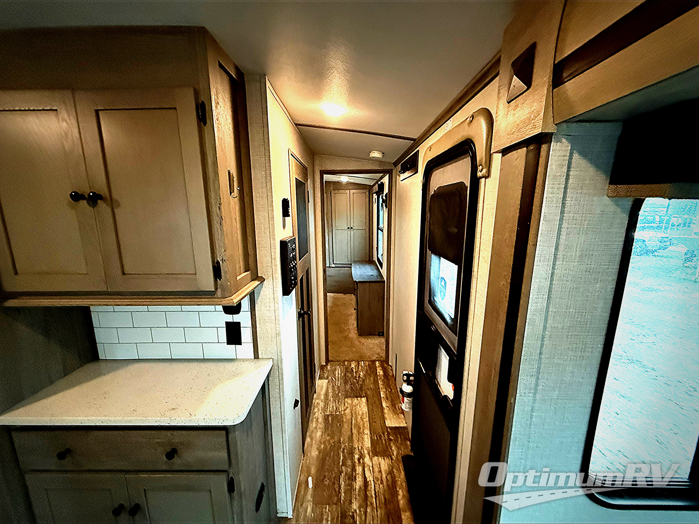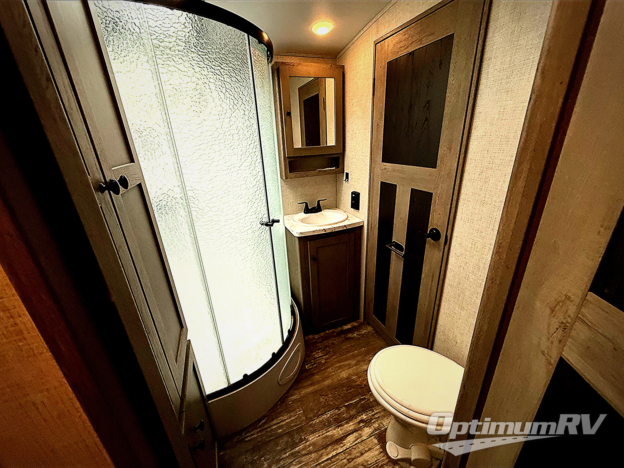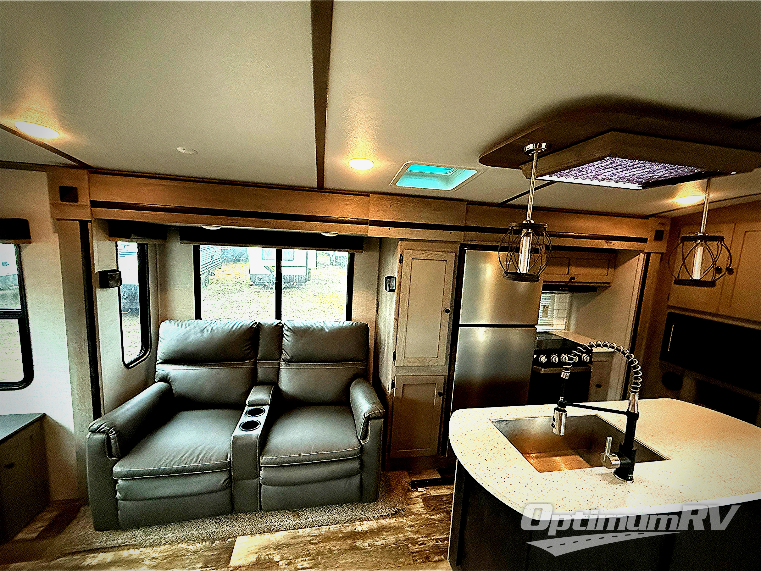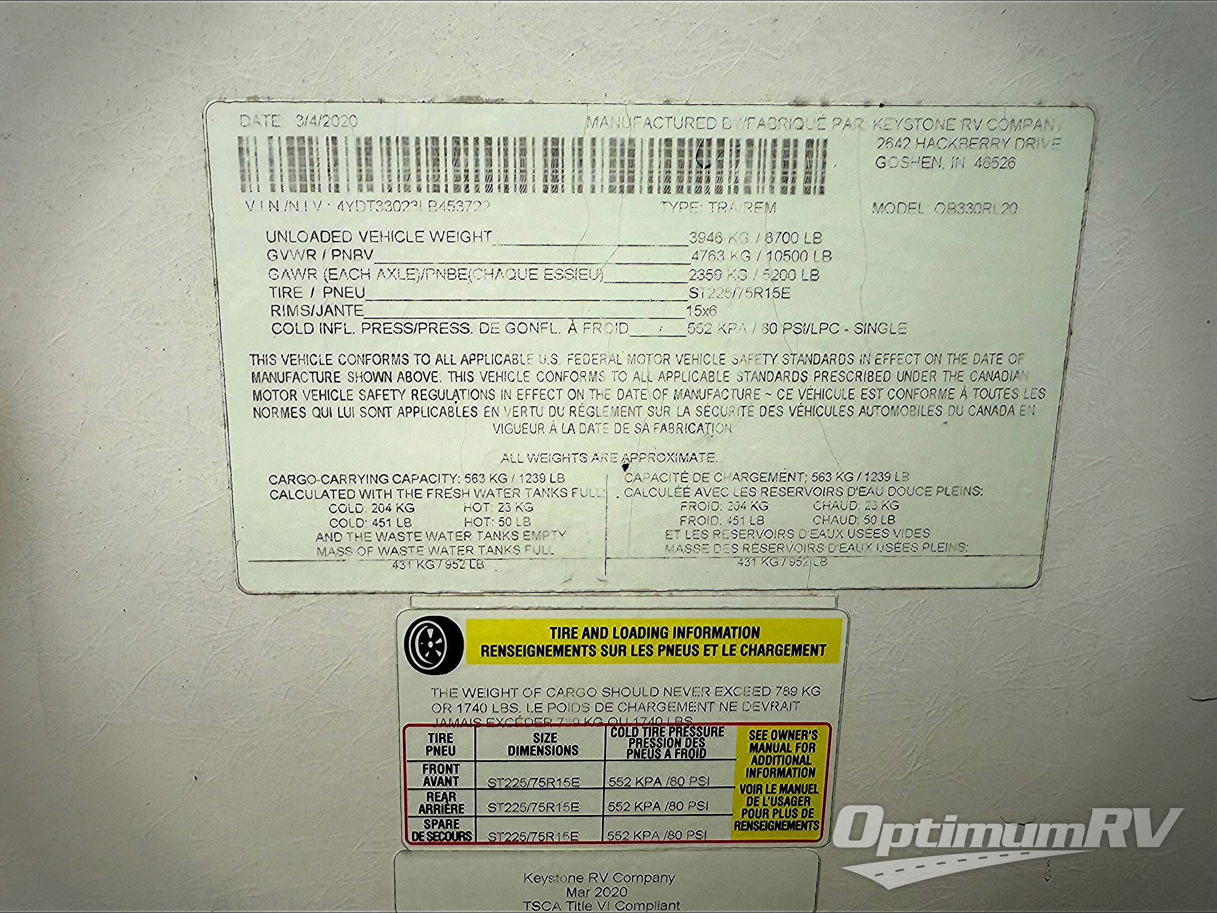 Take your camping expeditions to the next level with this Outback travel trailer! Your family's master chef will appreciate all of the appliances that have been included in both the indoor and outdoor kitchen, like the pantry, the three-burner range top, the kitchen island, and the 8 cubic foot double-door refrigerator. The large skylight located above the island will brighten up the interior with the sun's rays during the day and will allow the glow from the moon to illuminate the space at night. For a comfortable place to spend your evenings, you will love heading to the king-size bed in the private master suite where you can sleep peacefully and restore your energy for tomorrow's adventures.